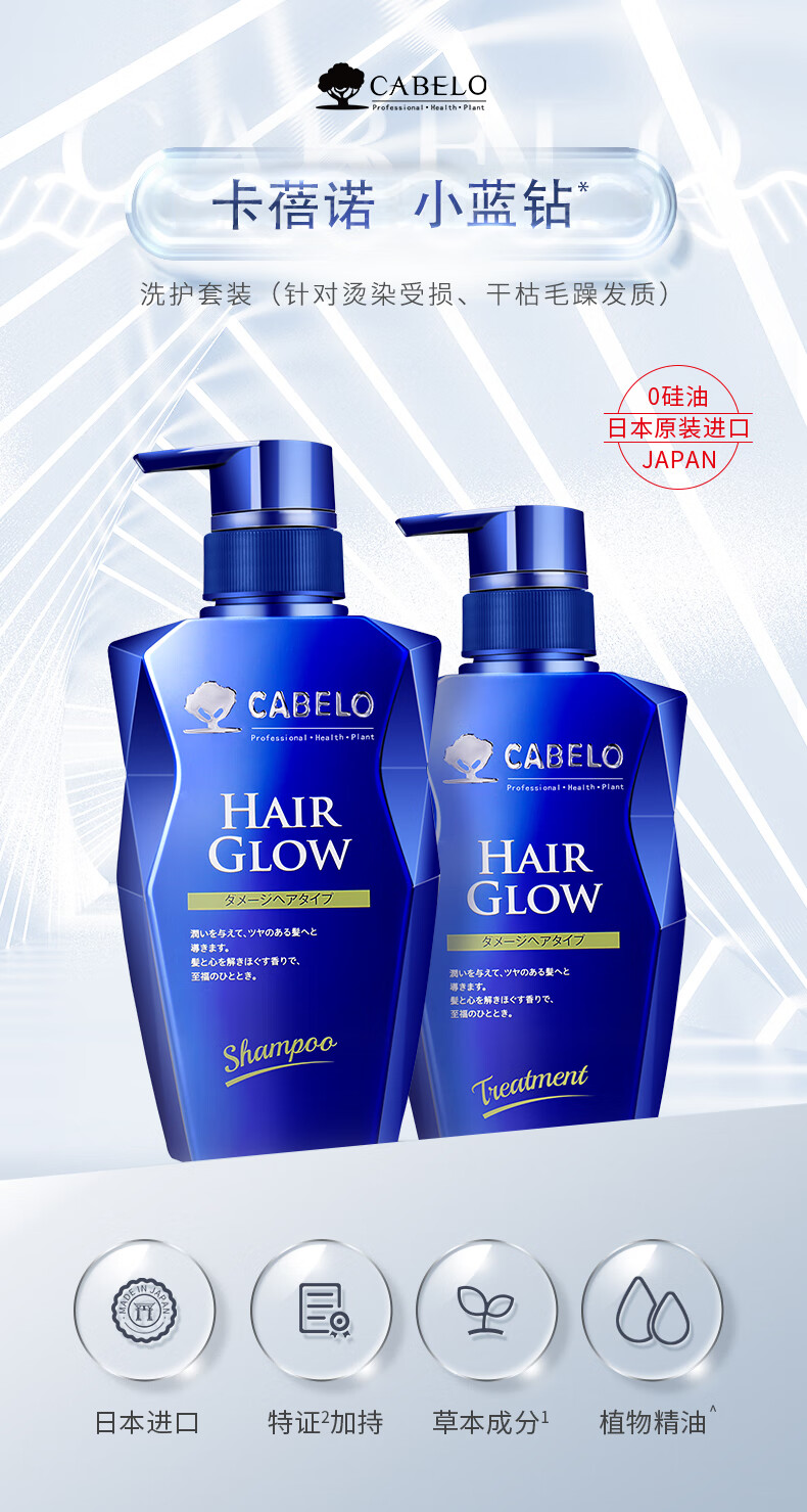 卡蓓诺(CABELO)防脱洗发水损伤性脱发修护受损烫染干枯发质适用【日本原装进口】 损伤型防脱小蓝钻洗发水 350ml*1