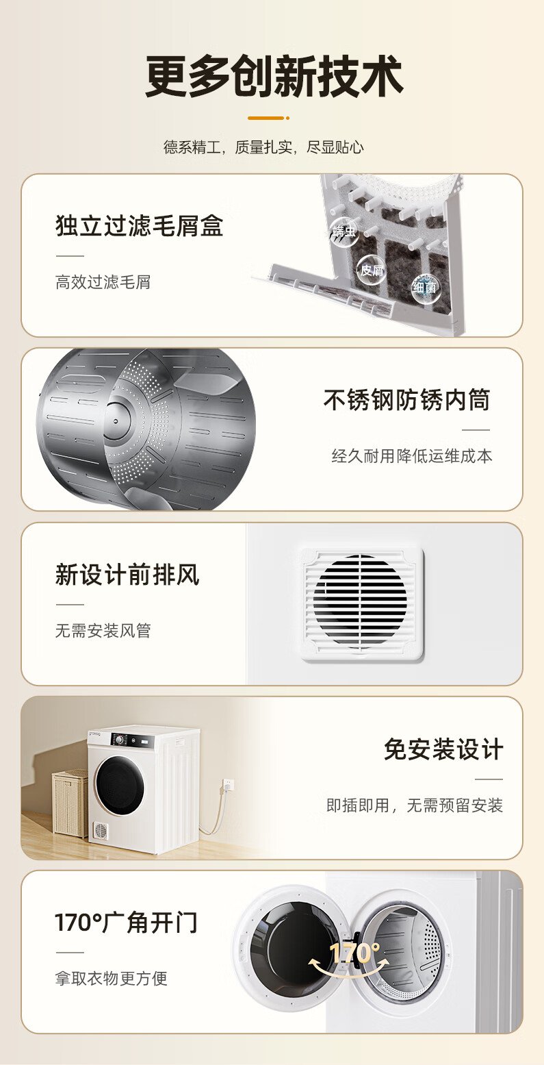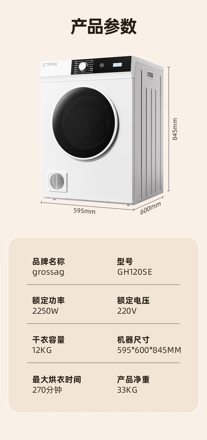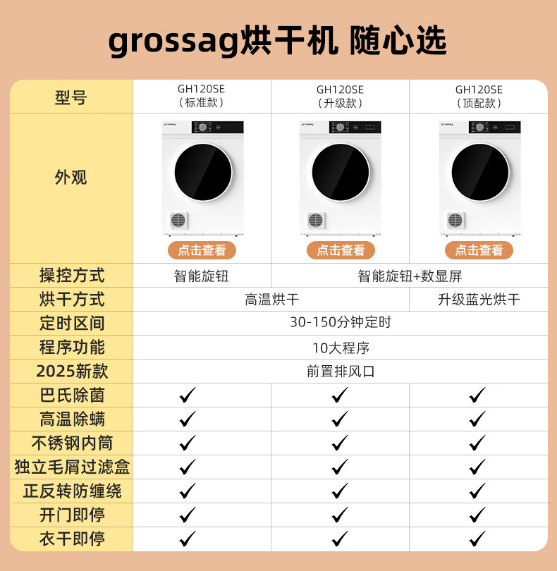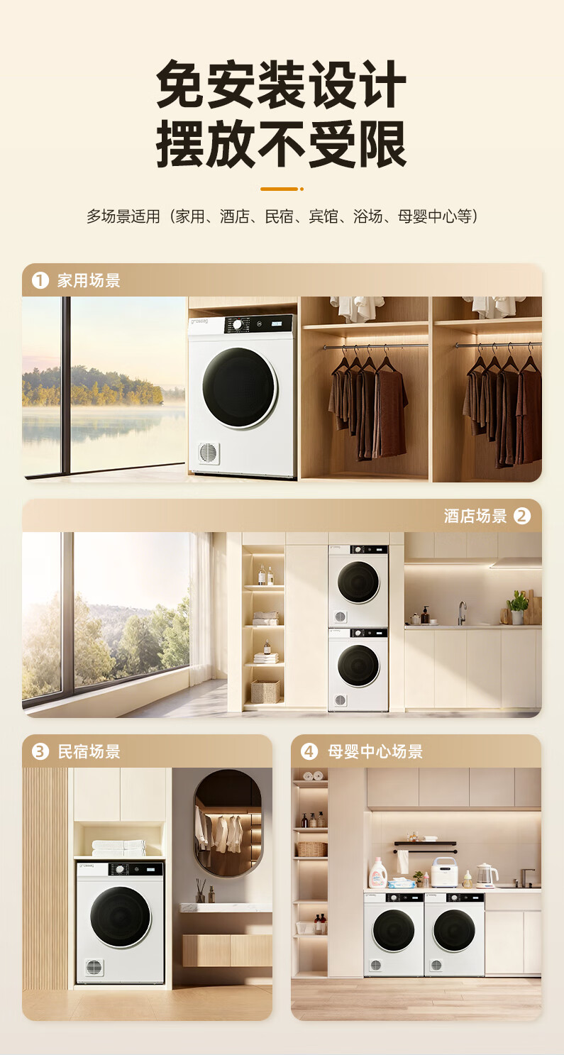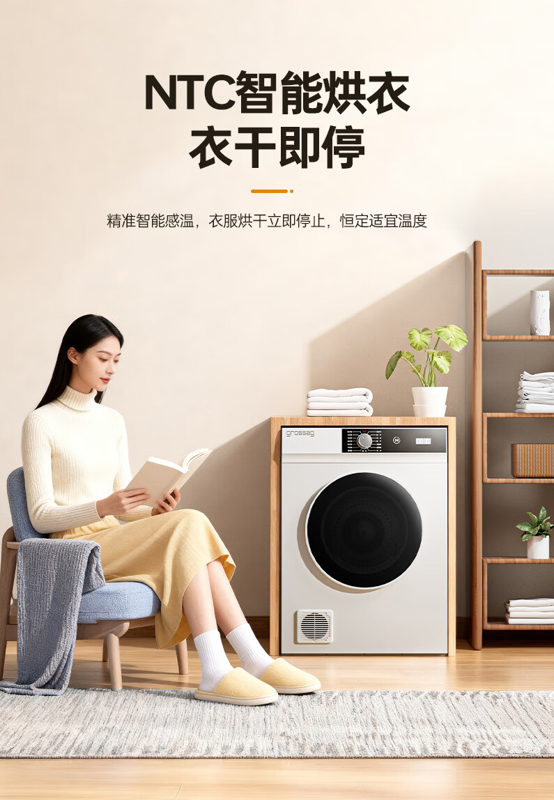 grossag德国12公斤烘干机家用大容量直排式烘衣机智能衣服滚筒过滤毛屑商用酒店民宿宾馆洗浴独立干衣机 12KG标准款【30分钟快烘+前排风+独立过滤盒】
