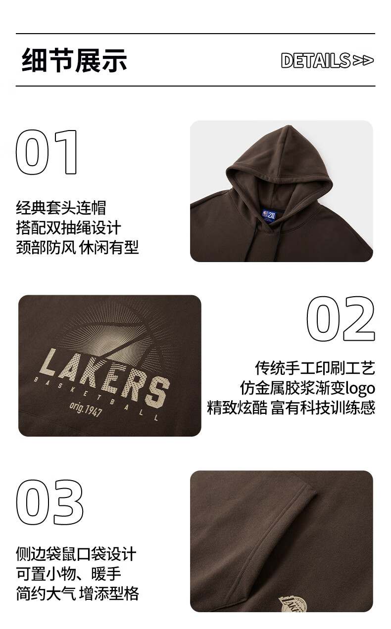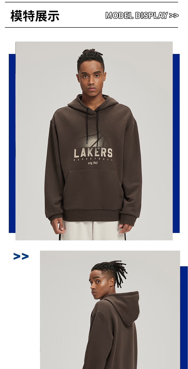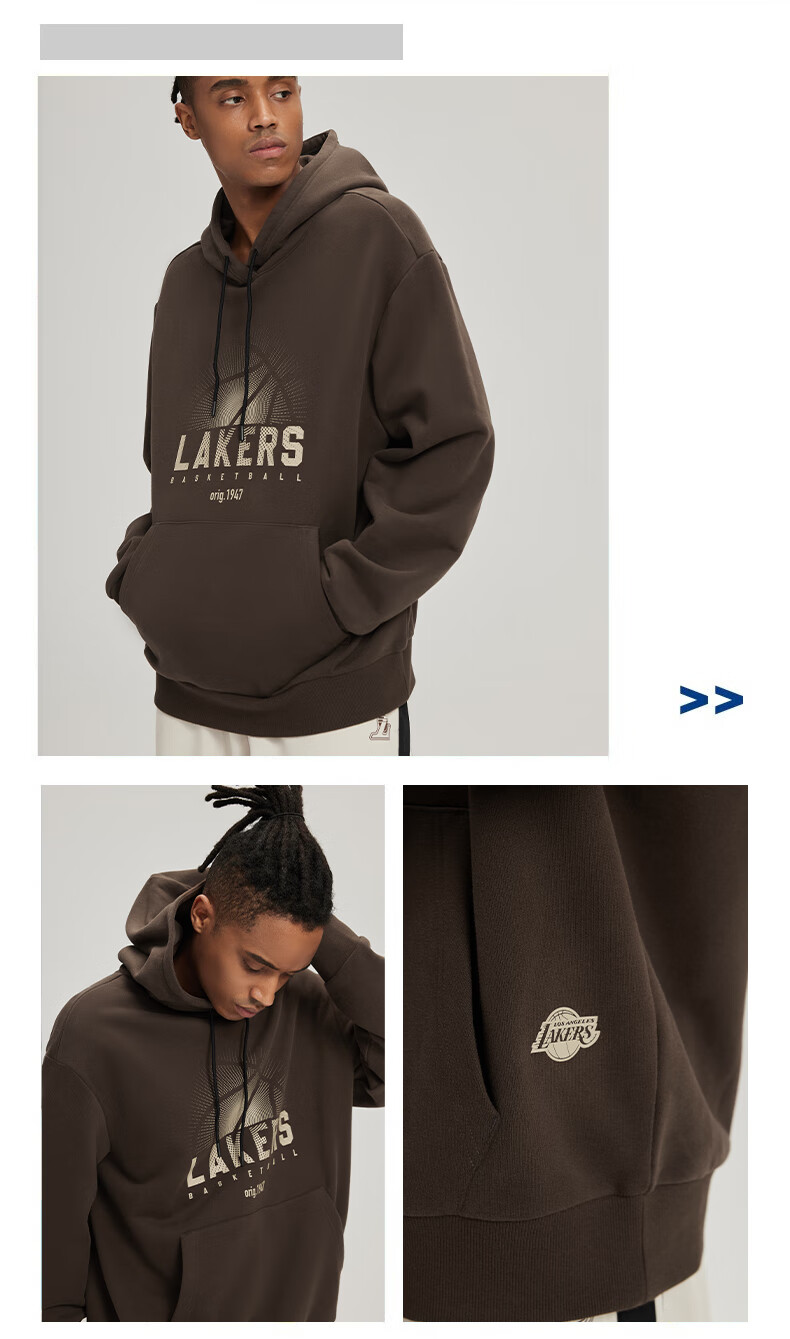 NBA官方正品湖人/勇士队运动连帽卫衣 3XL 洛杉矶湖人/棕色