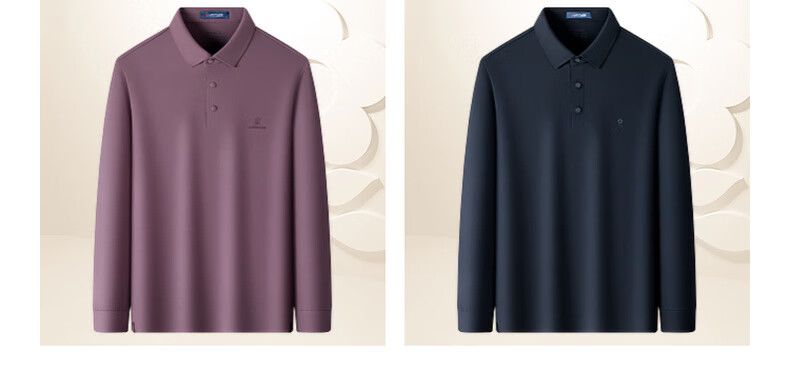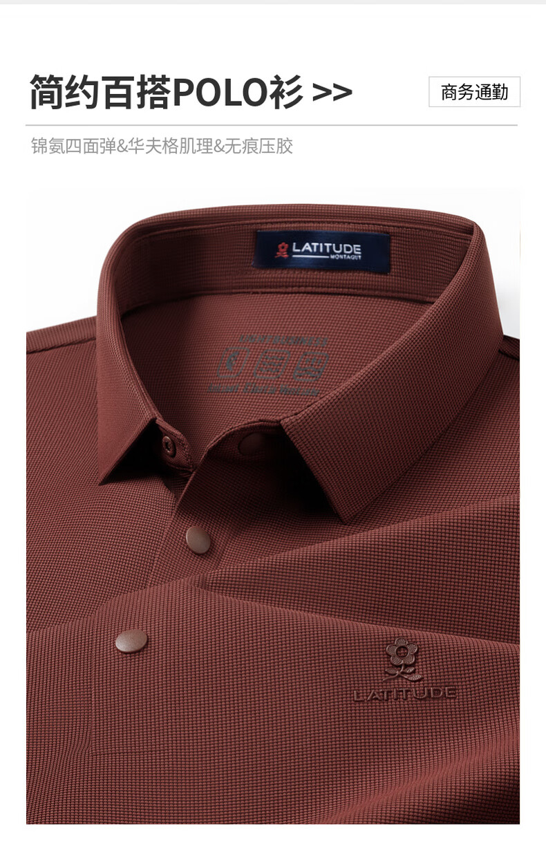 梦特娇(MONTAGUT)男士Polo衫秋锦氨华夫格弹力亲肤抗皱易打理长袖衬衣 藏青 XL