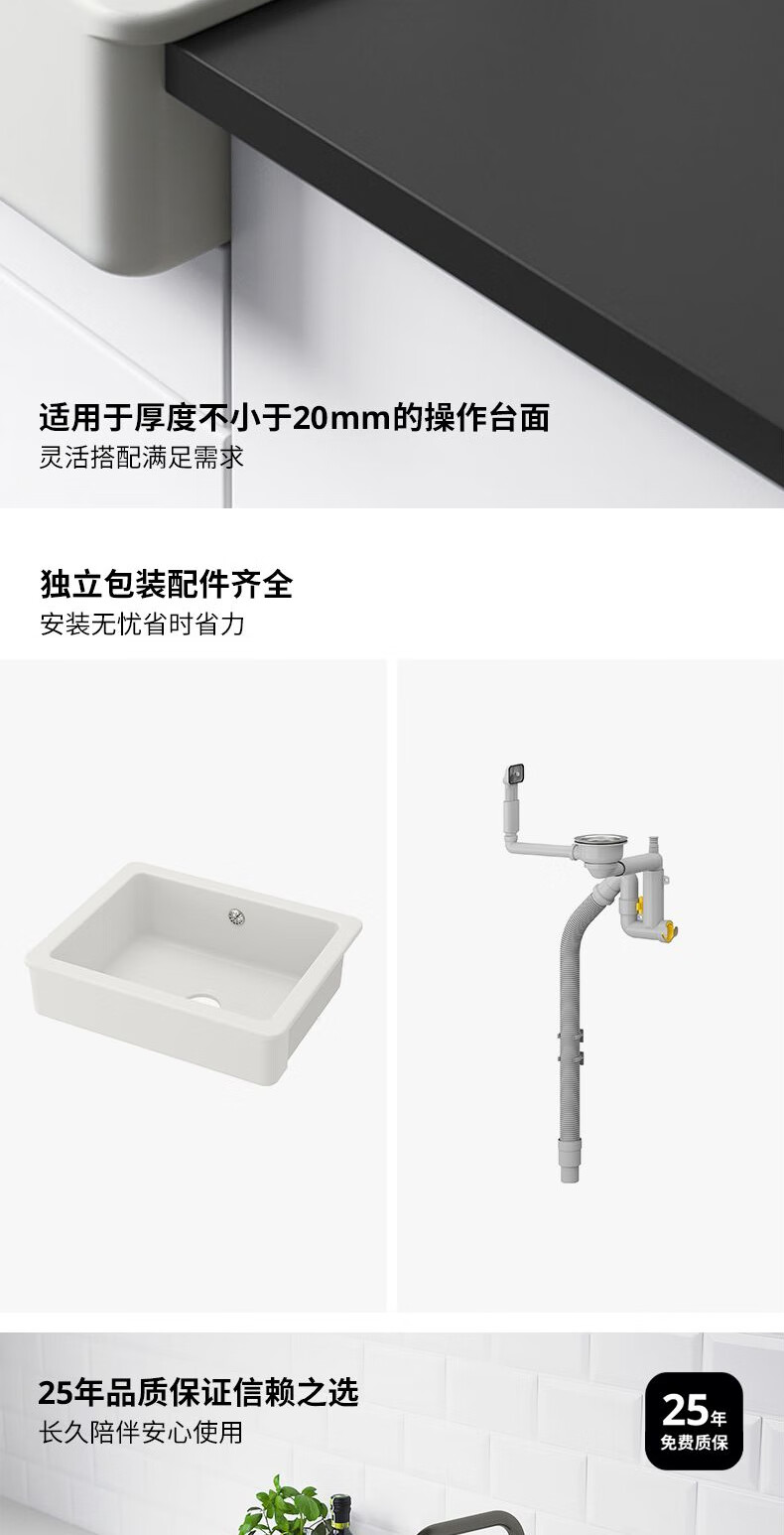 宜家(IKEA)HAVSEN霍夫森水槽带前板家用洗手池洗漱台面盆 嵌入式水槽白色53x47cm