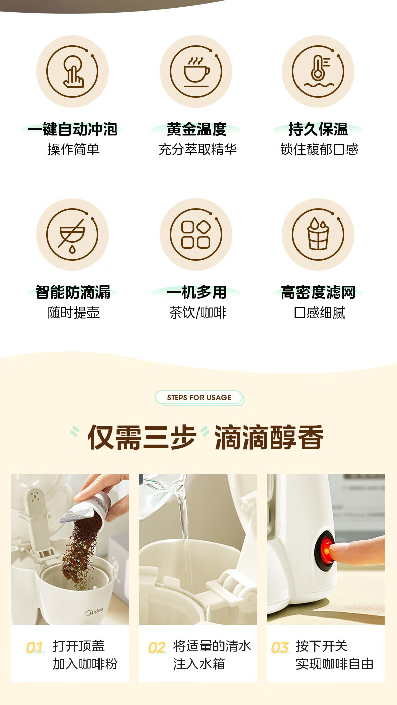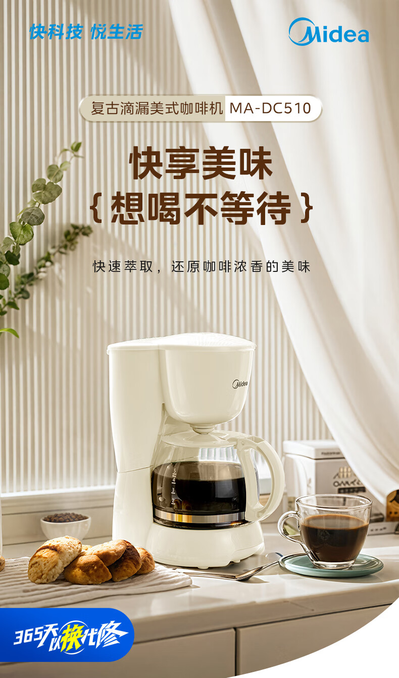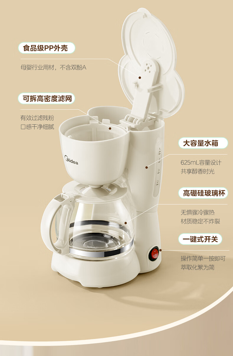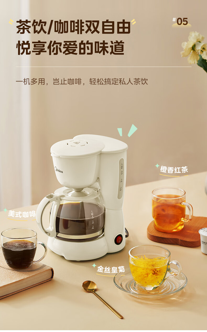 美的(Midea)【送礼优选】滴漏美式咖啡机电热水壶煮咖啡壶滴滤家用半自动养生壶泡茶壶煮茶壶送礼泡茶咖啡