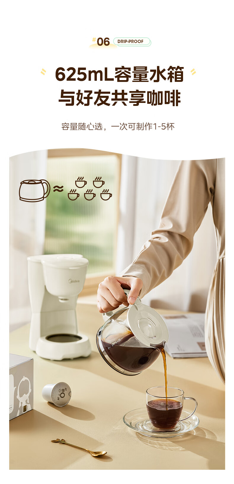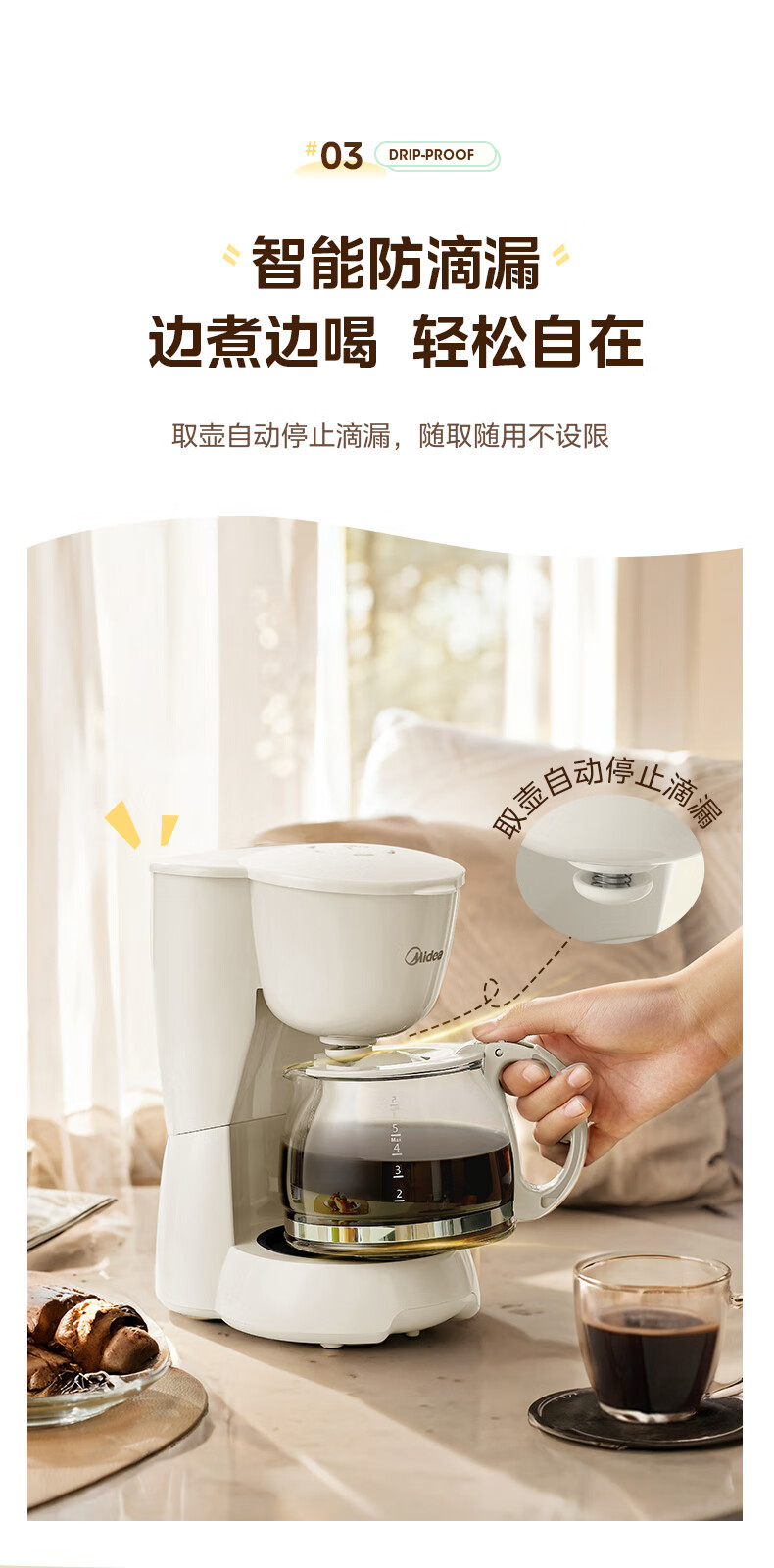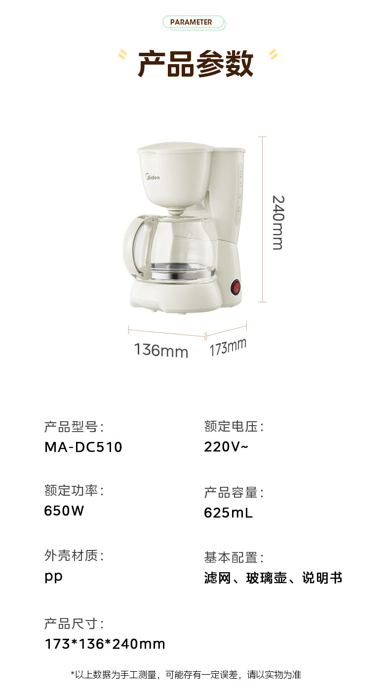 美的(Midea)【送礼优选】滴漏美式咖啡机电热水壶煮咖啡壶滴滤家用半自动养生壶泡茶壶煮茶壶送礼泡茶咖啡