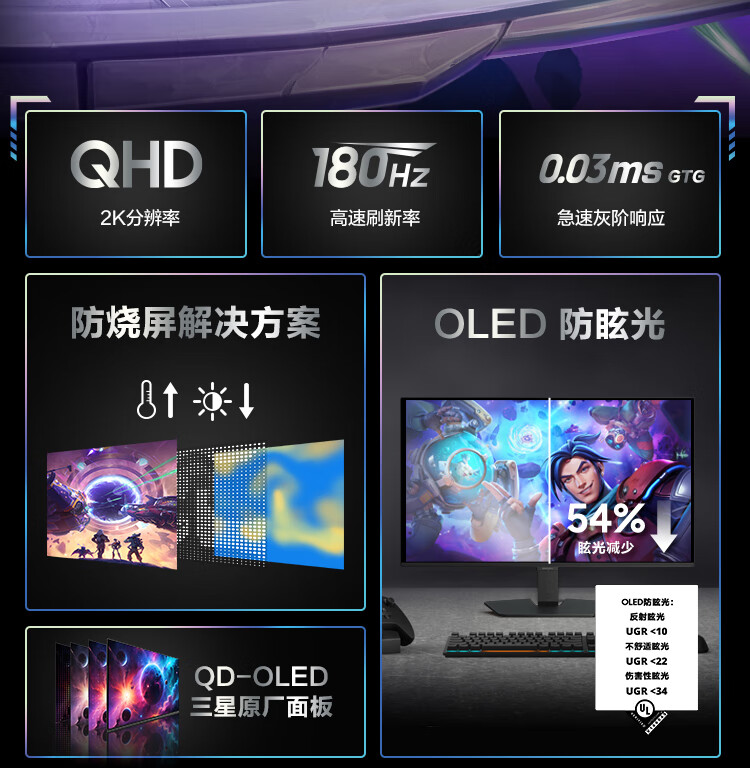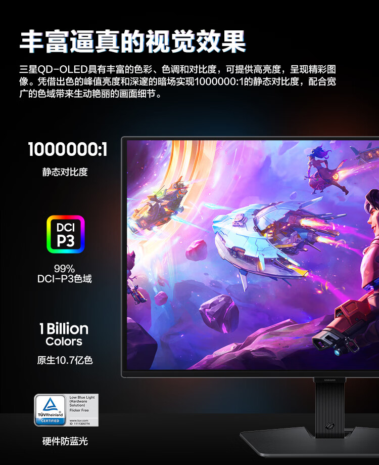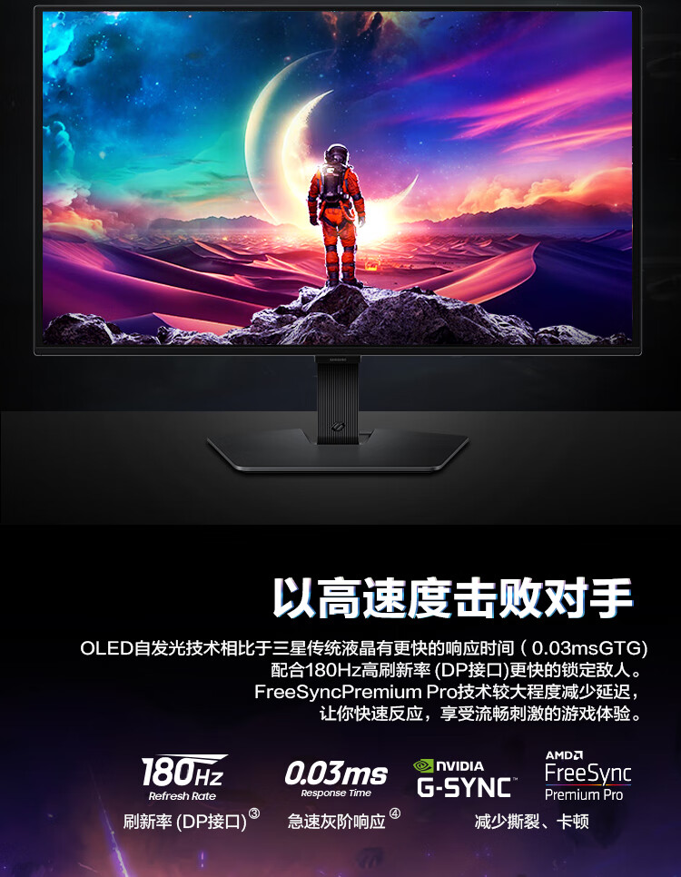 三星(SAMSUNG)27英寸 G50SF OLED 180Hz 2K 0.03ms 防眩光 G-Sync 技术 玄龙骑士 电竞 显示器 LS27FG502SCXXF