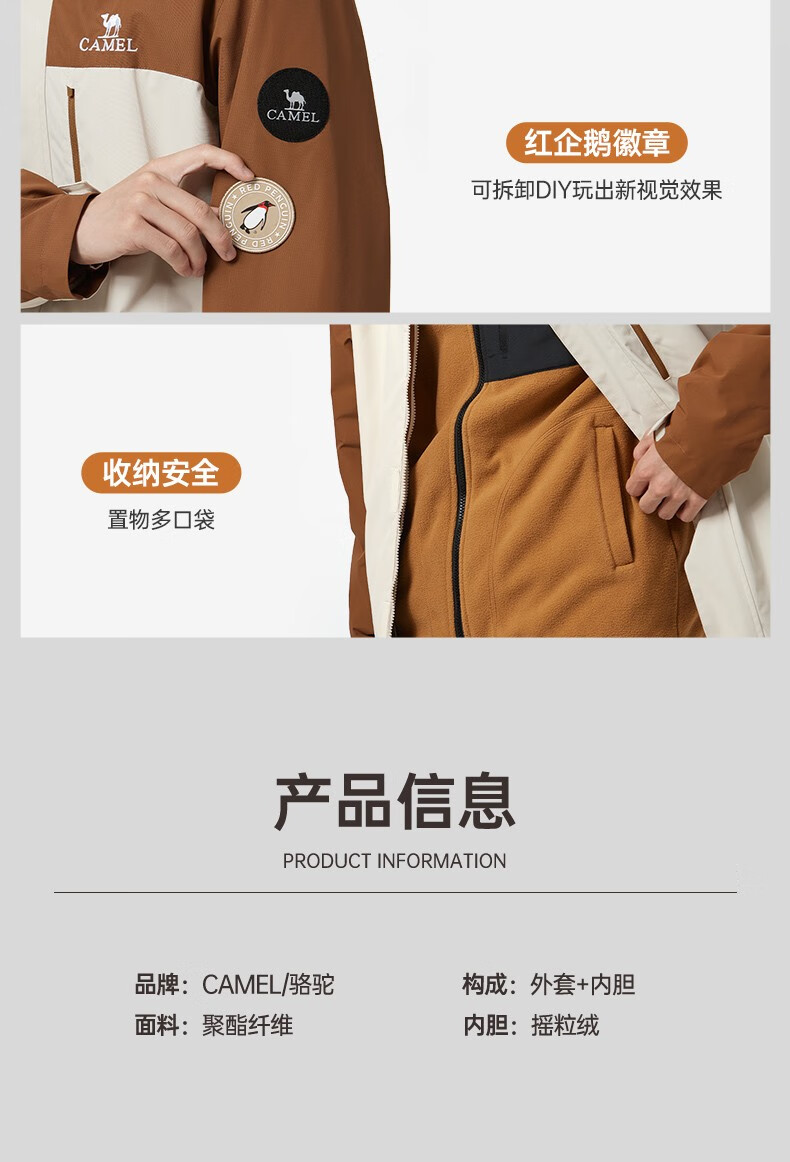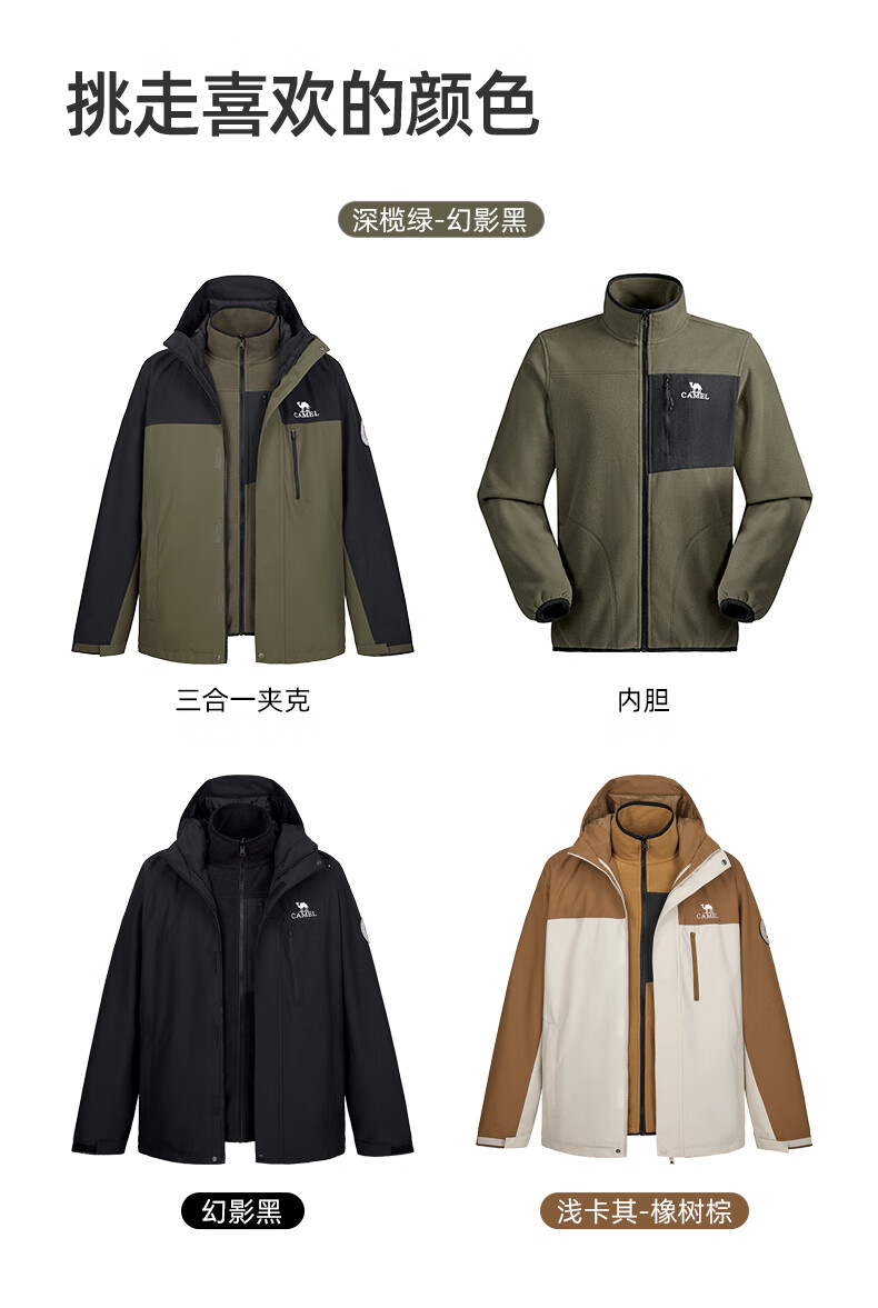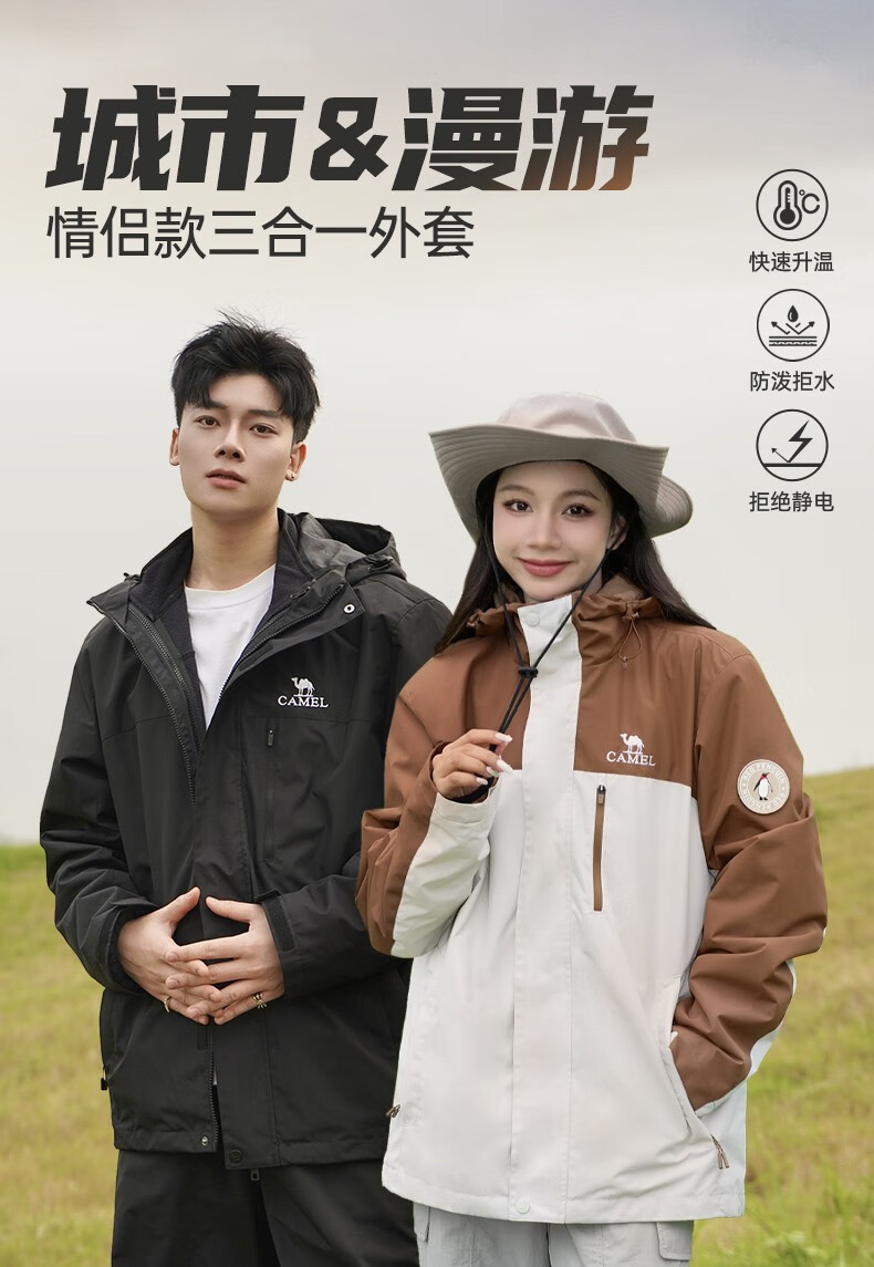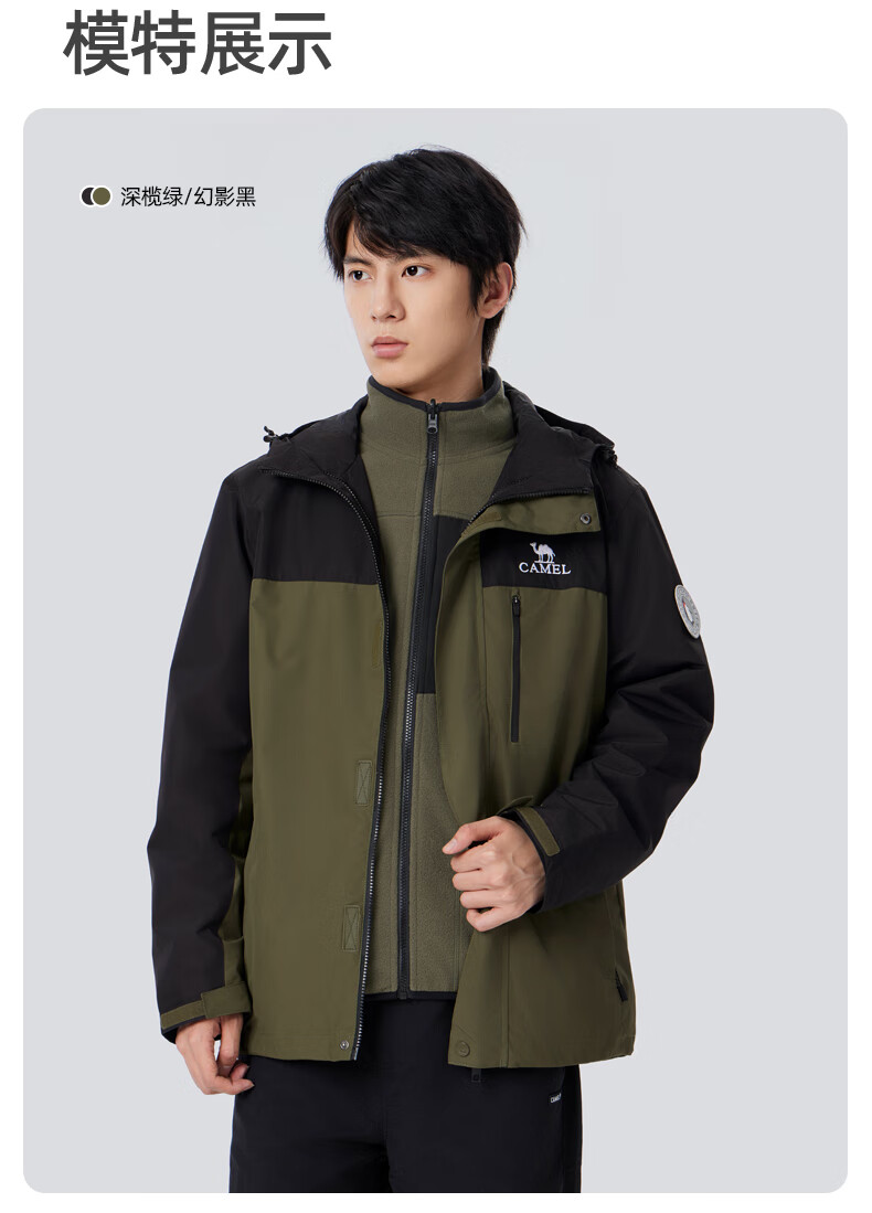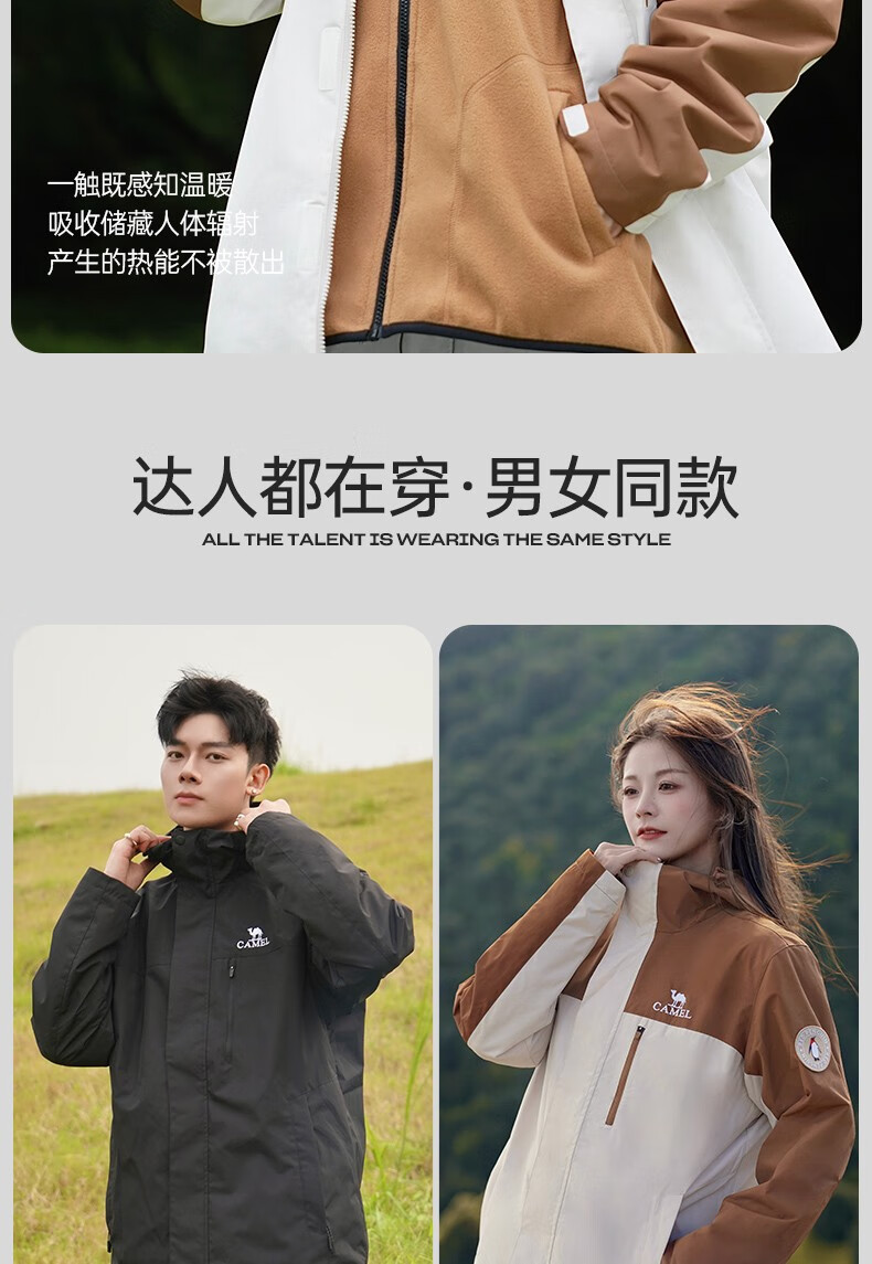 骆驼夹克男女款三合一外套加厚户外防风登山服秋冬季M13CA49123