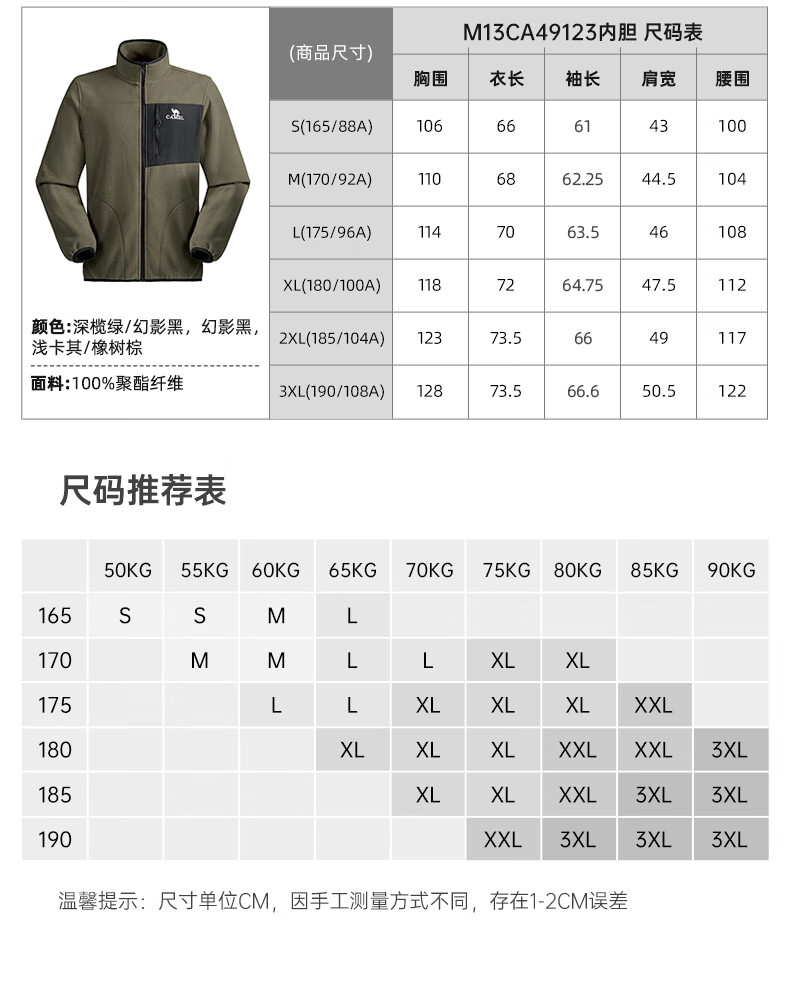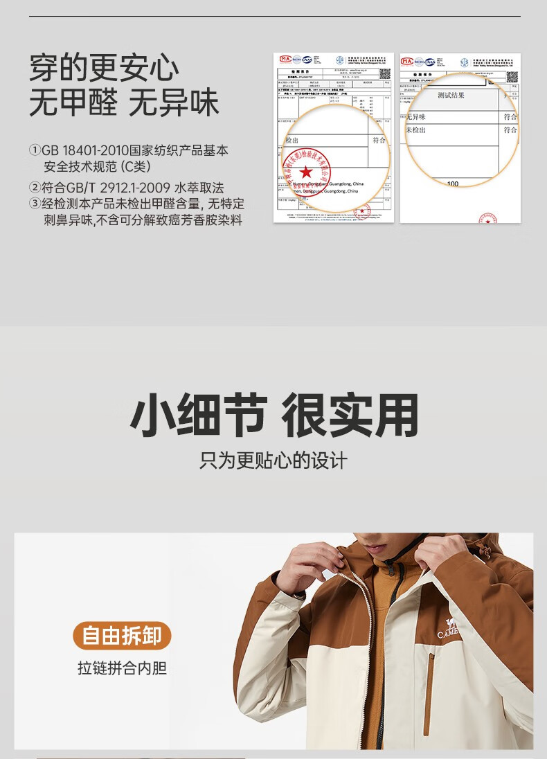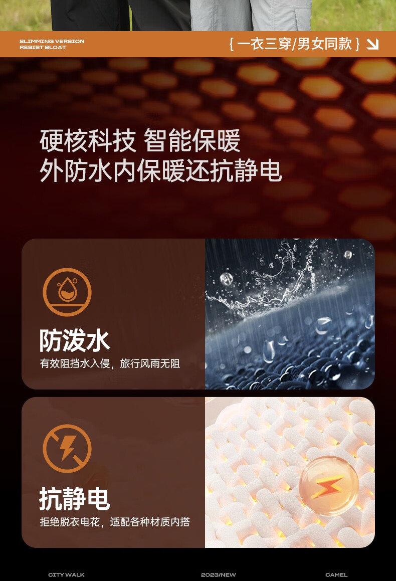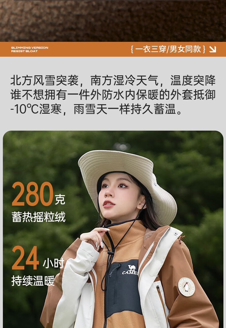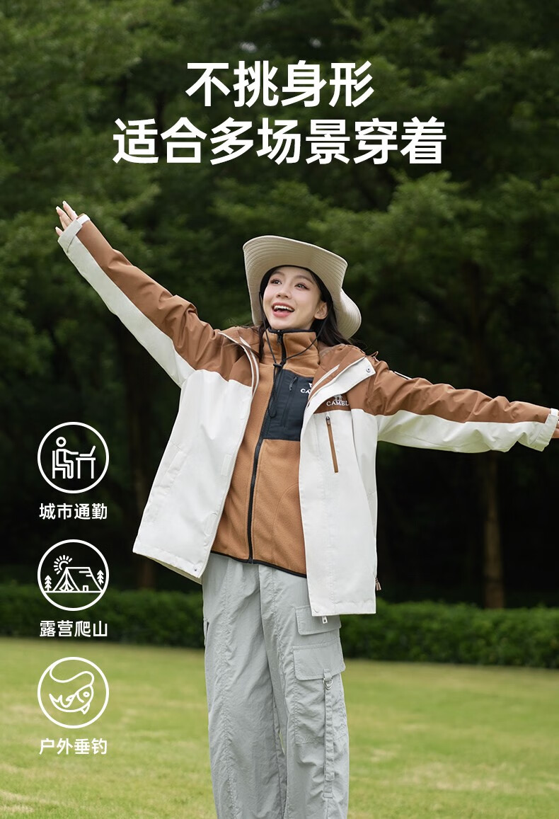 骆驼夹克男女款三合一外套加厚户外防风登山服秋冬季M13CA49123