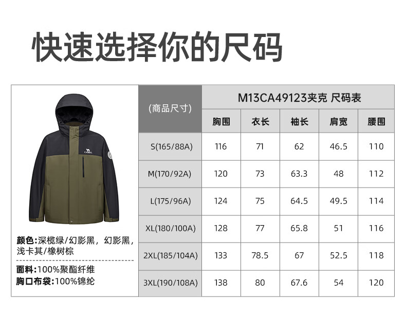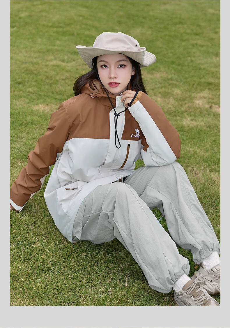 骆驼(CAMEL)冲锋衣硬壳单层男女外套中性风三防登山服女士短外套