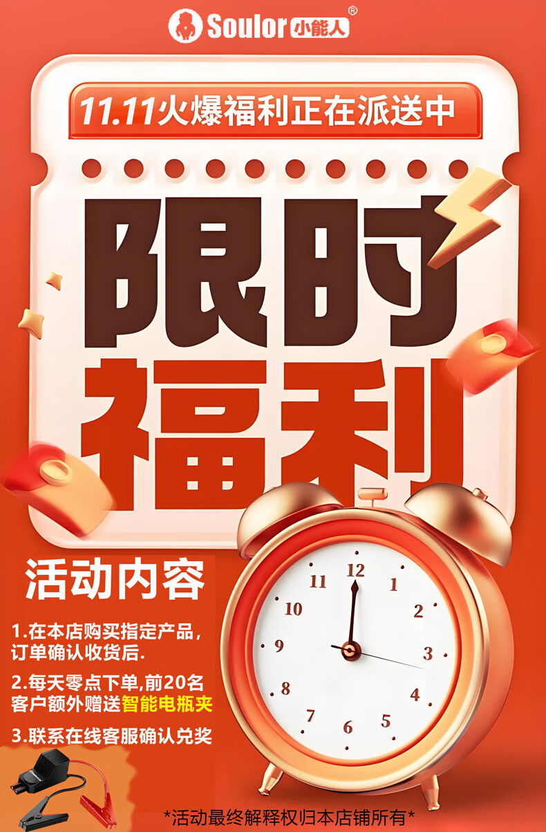 小能人(soulor)【3C认证】汽车应急启动电源充气泵一体机车载电瓶搭电宝打气搭电户外充电宝移动电源打火