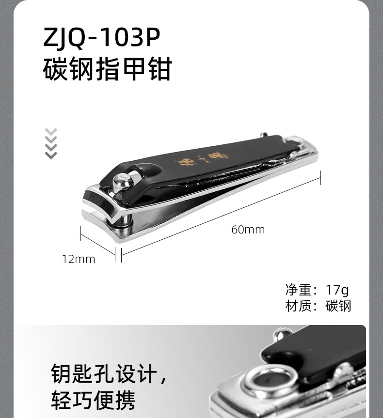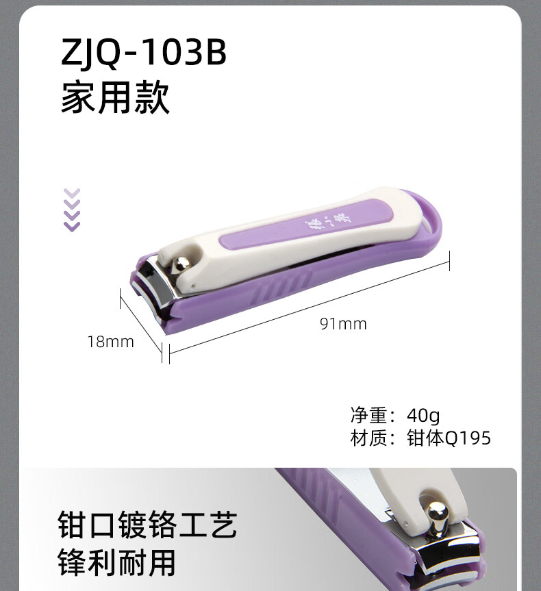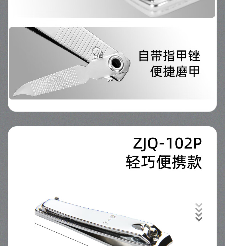 张小泉指甲刀防飞溅指甲钳指甲剪刀美甲工具带指甲锉ZJQ-103B