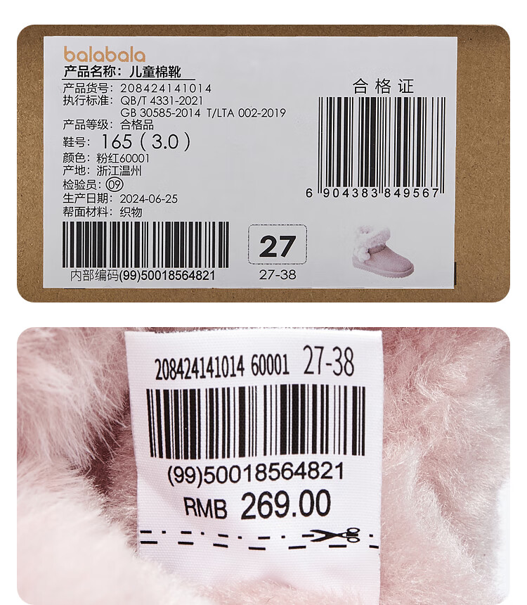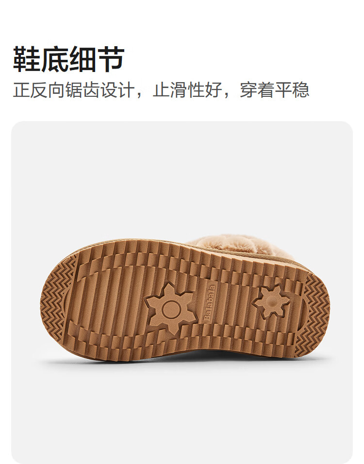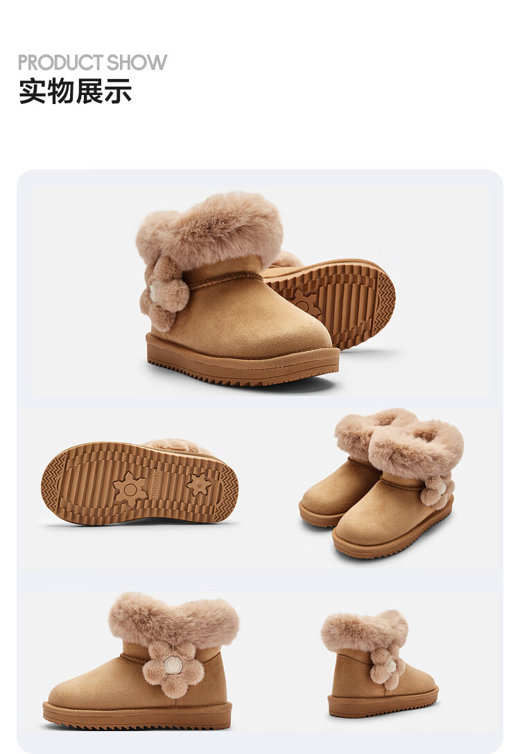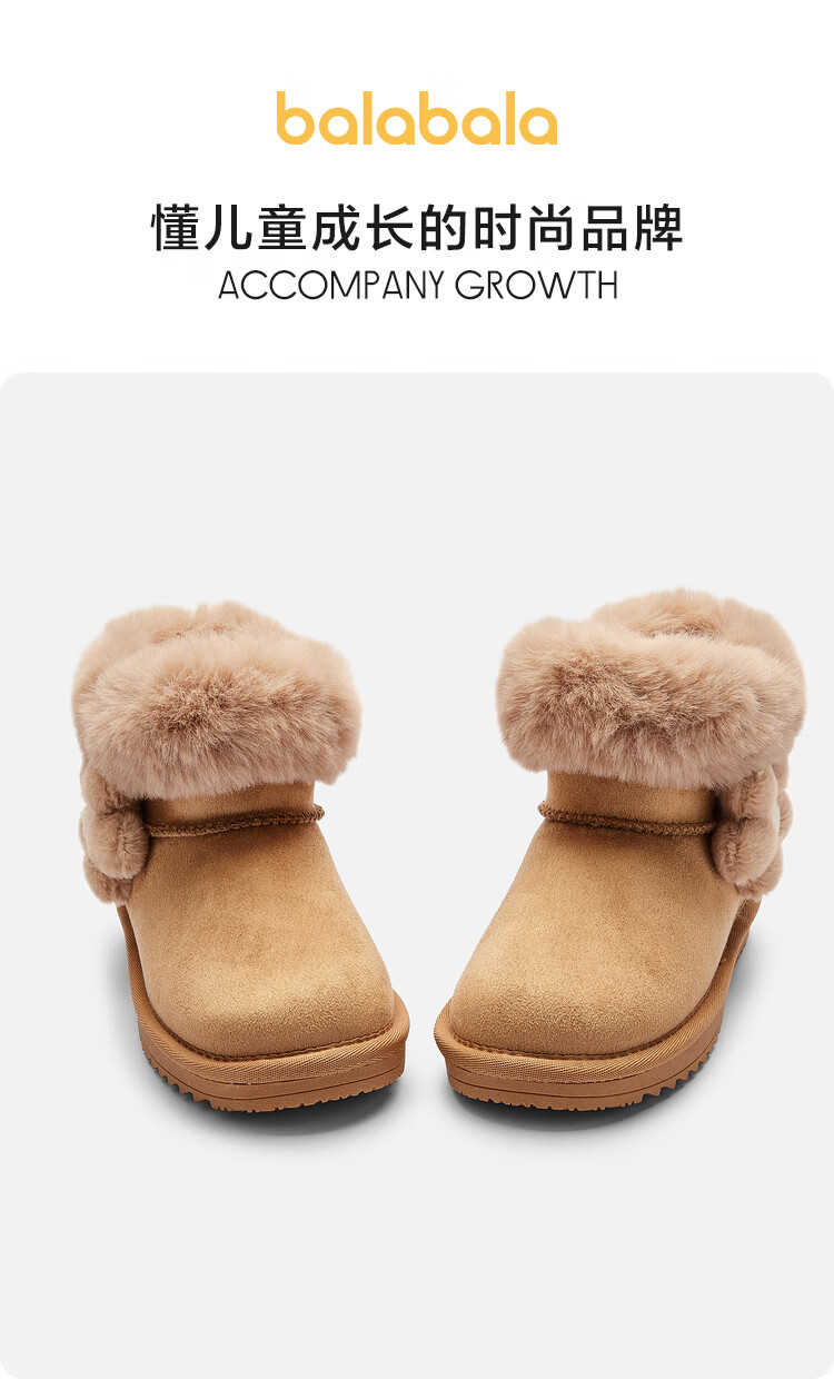 巴拉巴拉儿童雪地靴加绒保暖女童棉靴2024冬季短靴子甜美208424141014
