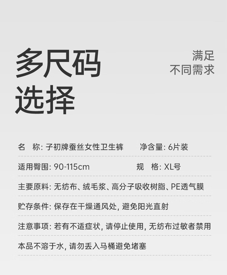 子初蚕丝安睡裤夜用裤型卫生巾产妇姨妈巾大码夜安裤女经期用18片XL码