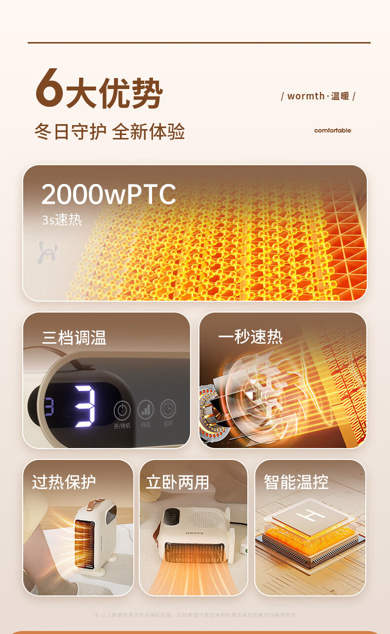 DEATKN【德国高端】暖风机电热取暖器桌面取暖器热风机吹热风全屋速 双温控[20000大热量]