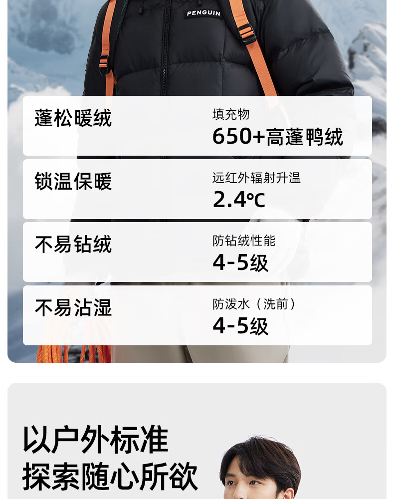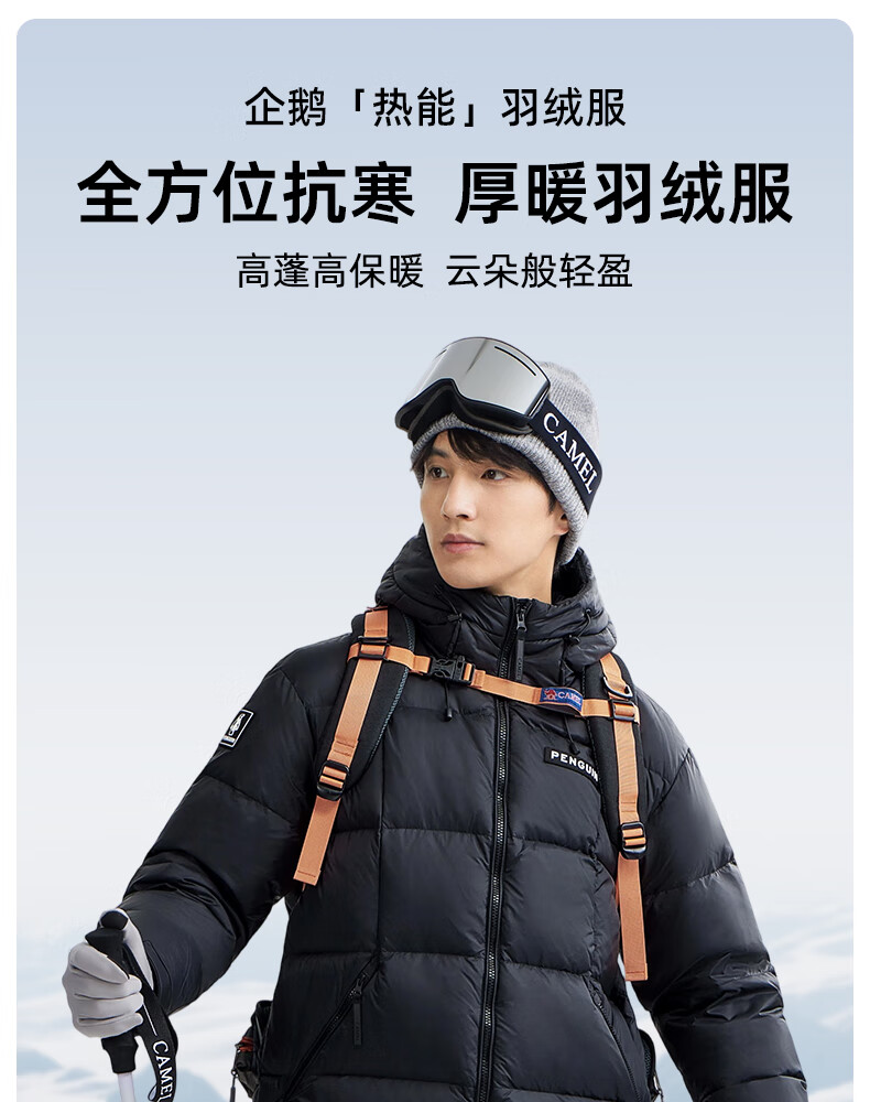 企鹅骆驼联名【热能】羽绒服男女同款户外加厚连帽面包服M34CR07725