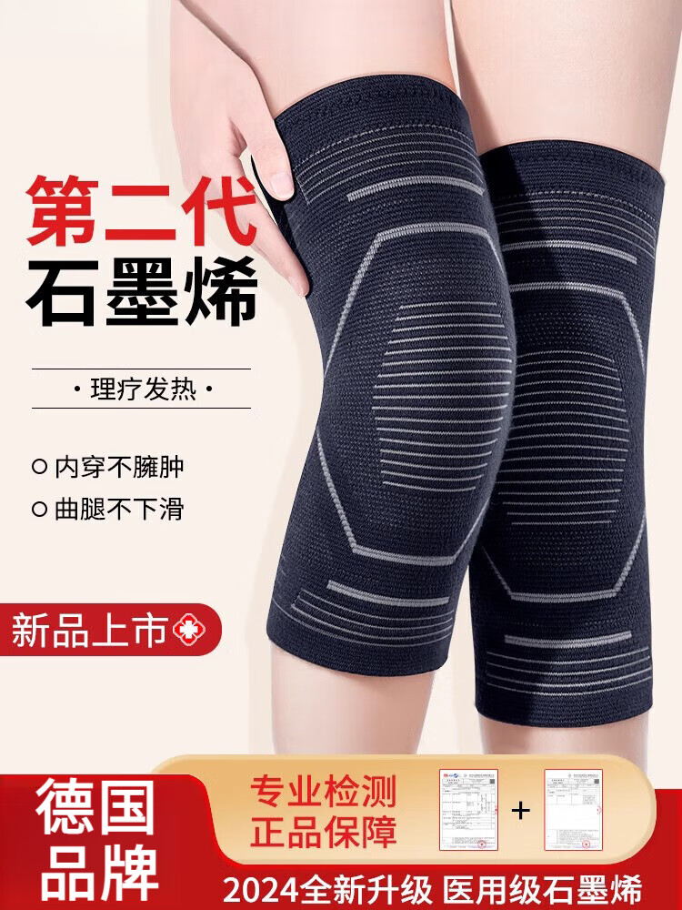 户璃德国石墨烯发热护膝盖套保暖老寒腿男女士关节中老人专用夏季薄款防寒膝盖按摩器 薄款-M【适合体重70-120斤】