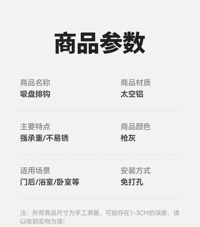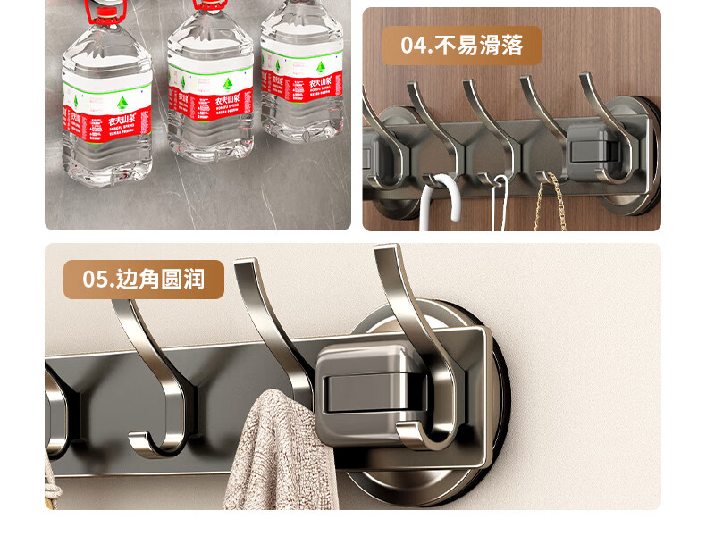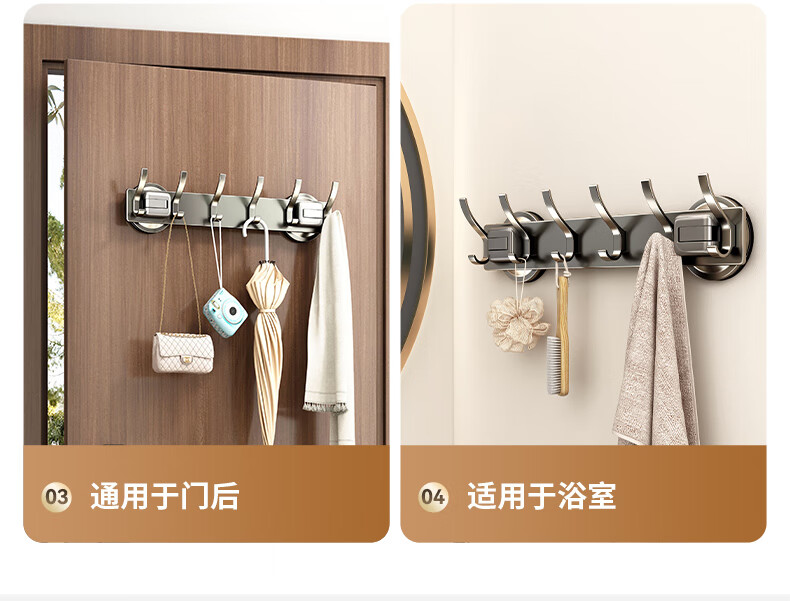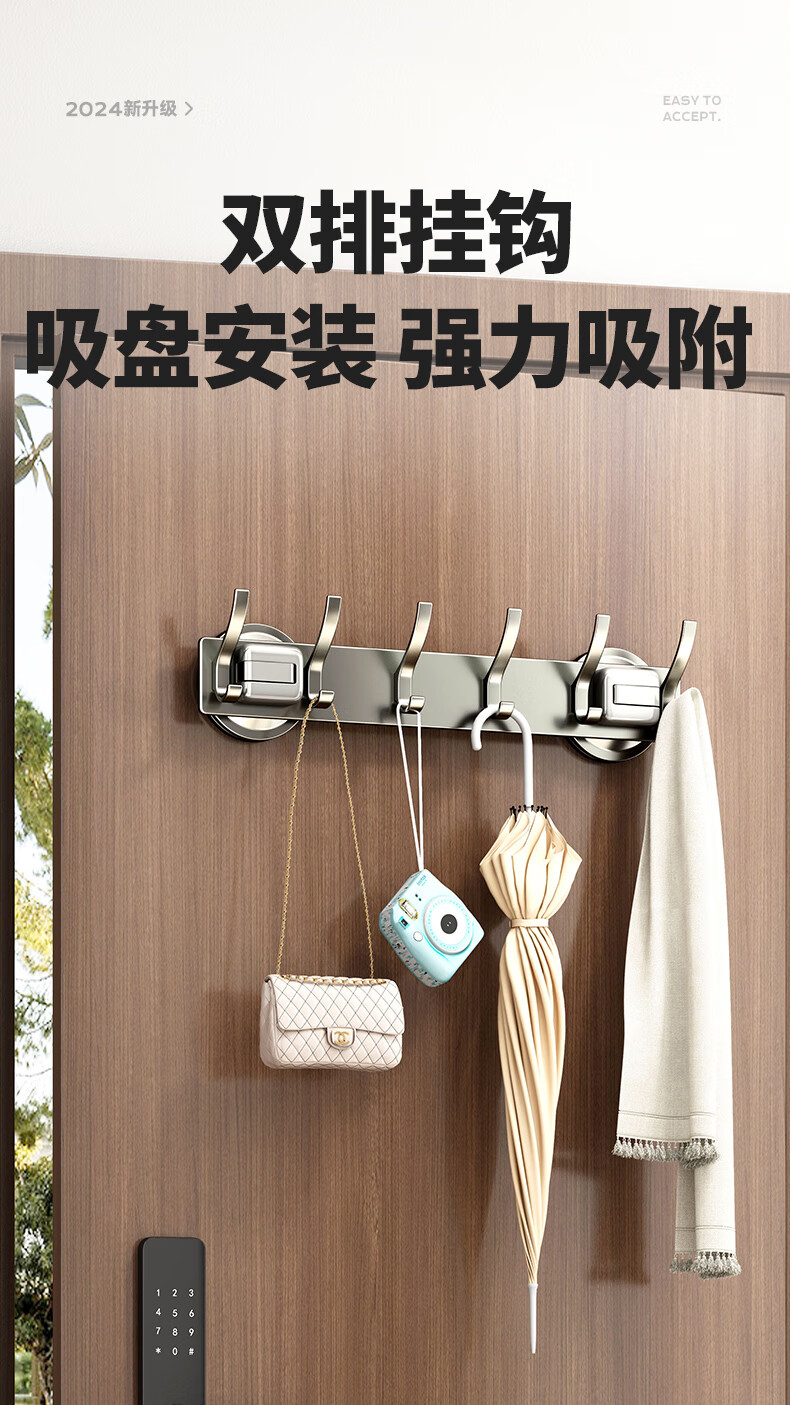 AILUKI日本吸盘挂钩免打孔强力承重壁挂排钩进门玄关挂衣架上墙无痕粘钩 【吸盘奶白】5钩凤尾排钩
