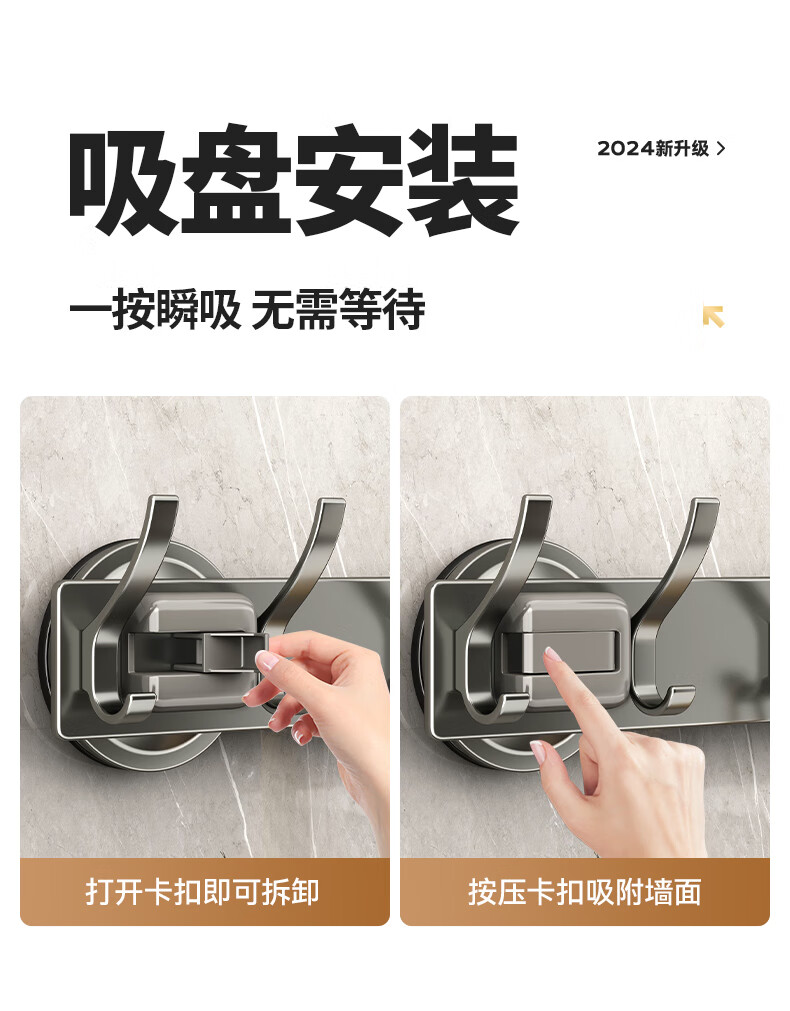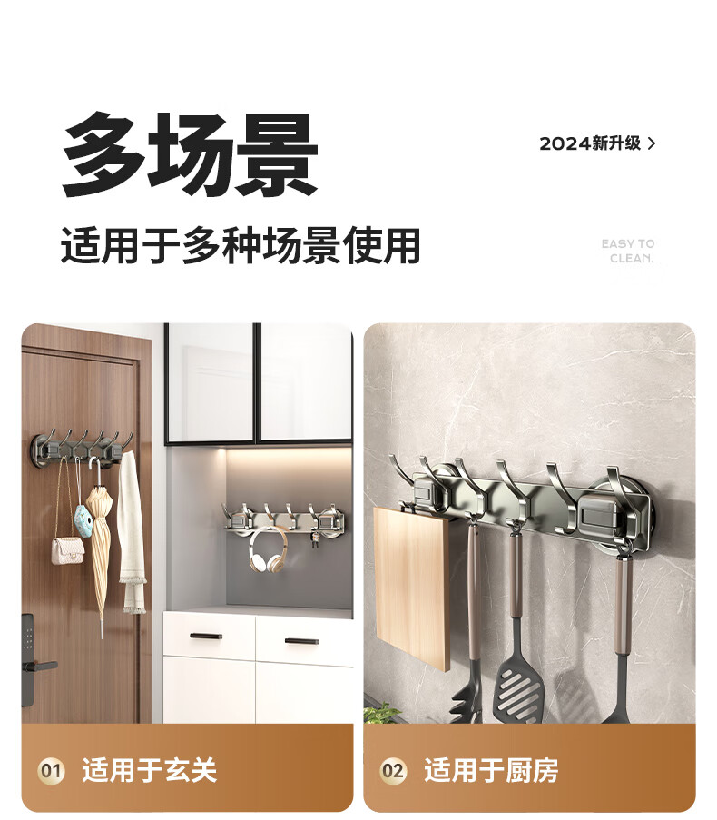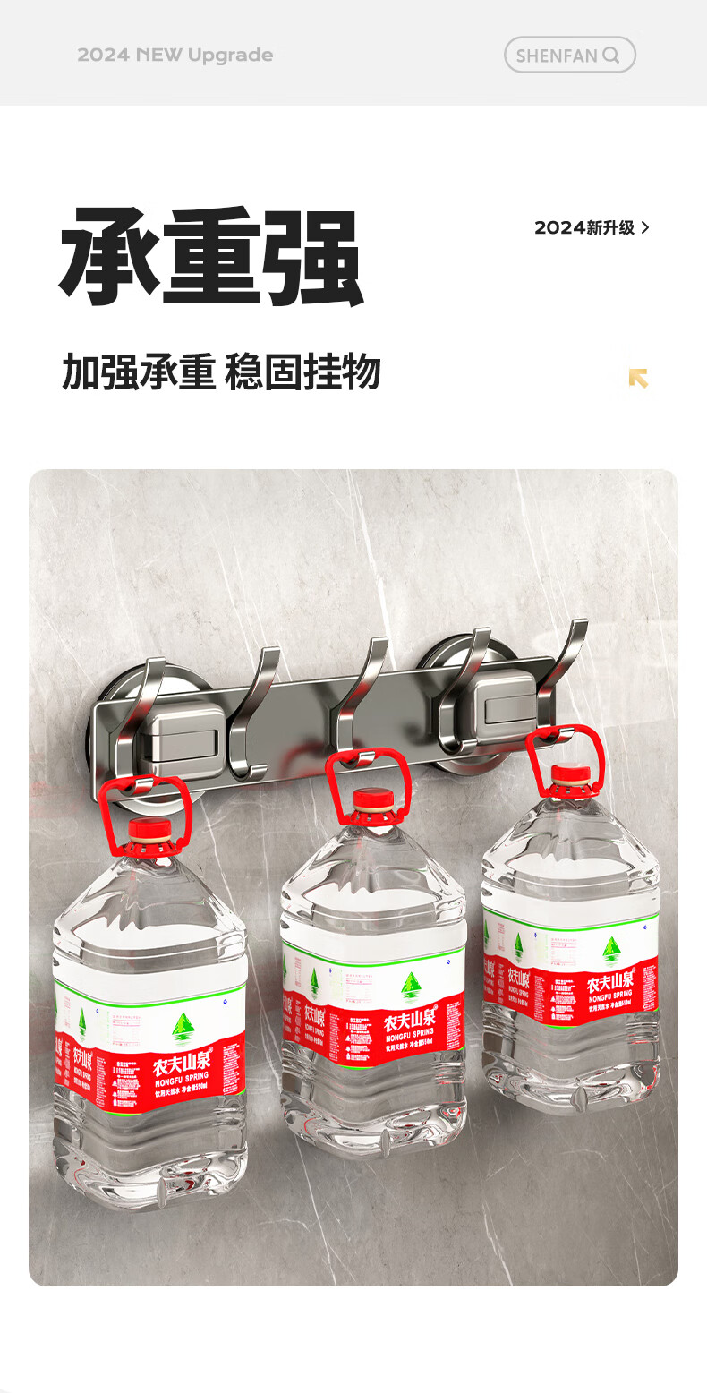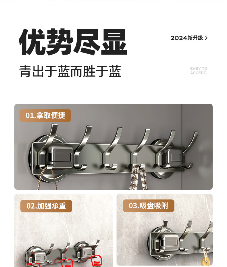 AILUKI日本吸盘挂钩免打孔强力承重壁挂排钩进门玄关挂衣架上墙无痕粘钩 【吸盘奶白】5钩凤尾排钩