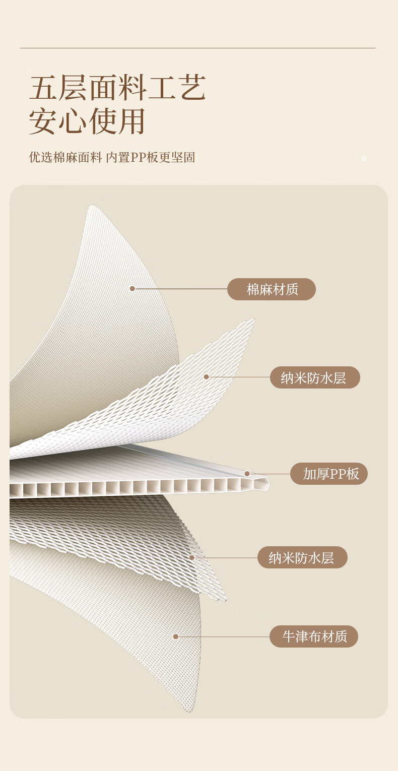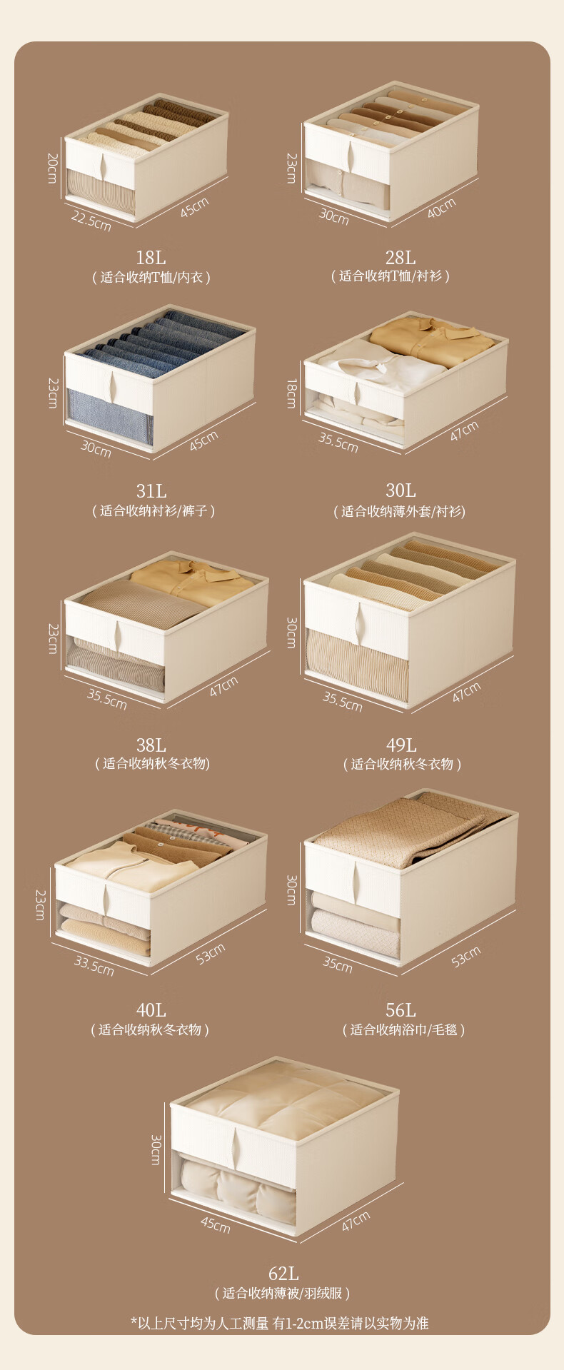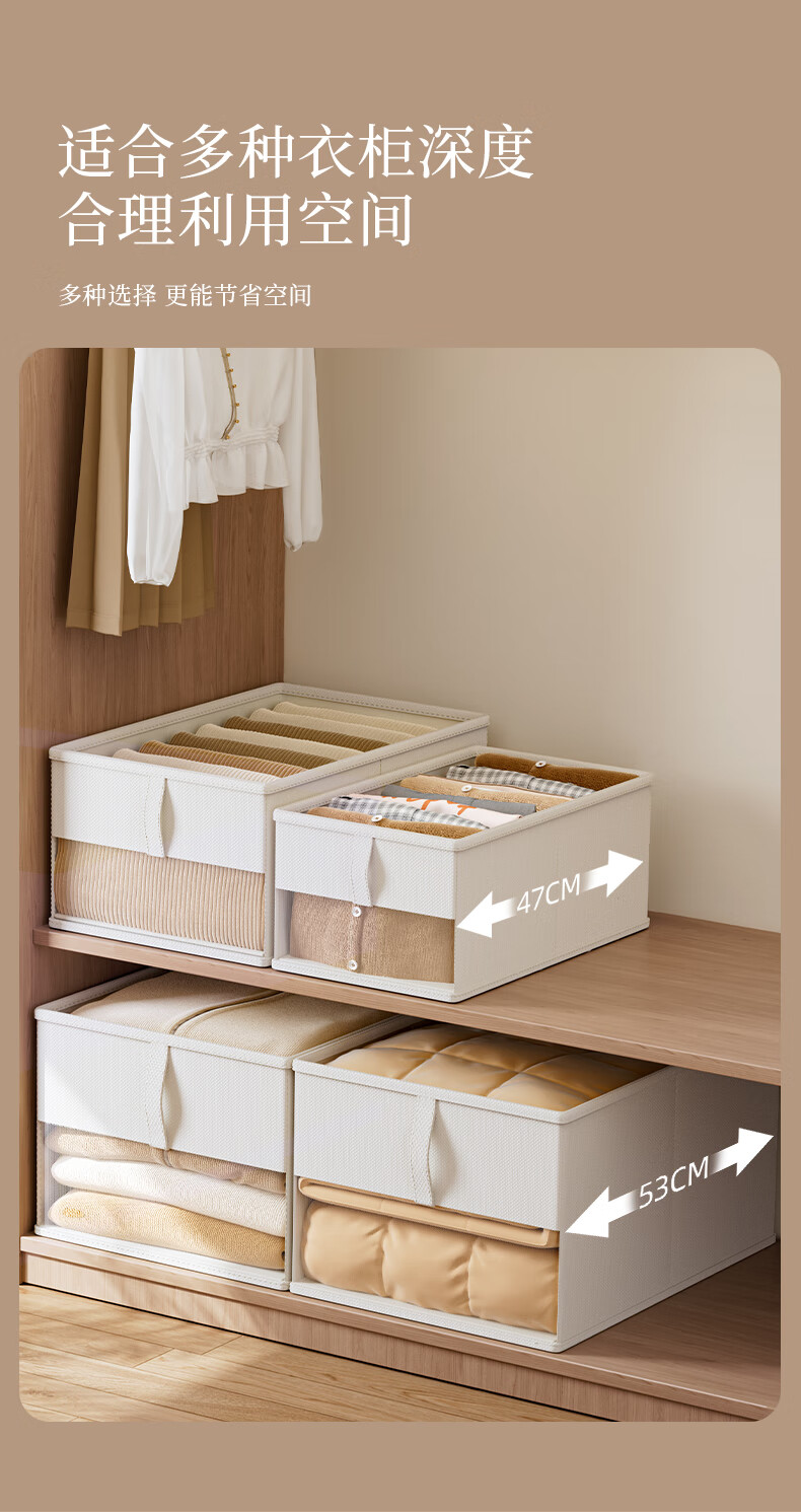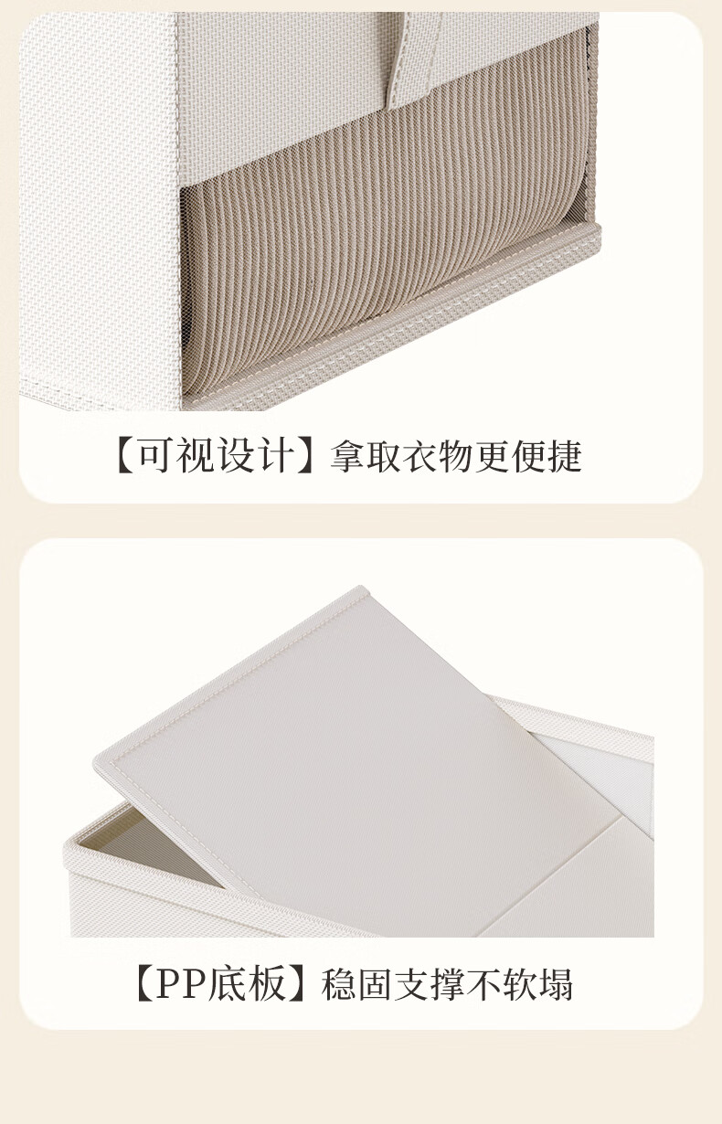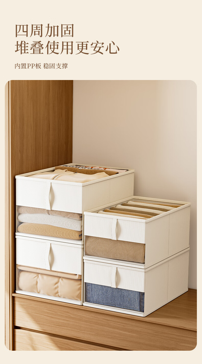 邦尼美家带盖衣物收纳盒天山棉麻衣服裤子双层整理盒衣柜收纳可折叠储物盒 米色-中号【双盖 可水洗】 放心购(甄选天山棉麻材质)