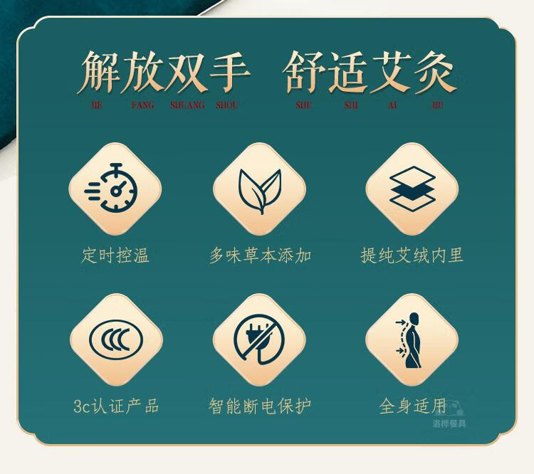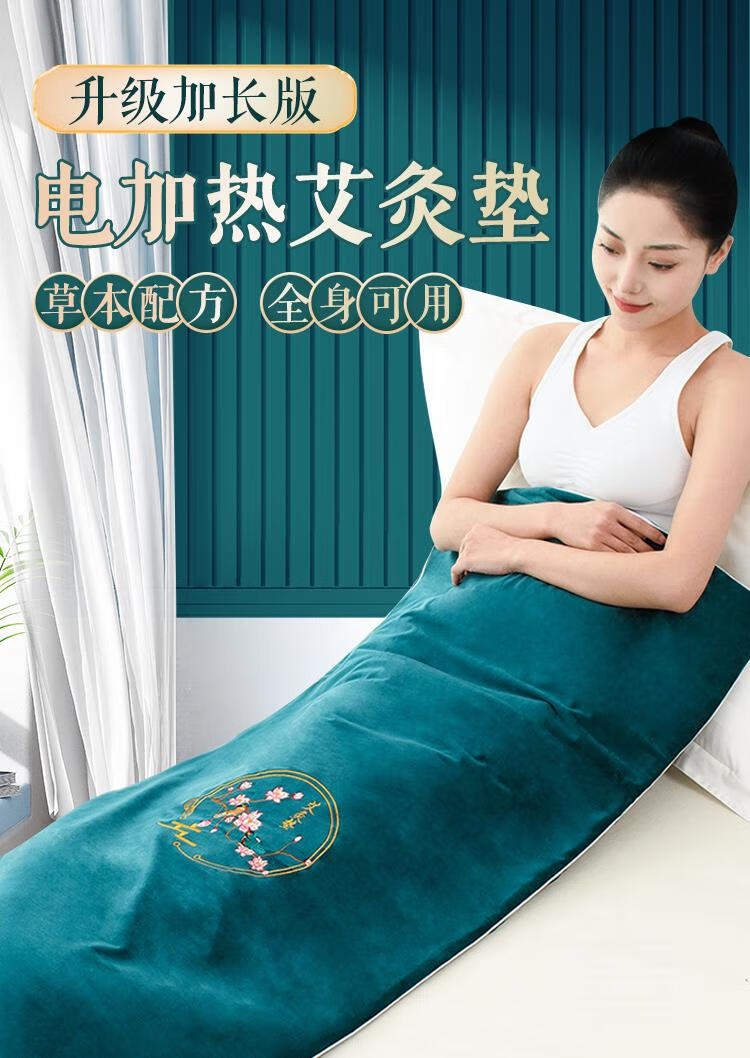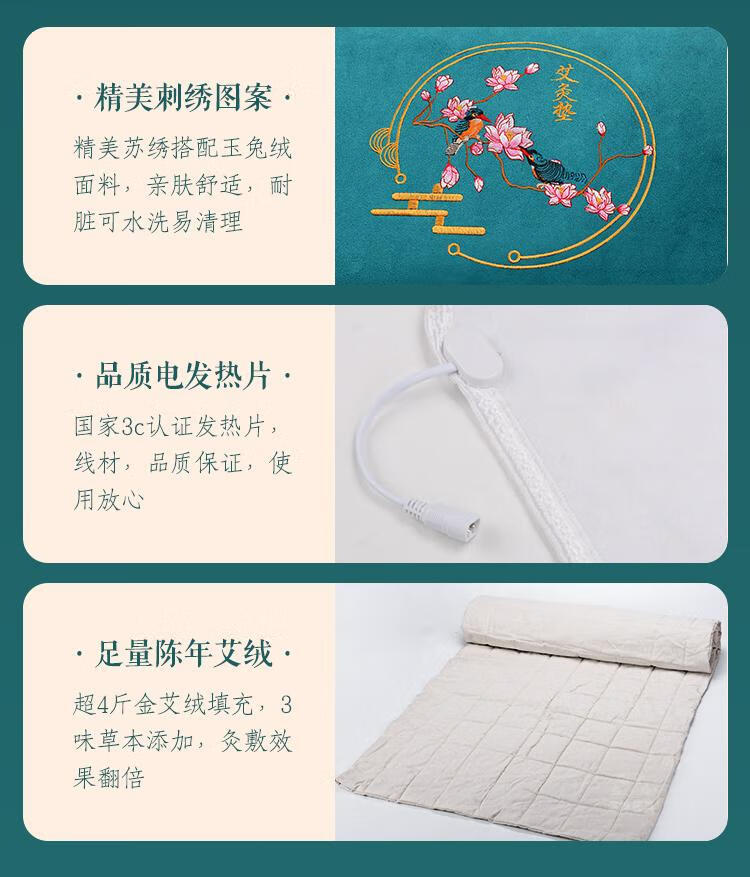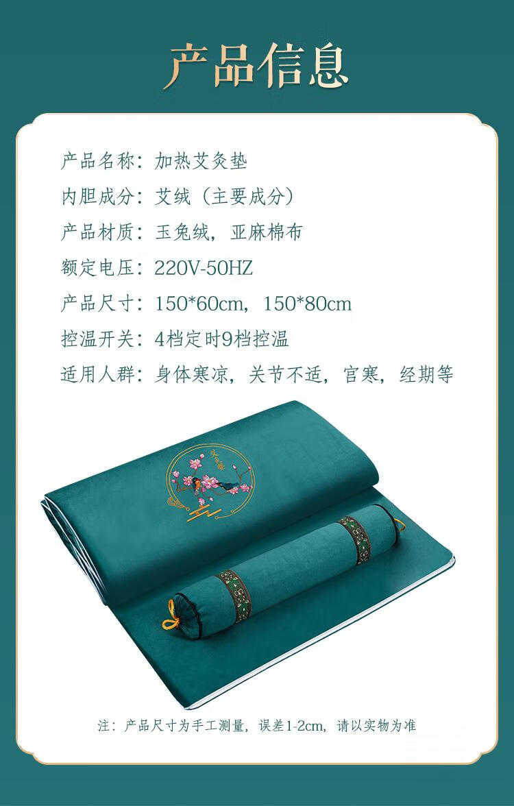 WCZ德国艾灸加热毯子南都电加热艾草床垫全身通用褥子圣草家用养 福气临门纯艾绒150*65cm/2米加长