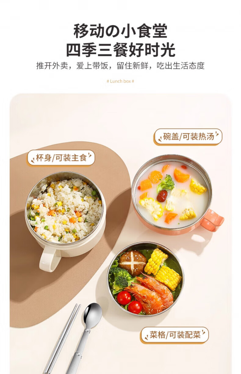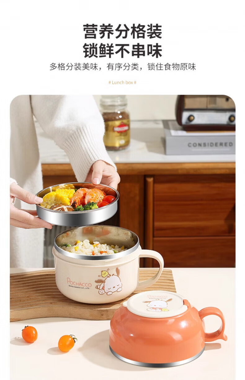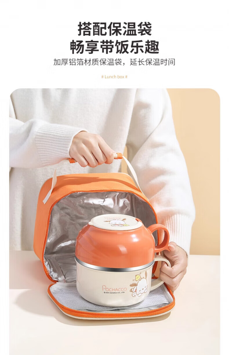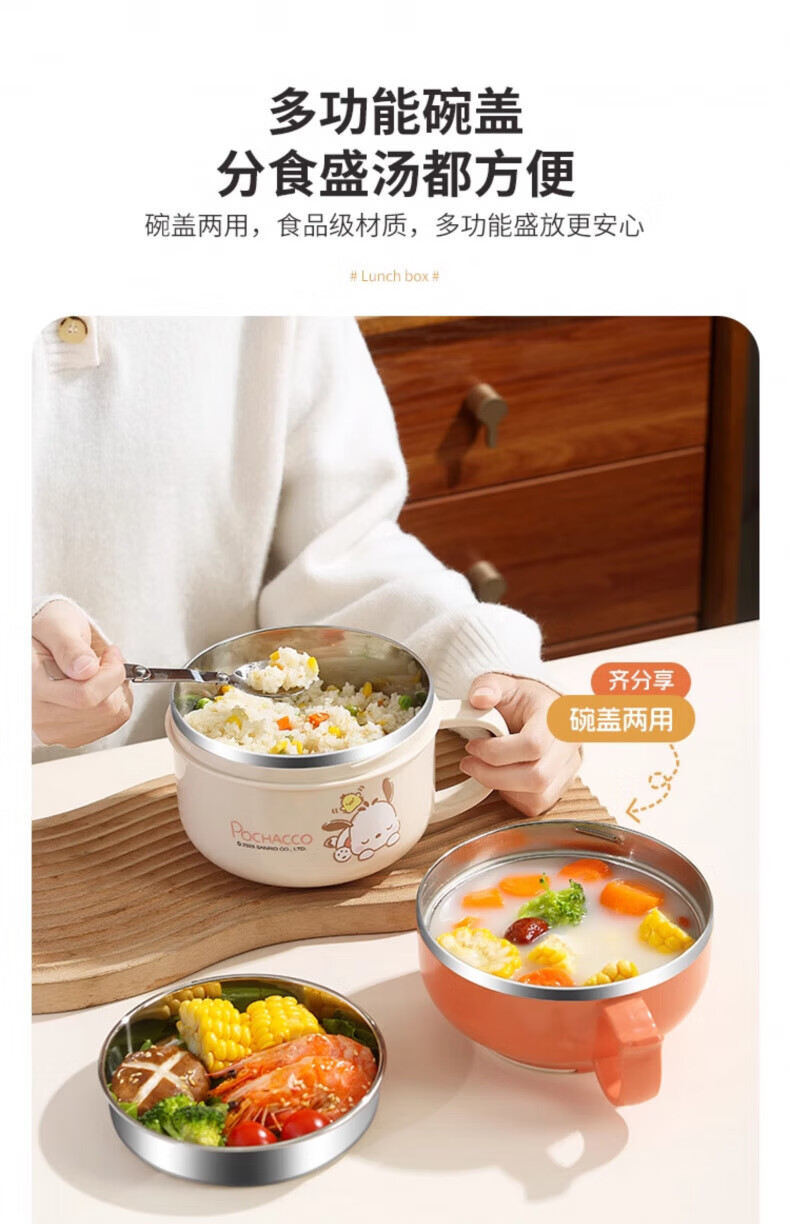 AILUKI日本不锈钢饭盒食堂打饭碗个人专用小学生2025新款保温饭缸上班快 玉桂狗+保温袋-送餐具(盖子可收纳 2150ml