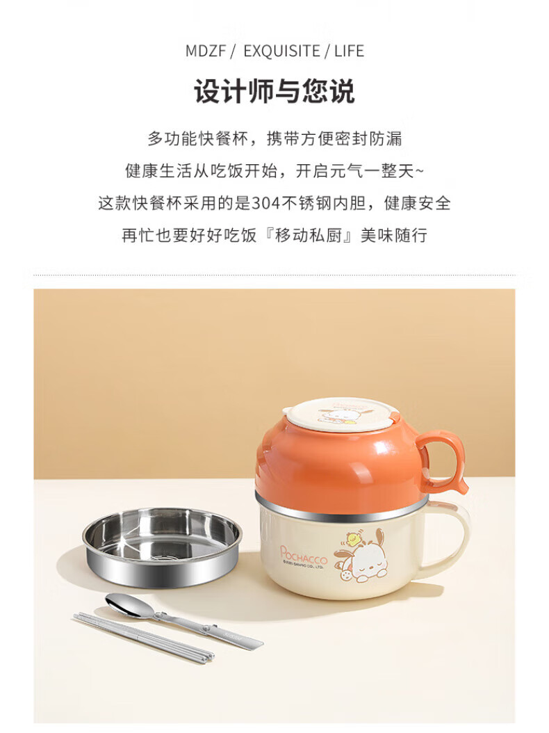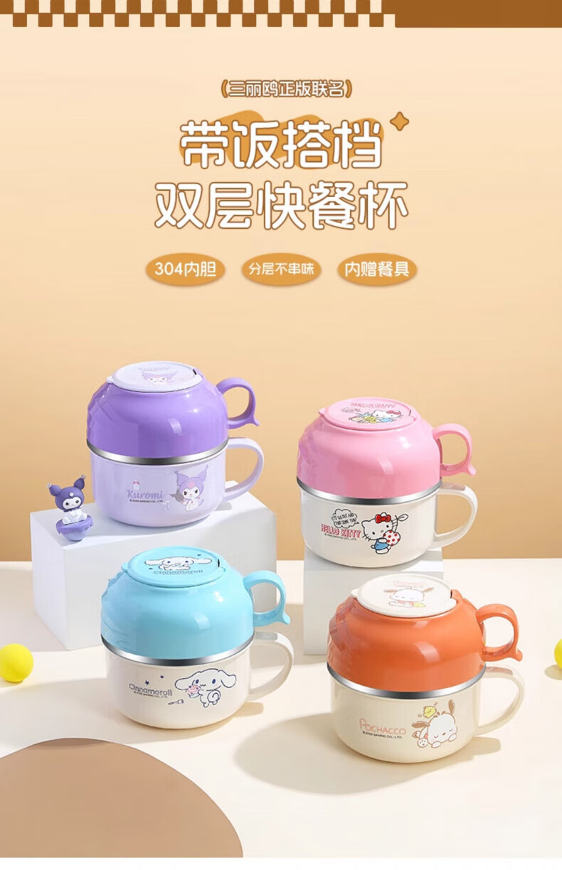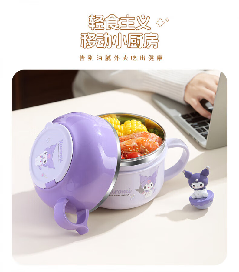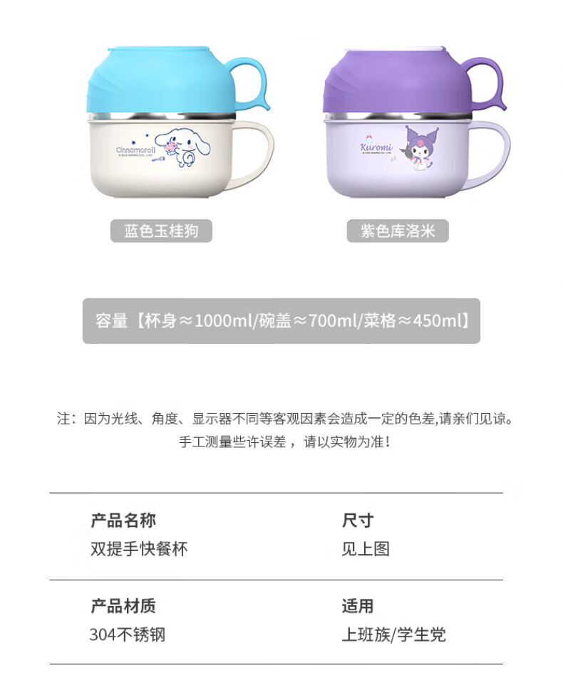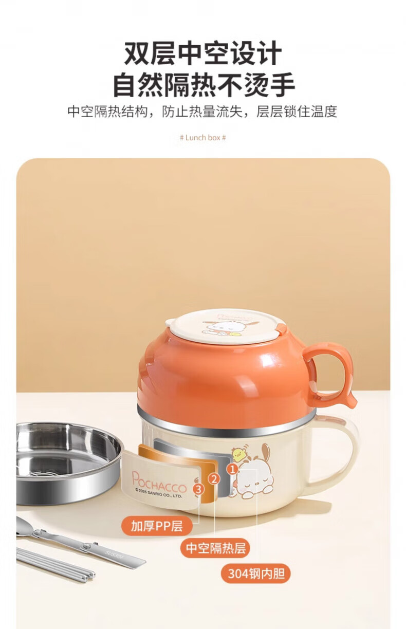 AILUKI日本不锈钢饭盒食堂打饭碗个人专用小学生2025新款保温饭缸上班快 玉桂狗+保温袋-送餐具(盖子可收纳 2150ml