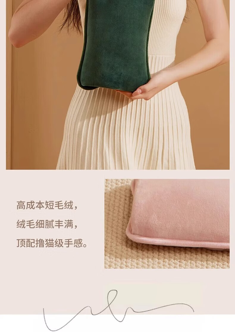 AILUKI日本高端热水袋充电式暖手宝暖宝宝防爆暖水袋暖被窝加大加长 茉英粉-可拆洗【兔绒加厚保暖/持续恒温一整夜】