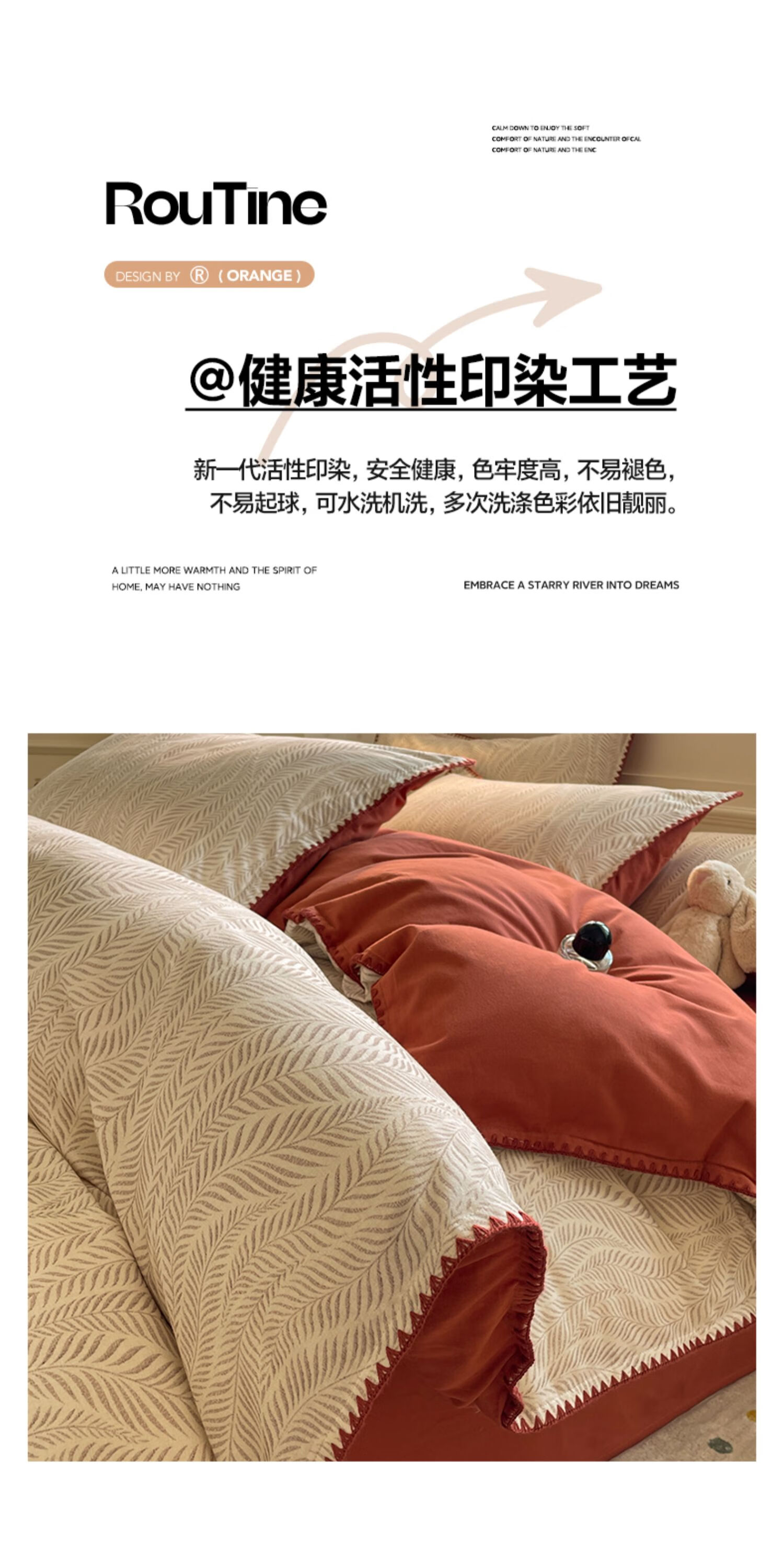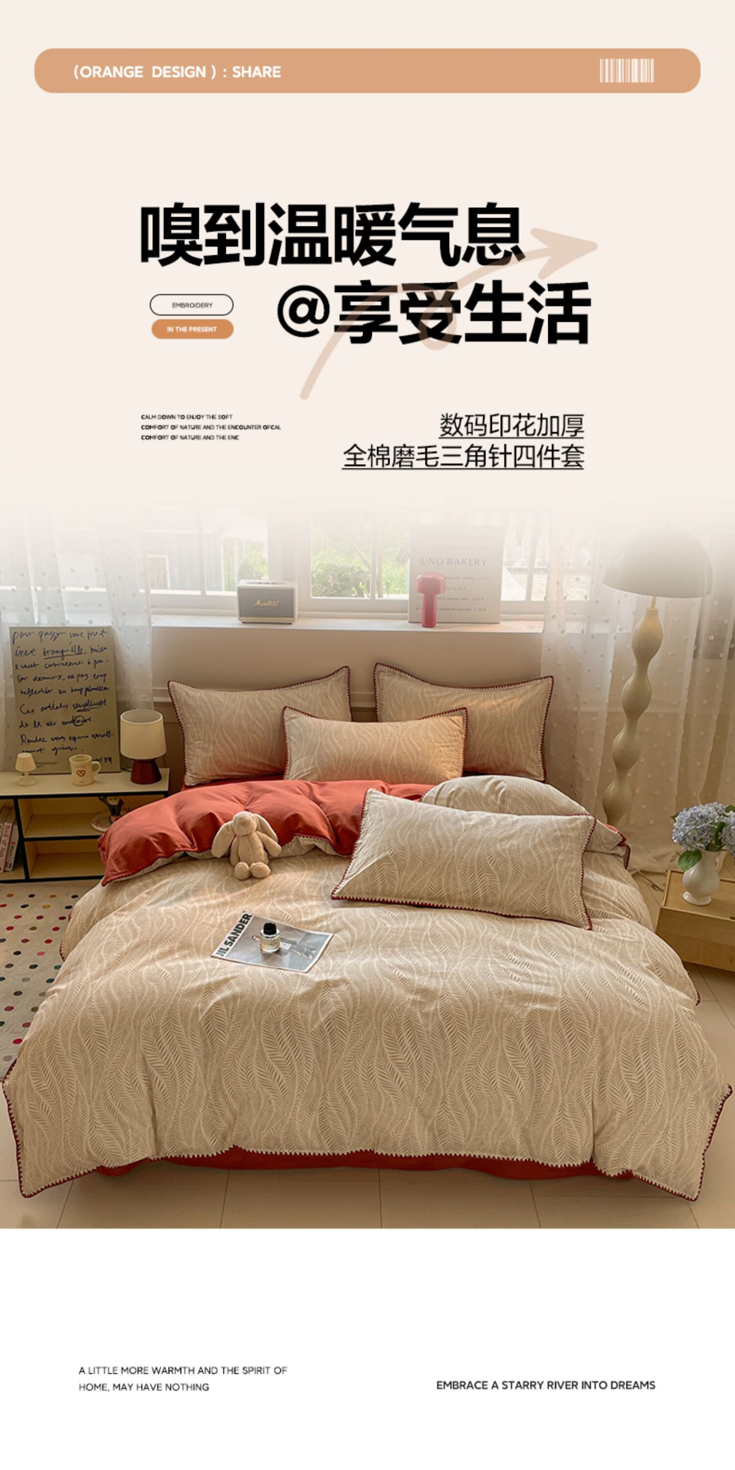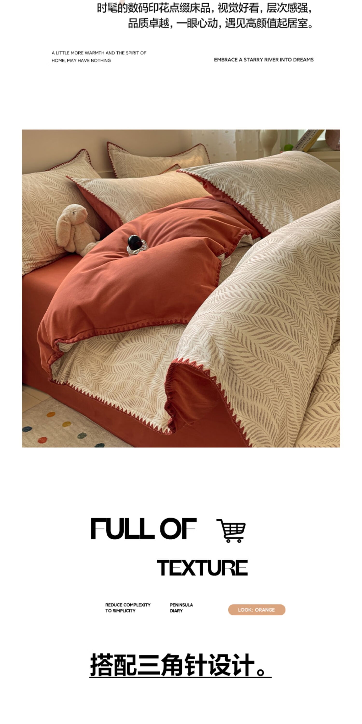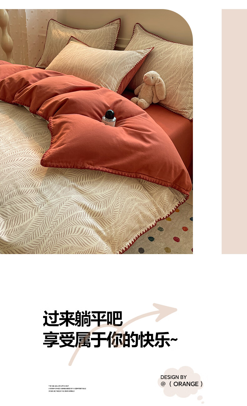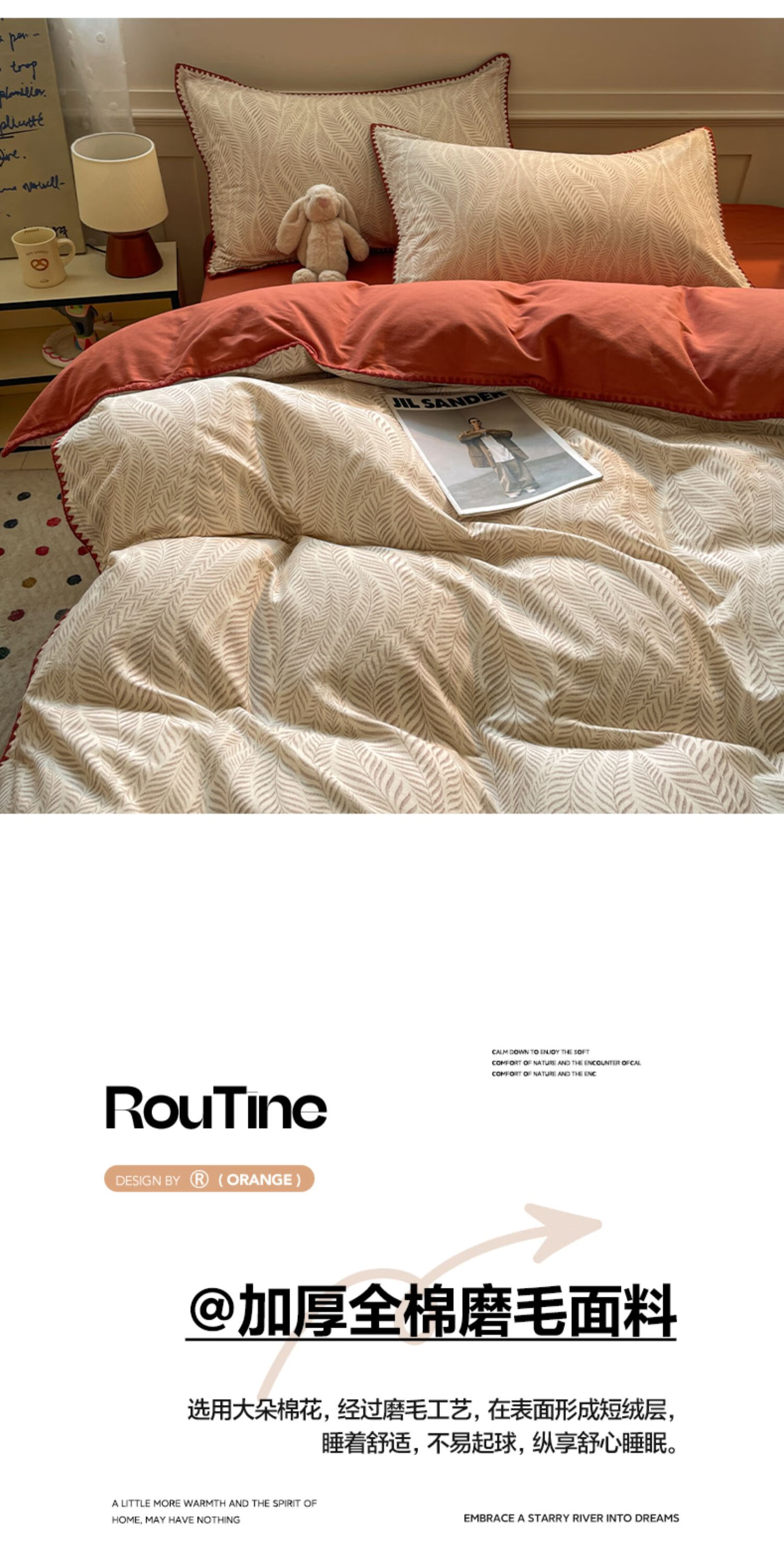 猫人纯棉全棉磨毛床上四件套轻奢高级感2025新款床单被套简约床品 原野-桔【全棉面料加厚磨毛】 床笠款 1.8m床【四件套】适200x230cm被芯
