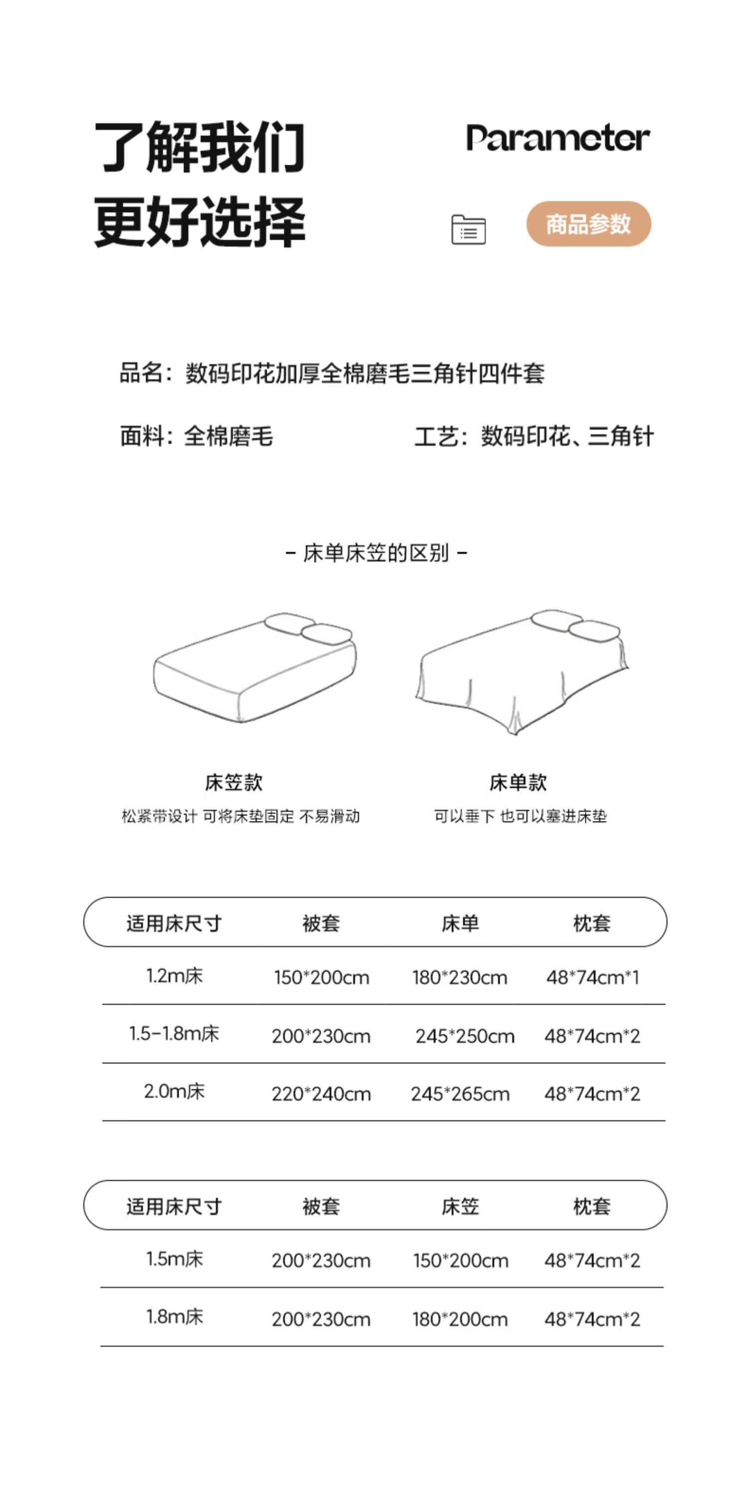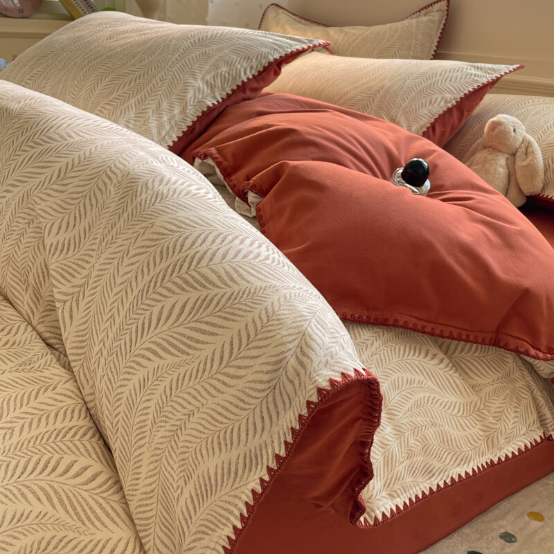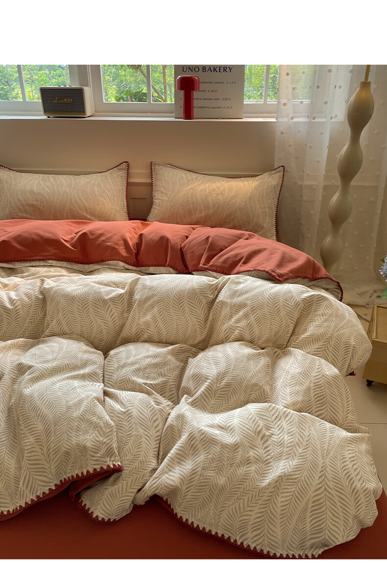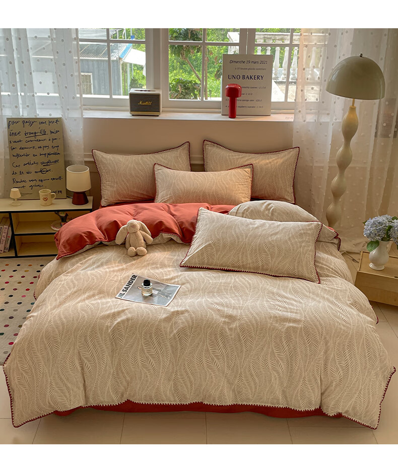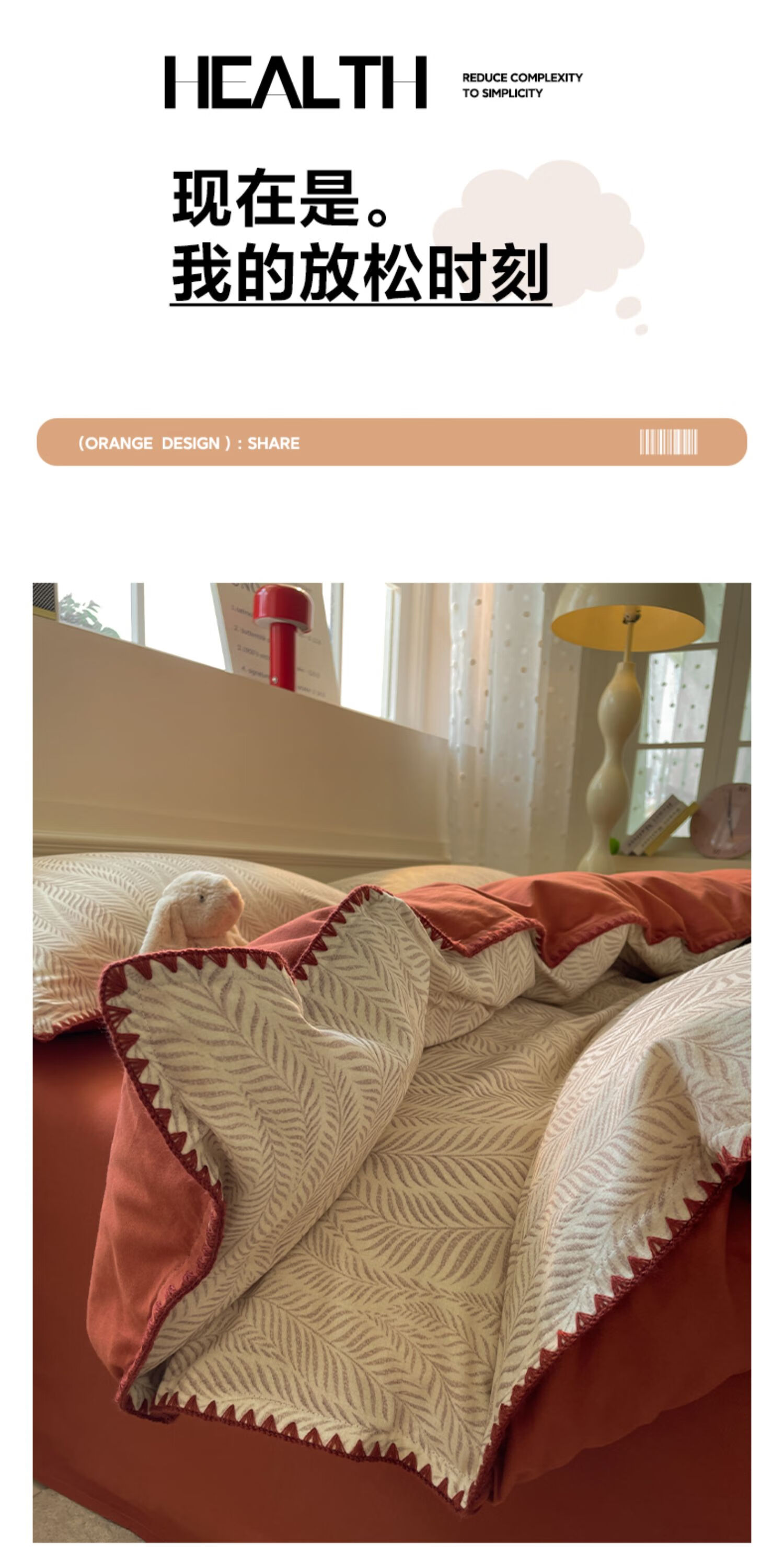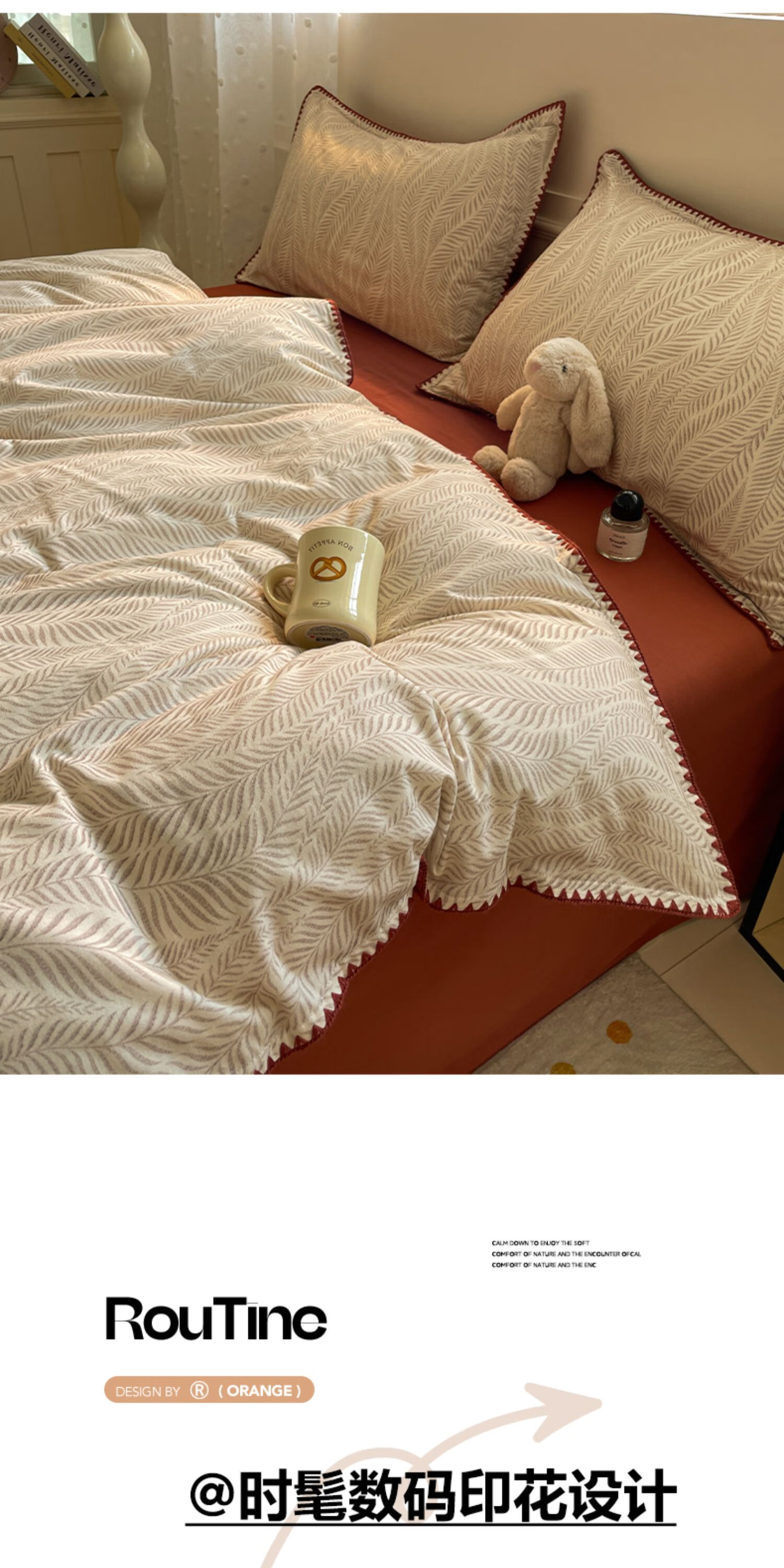 猫人纯棉全棉磨毛床上四件套轻奢高级感2025新款床单被套简约床品 原野-桔【全棉面料加厚磨毛】 床笠款 1.8m床【四件套】适200x230cm被芯