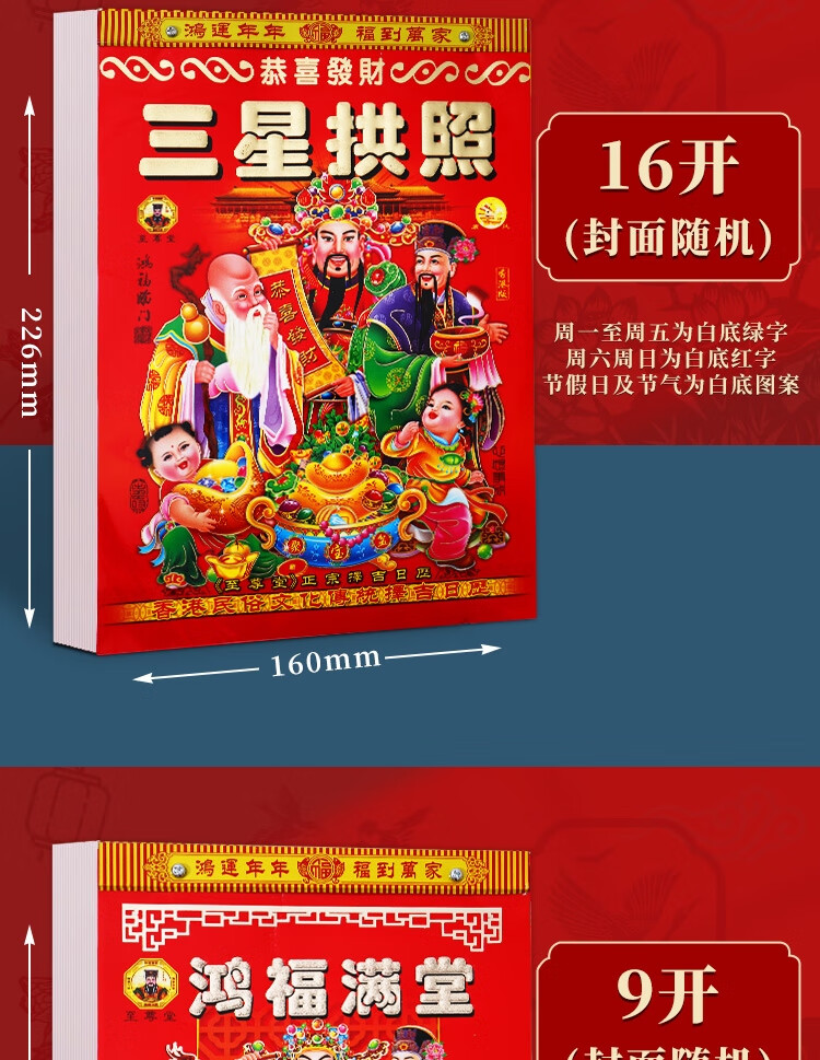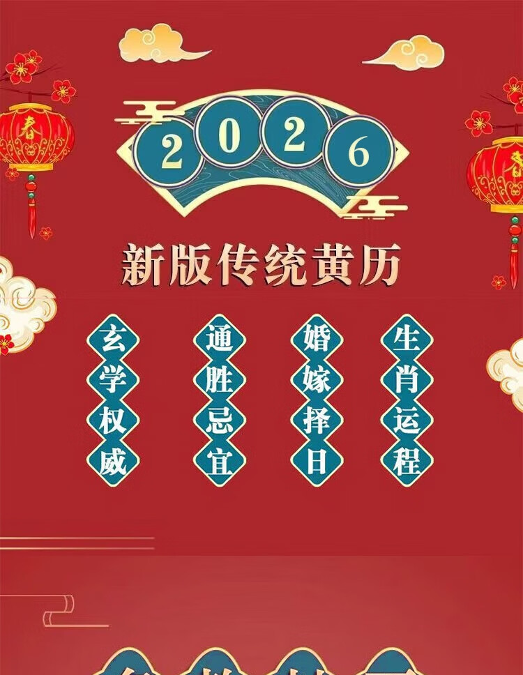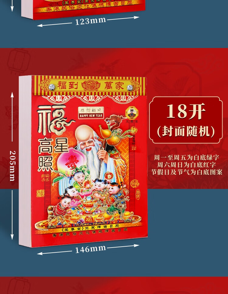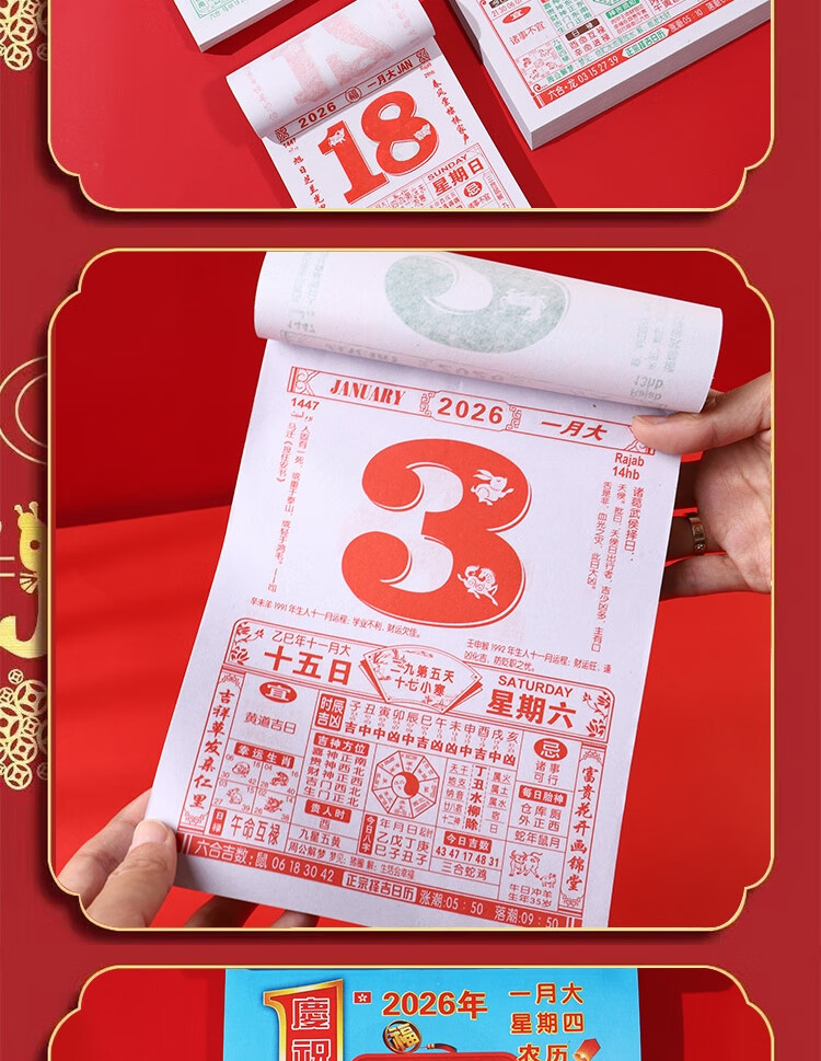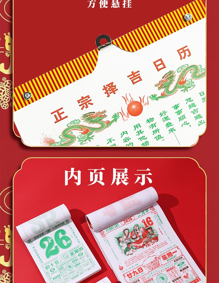 欧利文2026年新款家用挂墙老式黄历农历挂历万年日历本马年正版吉日吉时查询老皇历解读手撕365页 18开