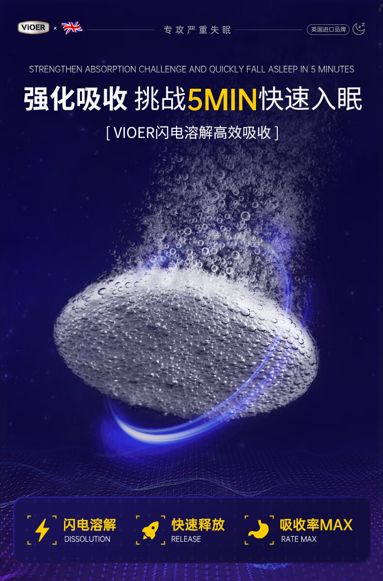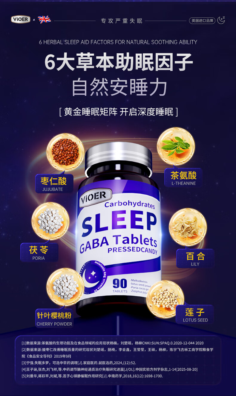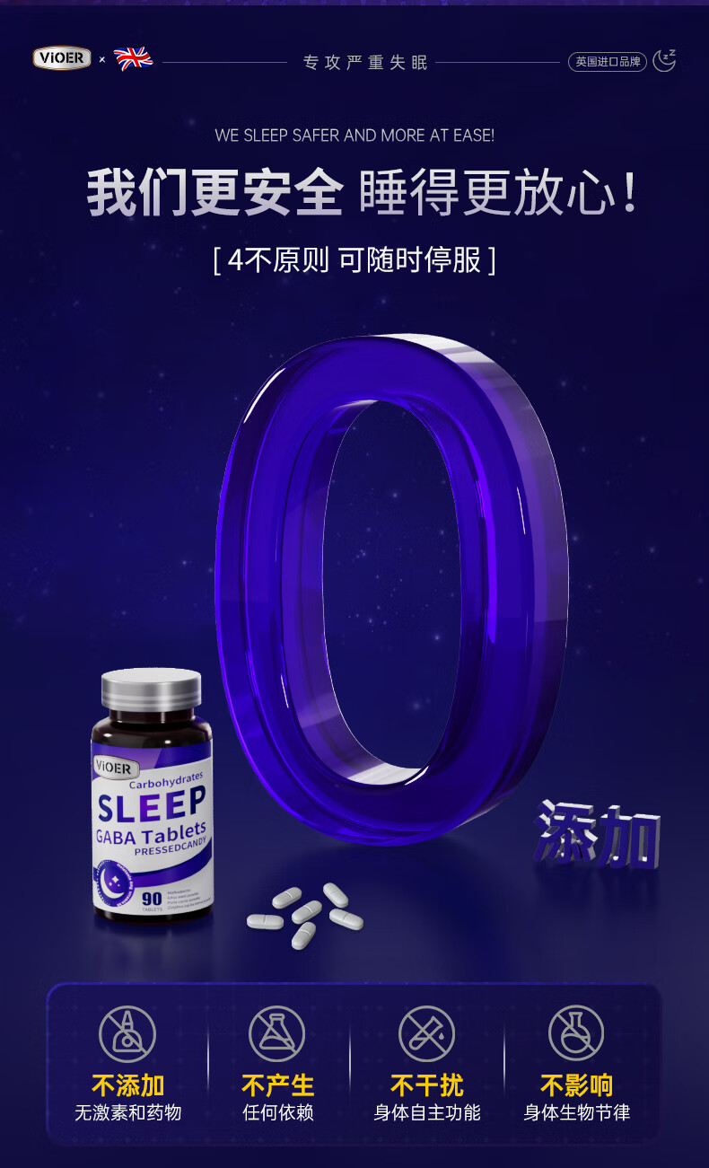 VIOERγ氨基丁酸gaba酸枣仁睡眠片褪黑素软糖改善睡眠深度失眠安眠90粒