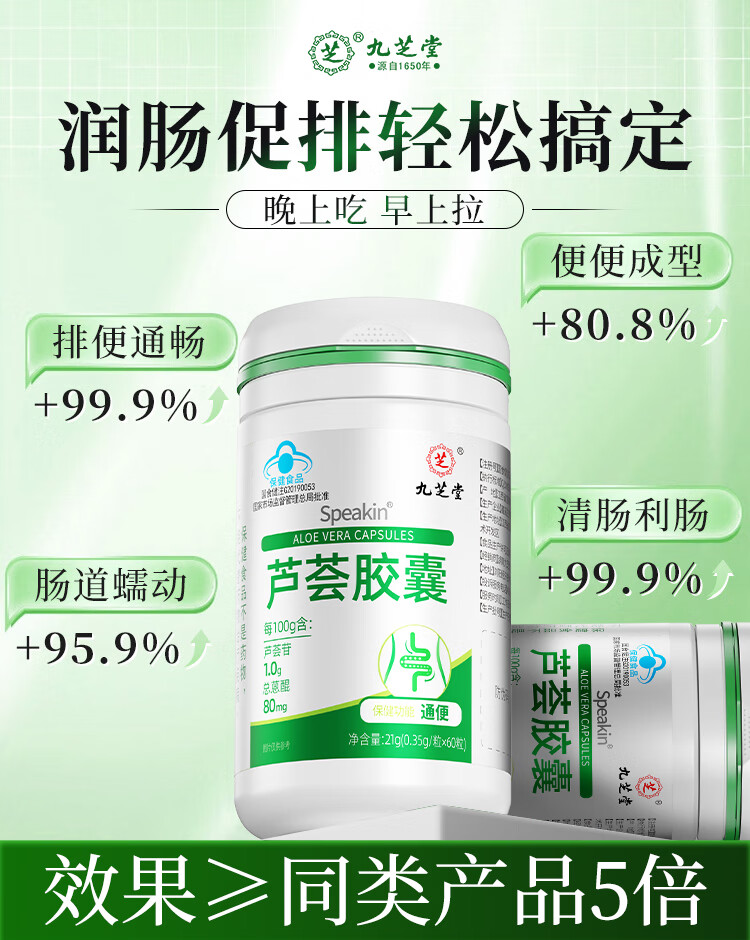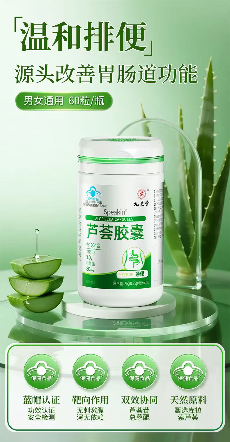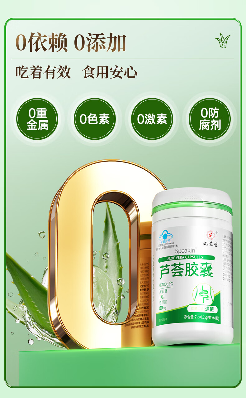 九芝堂Speakin®芦荟胶囊润肠通便宿便促排清肠不拉肚 21g(0.35g×60)