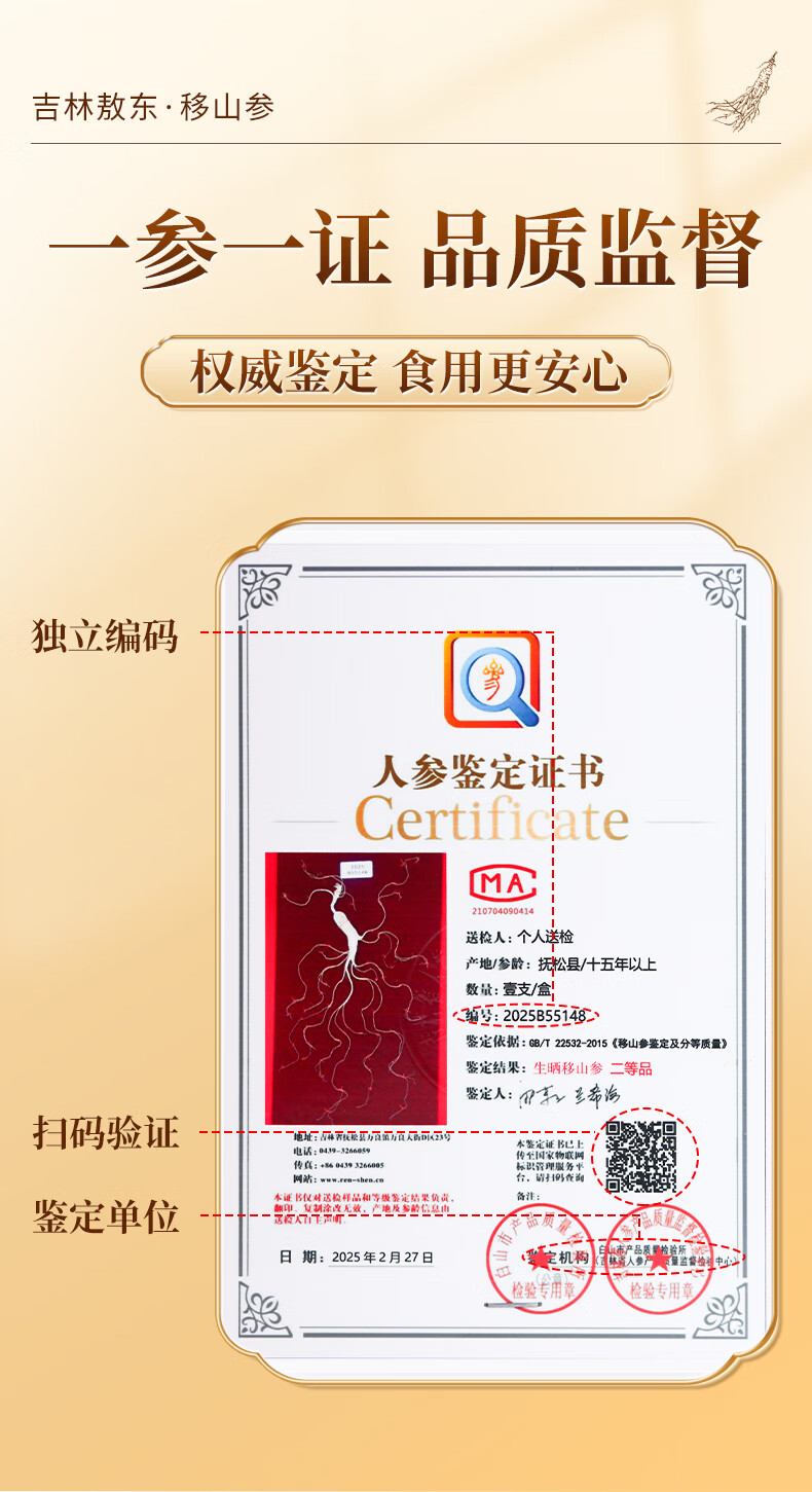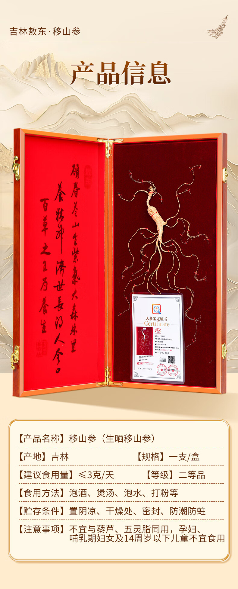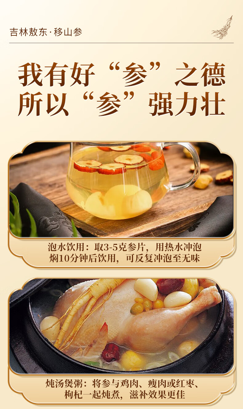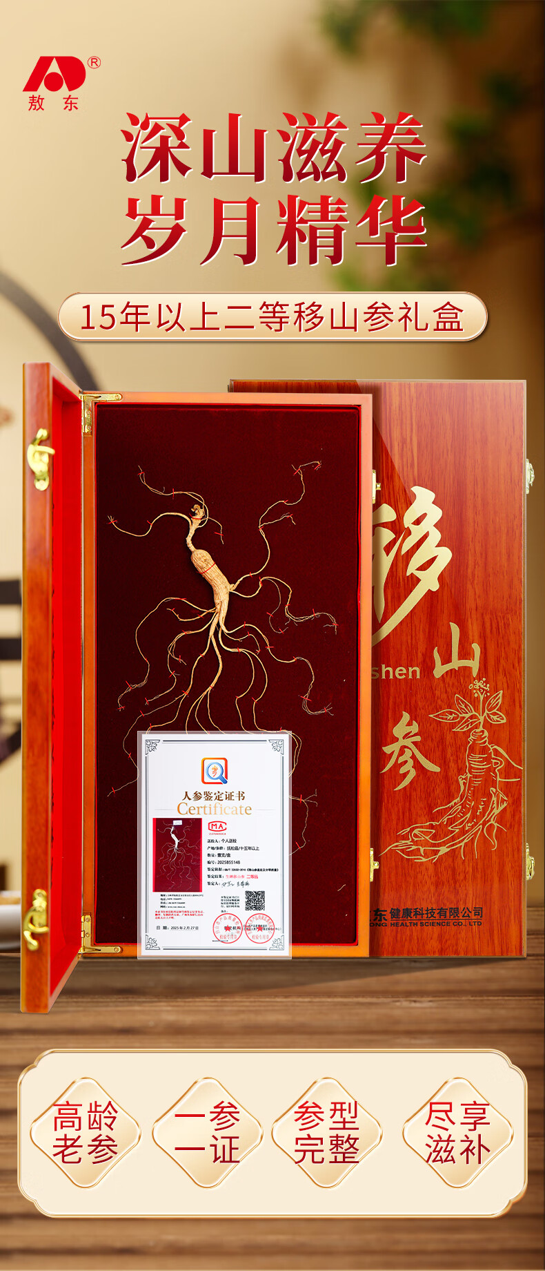 敖东长白山人参移山参礼盒 15年整枝泡酒煲汤料送父母长辈滋补礼品