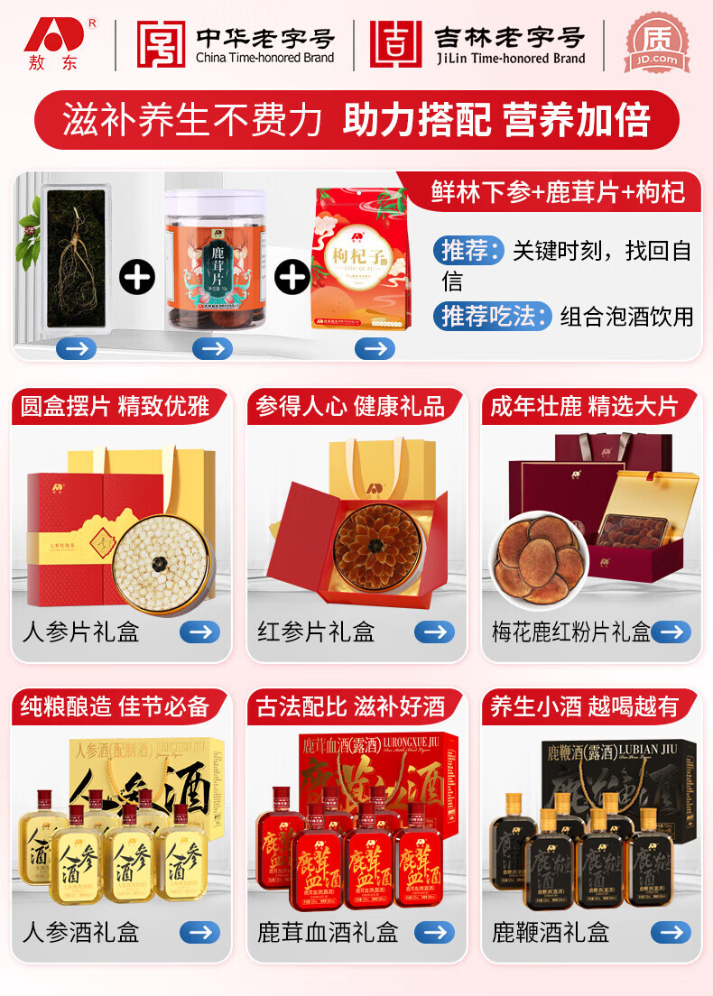 敖东 长白山人参野山参礼盒 15年以上整枝野生山参泡酒送长辈礼品