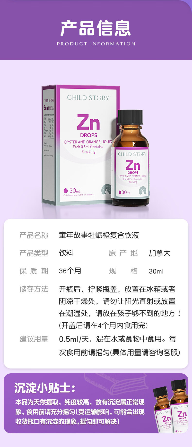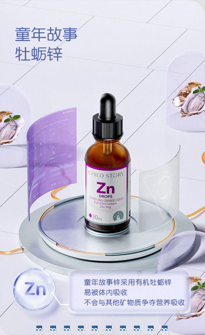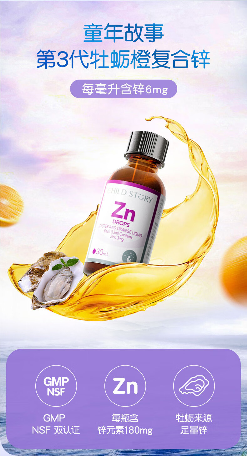 童年故事牡蛎橙复合饮液口服液 锌Zn30ml(加拿大原装进口) 液体锌滴剂