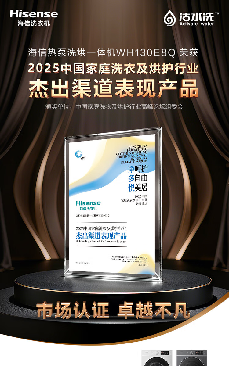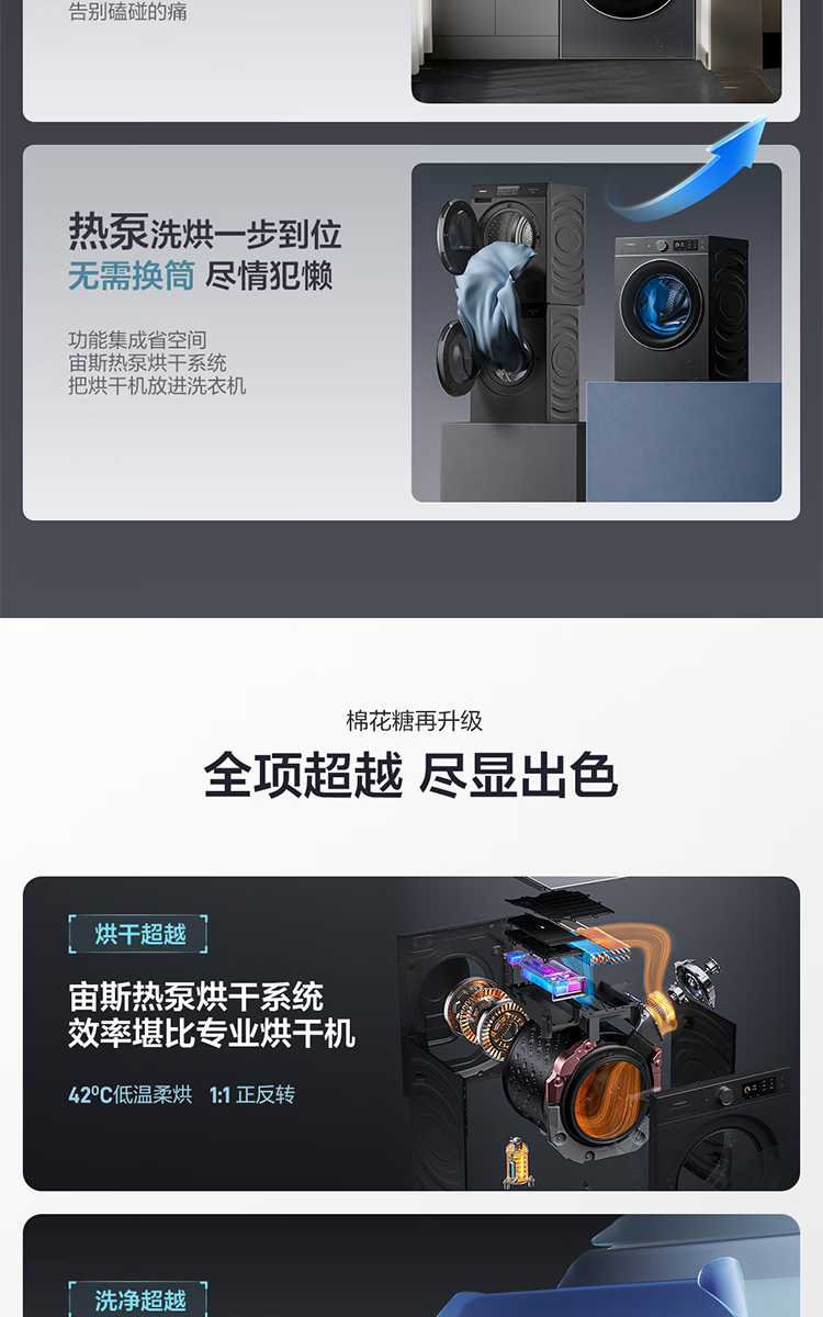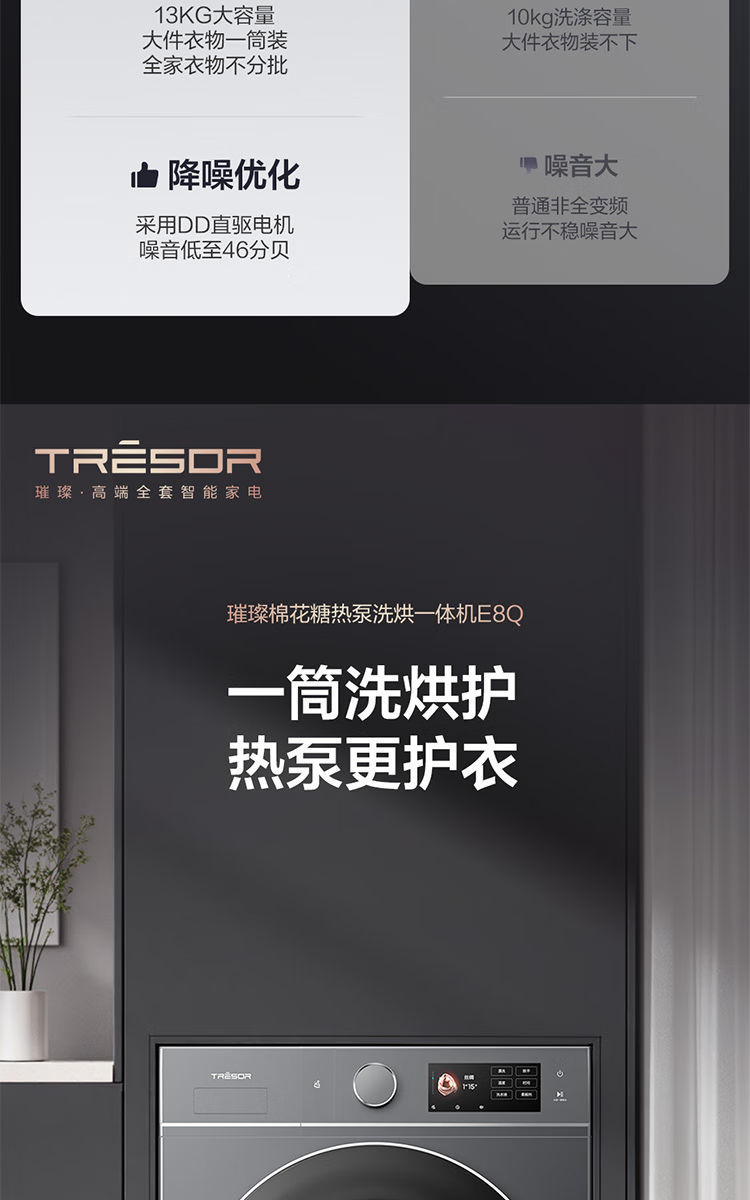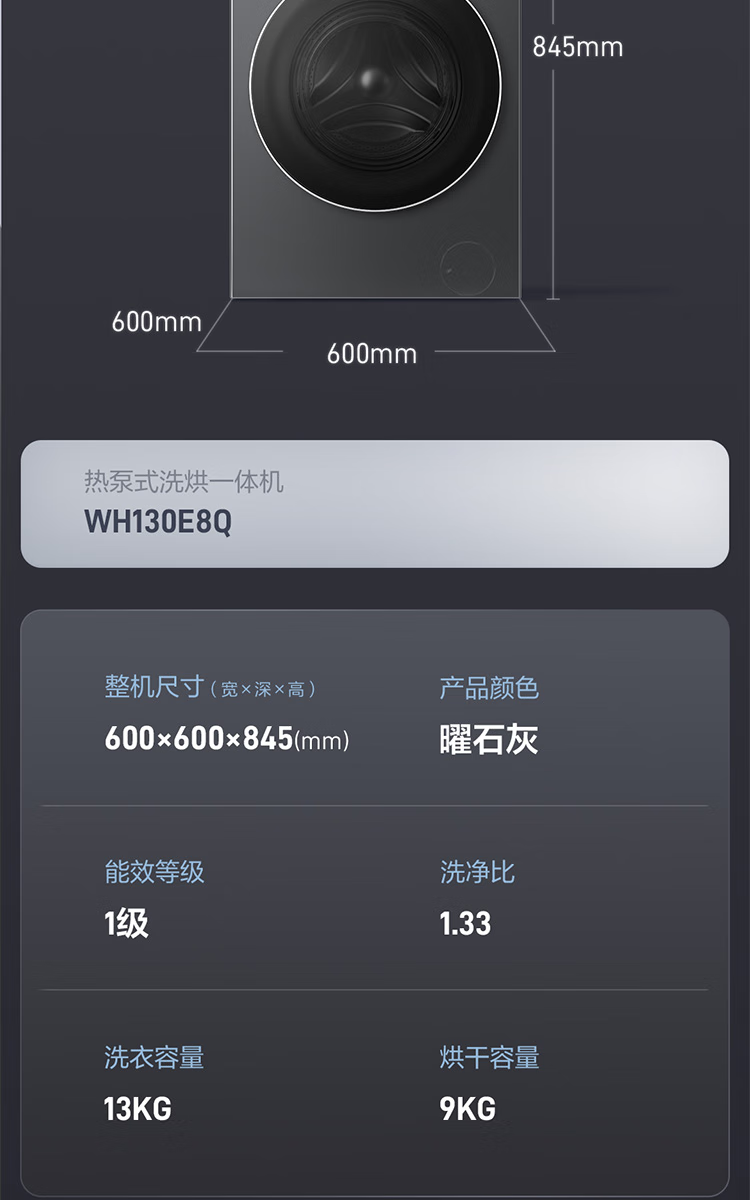 海信(Hisense)璀璨棉花糖热泵洗烘一体机E8Q 全家筒大筒全自动滚筒洗衣机 大容量健康活水洗 WH130E8Q 以旧换新