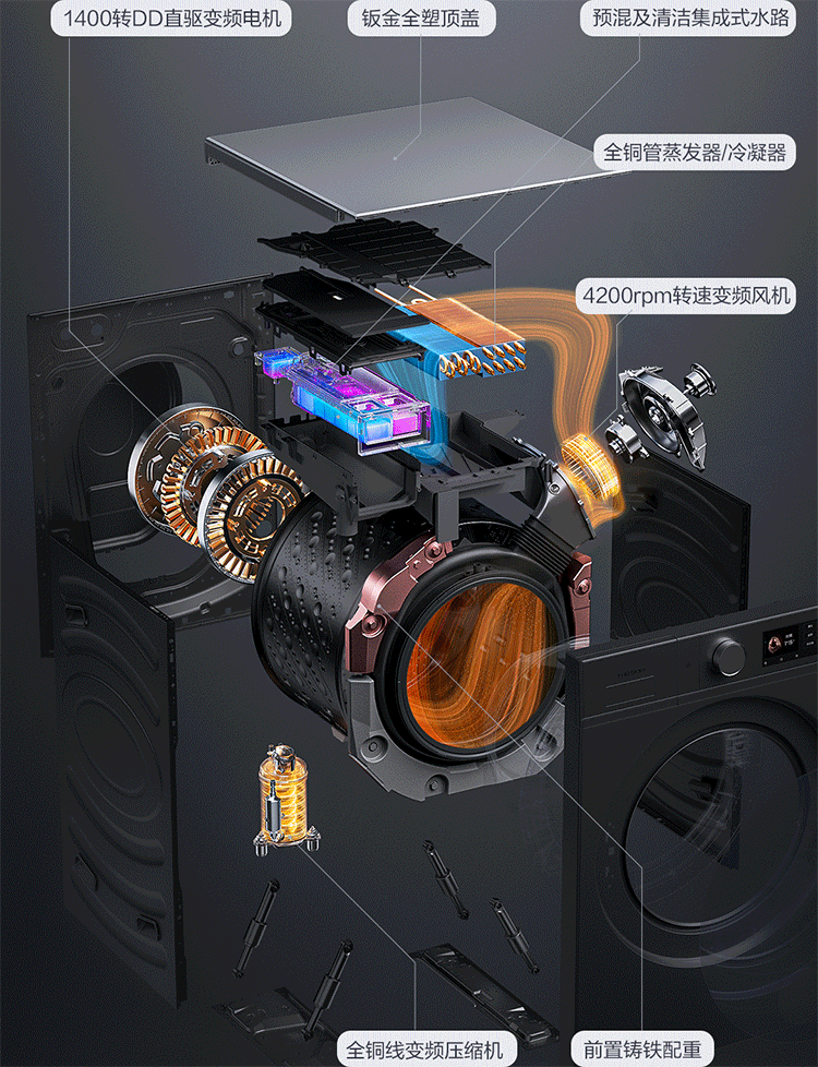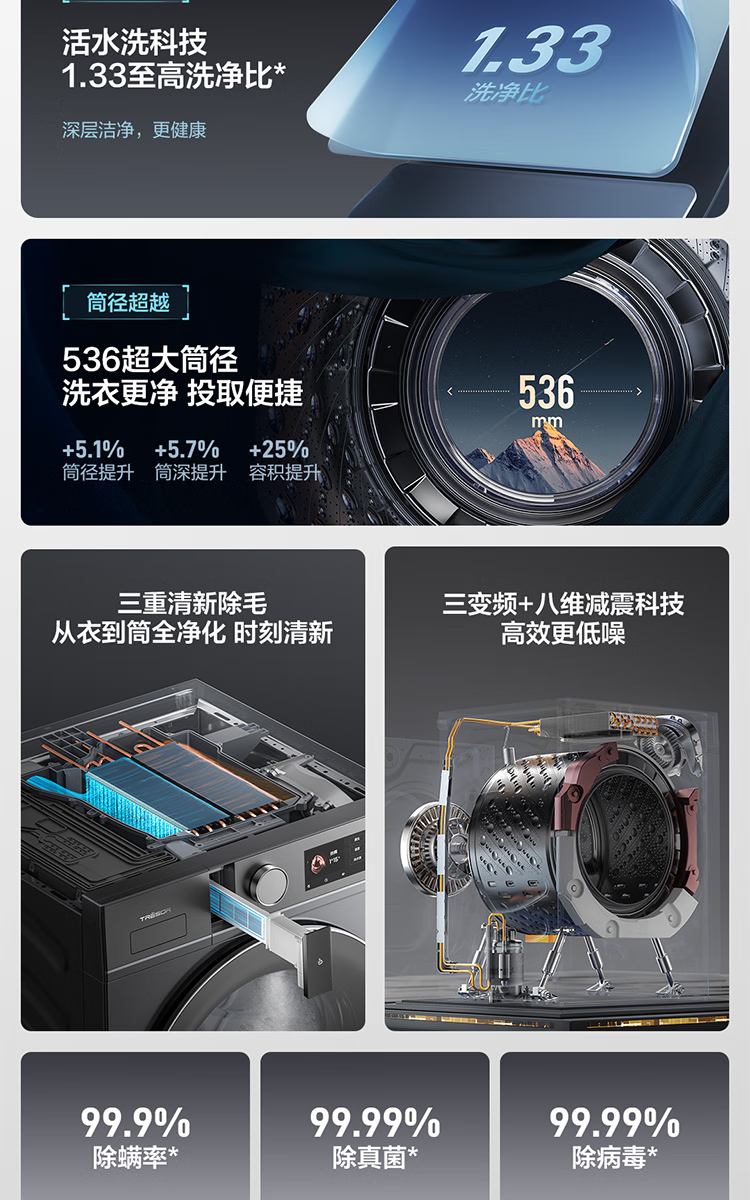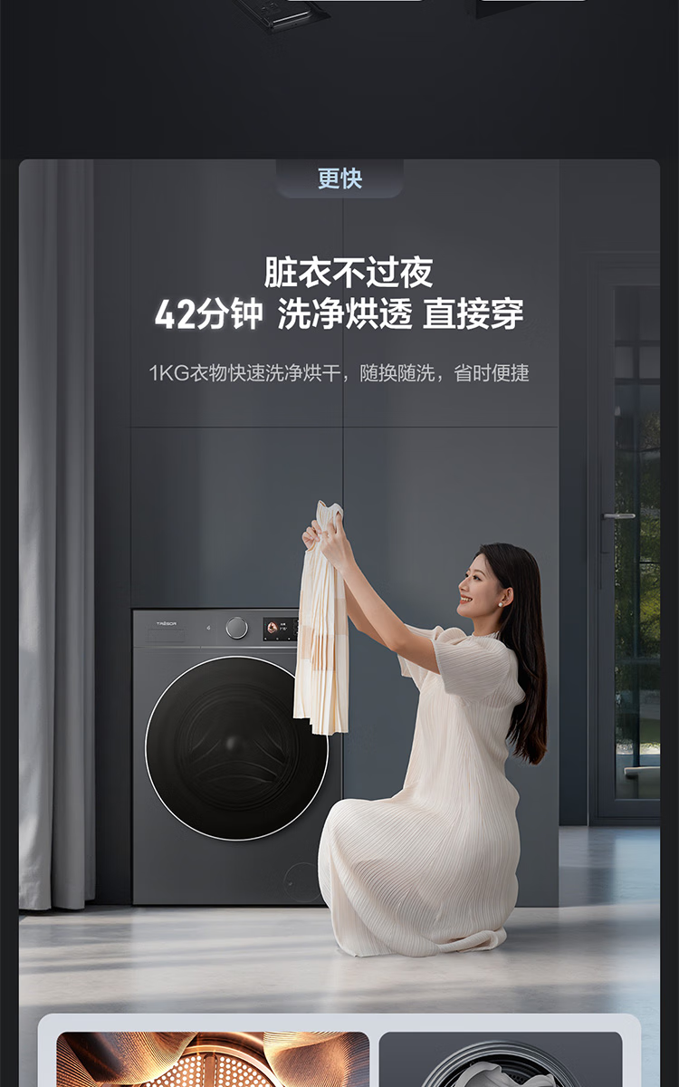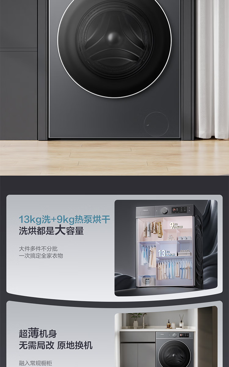海信(Hisense)璀璨棉花糖热泵洗烘一体机E8Q 全家筒大筒全自动滚筒洗衣机 大容量健康活水洗 WH130E8Q 以旧换新