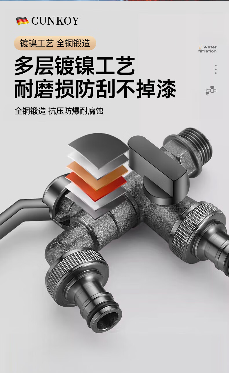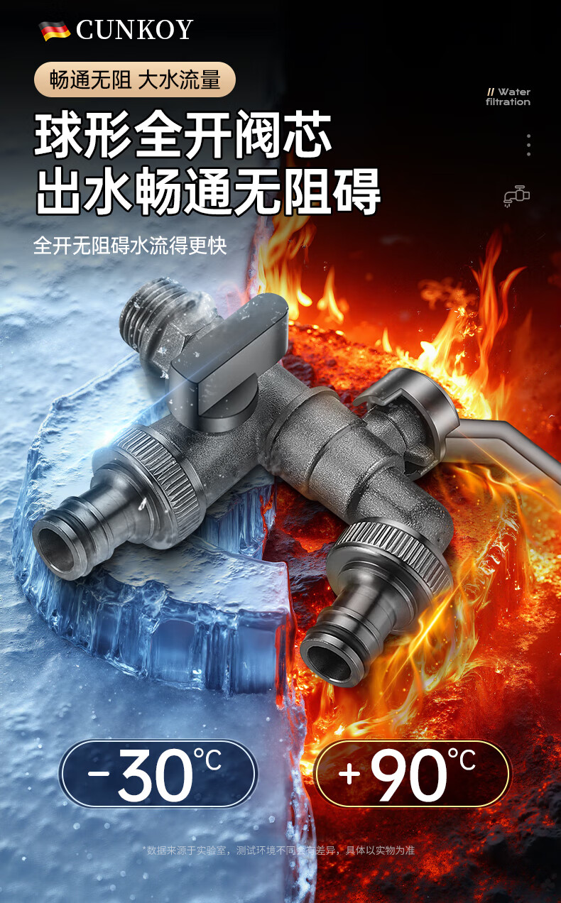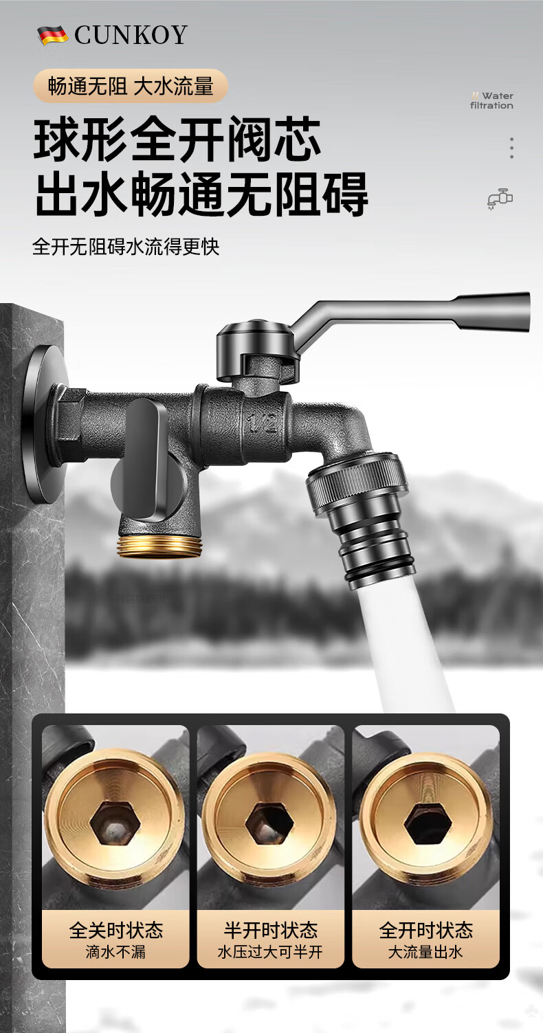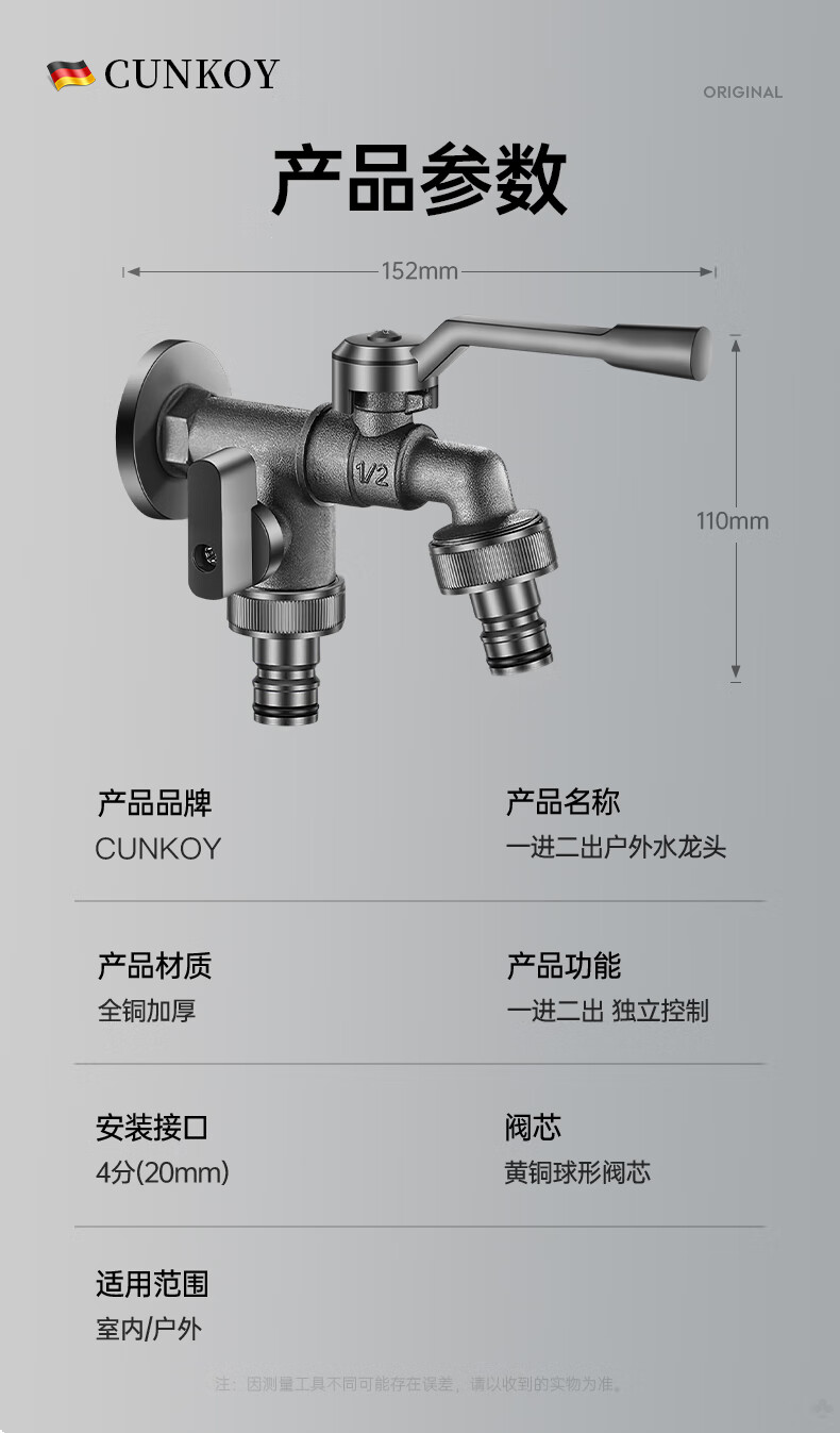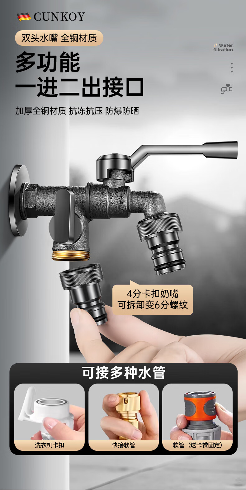 CUNKOY【德国】全铜户外水龙头一进二出洗衣机庭院花园室外防冻防晒龙头 户外水龙头【全铜主体】一进二出 防冻防晒防爆裂丨4/6分通用安装