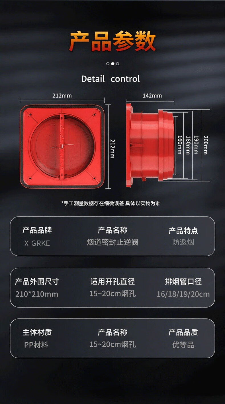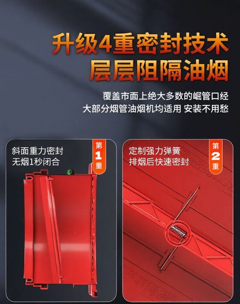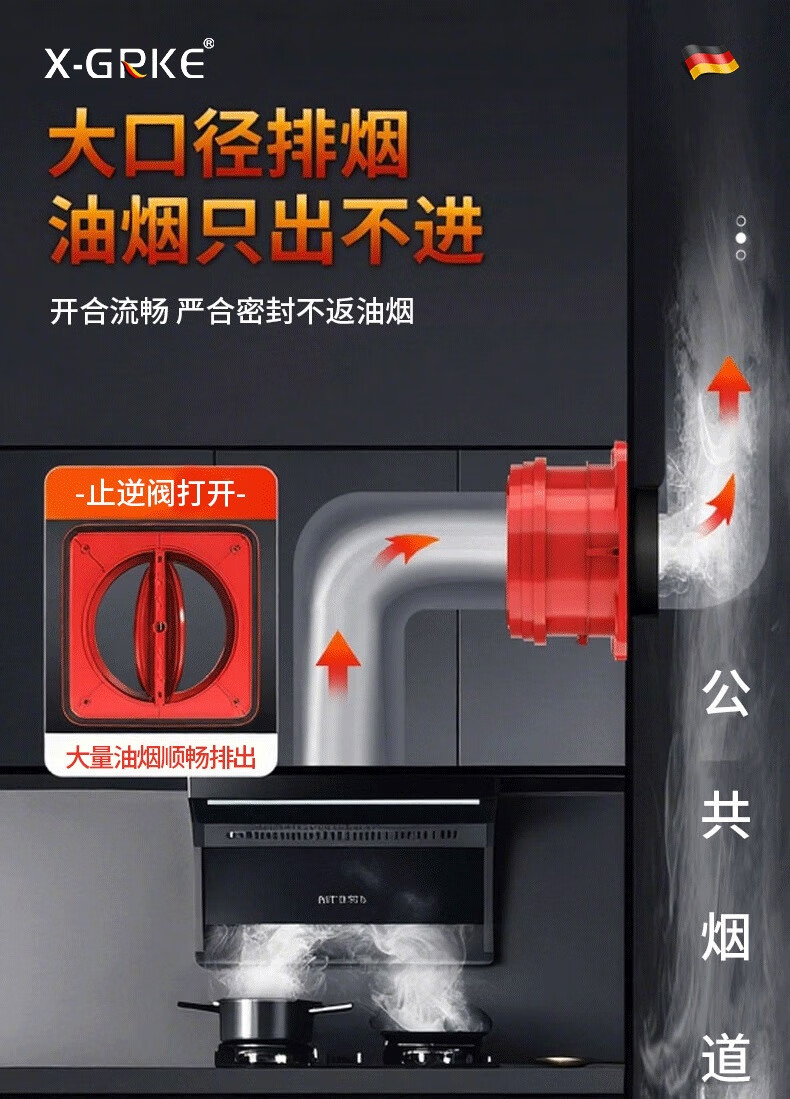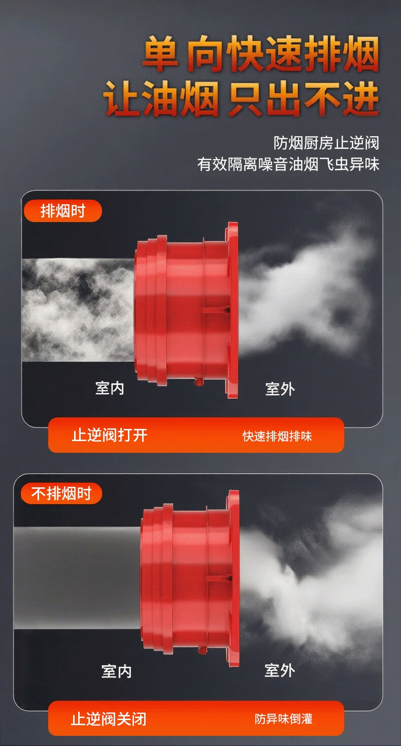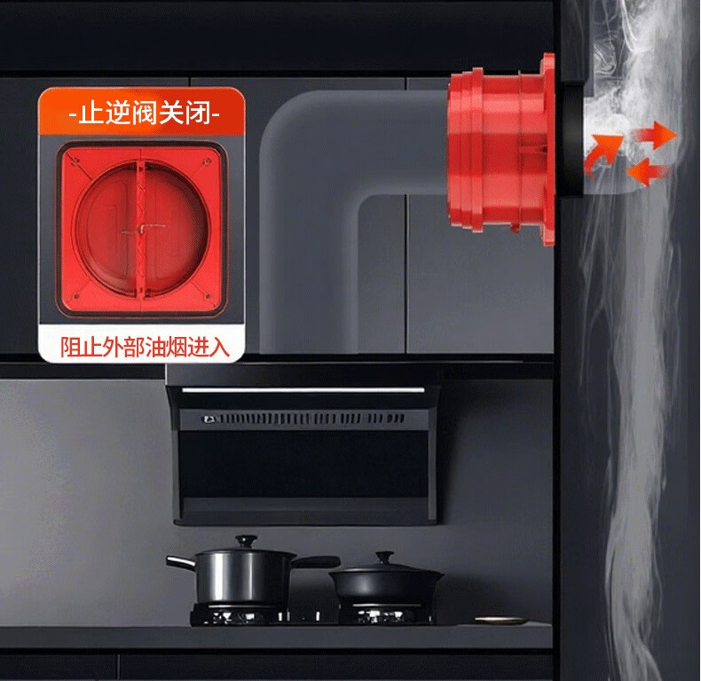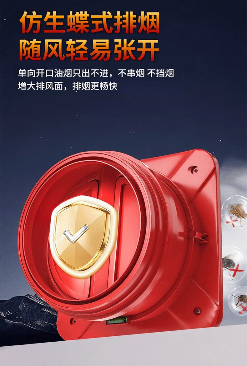 X-GRKE【德国】烟道止逆阀烟道阀厨房专用防串味排风防烟油烟机止回阀 烟道止逆阀【带水平仪+免打孔】安装配件 送安装配件丨厨房止逆阀加厚款