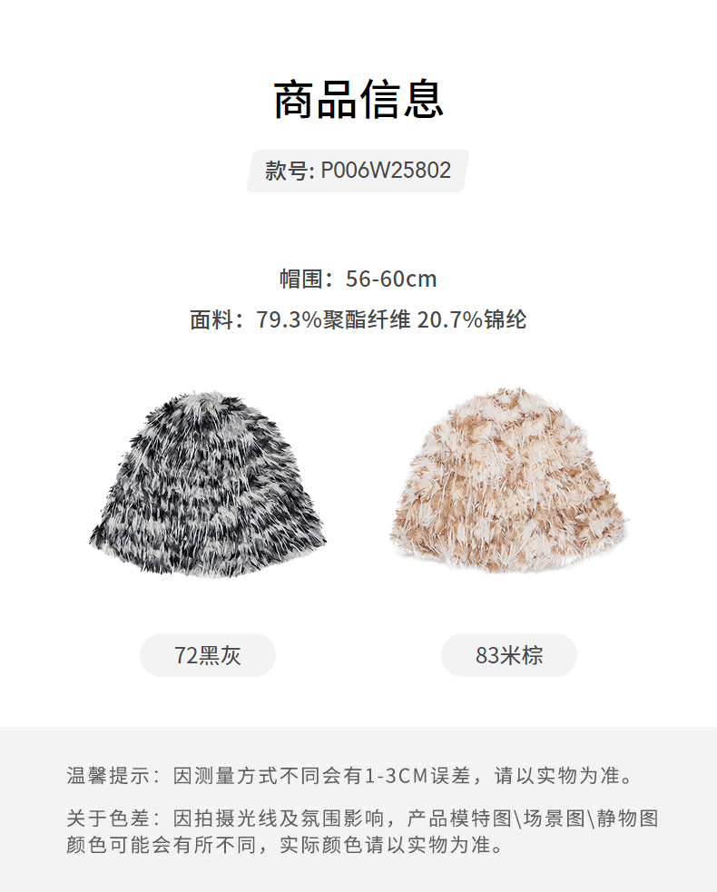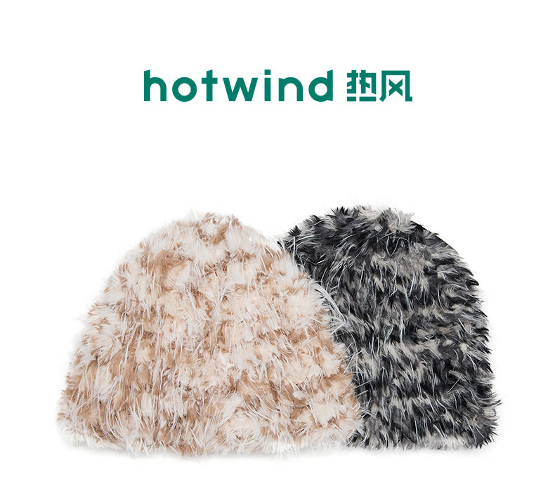 热风(Hotwind)女士帽子毛绒保暖冷帽2025年冬季新款时尚潮流拼色针织包头绒帽 72黑灰 F