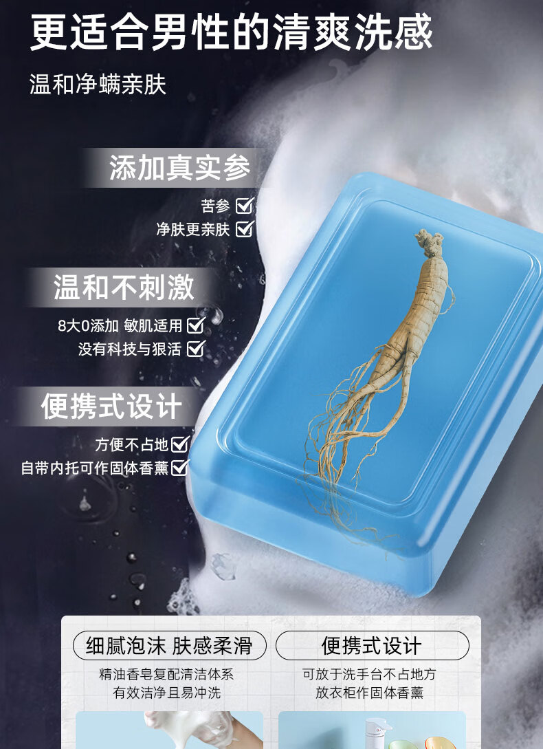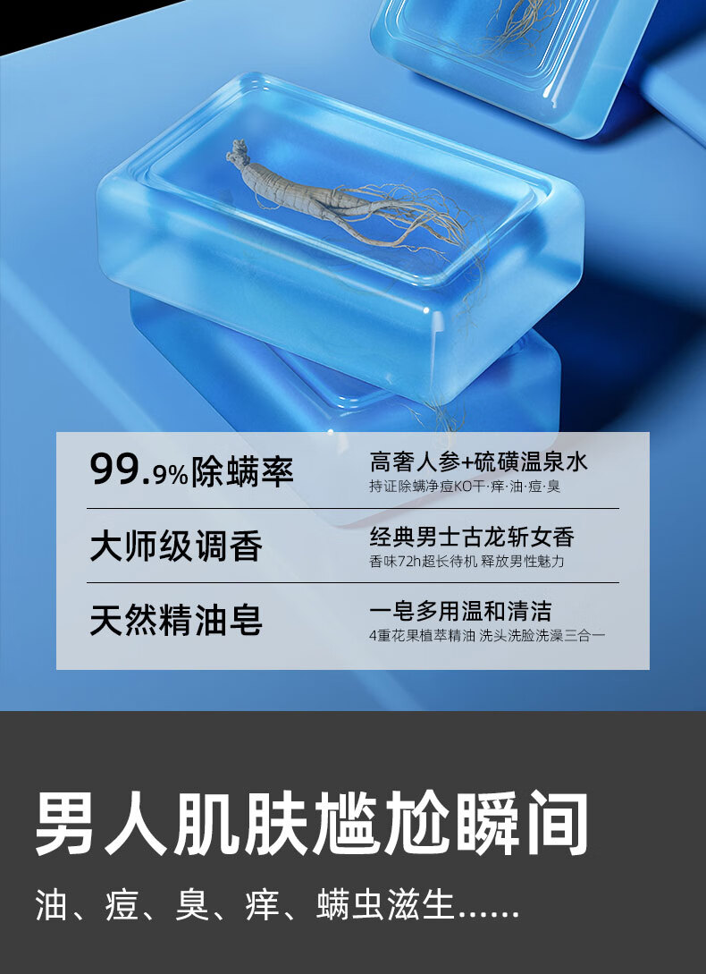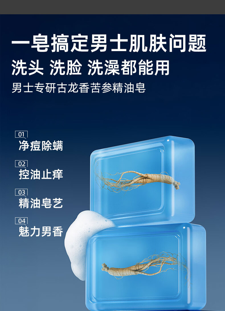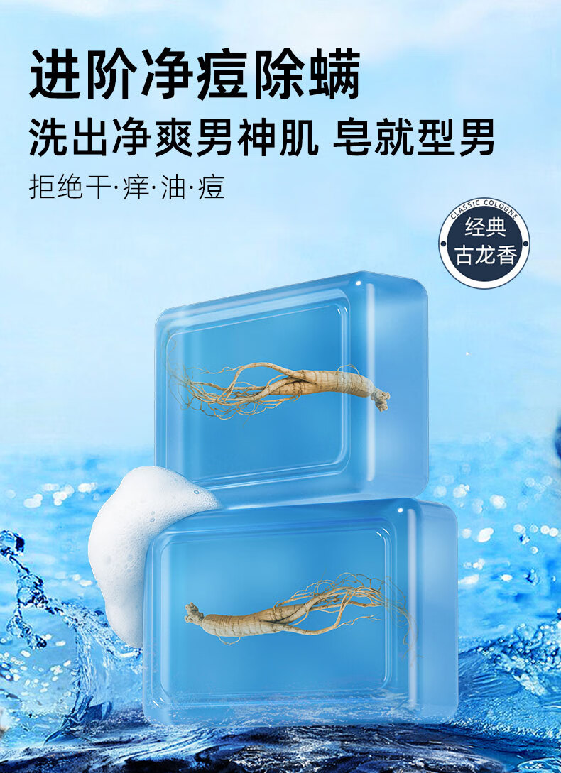 娅洛思男士苦参古龙香水皂除螨高级手工皂留香洗脸洗手洗澡三合一*2盒装