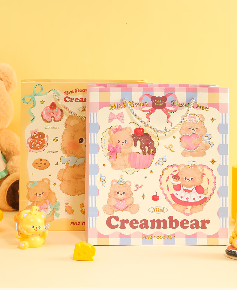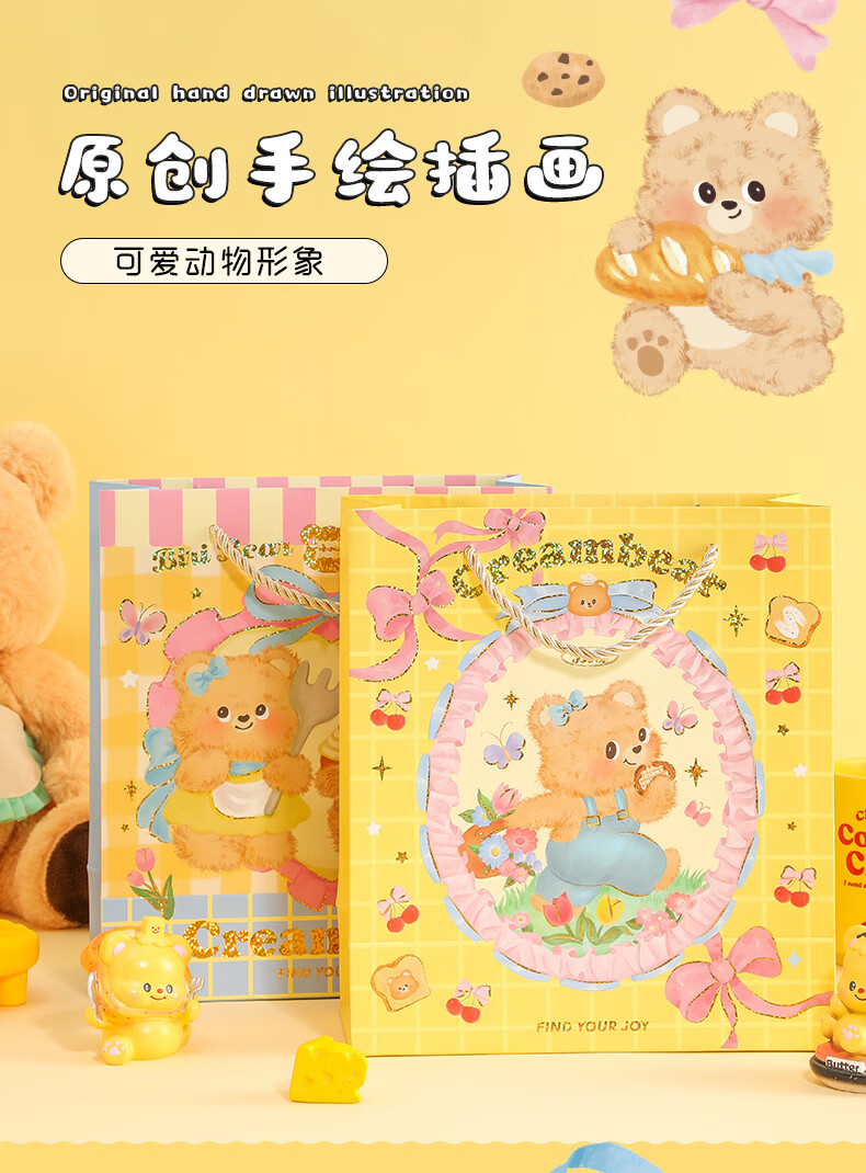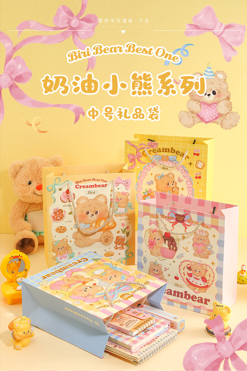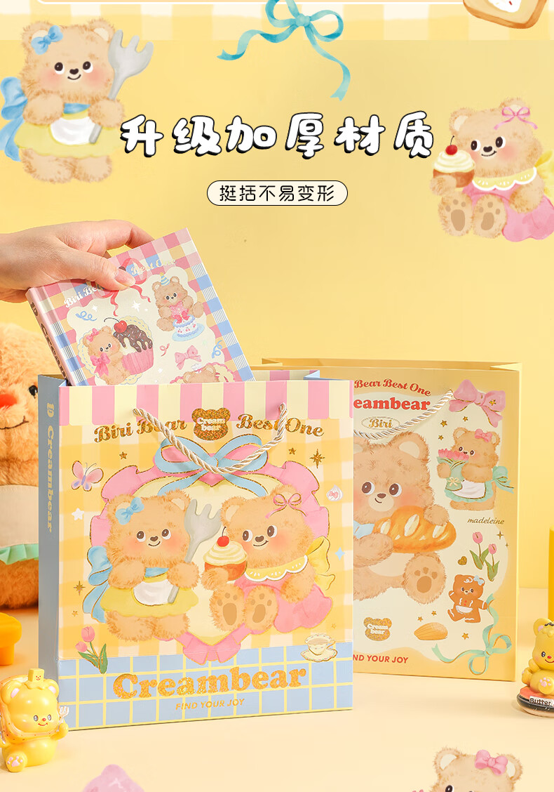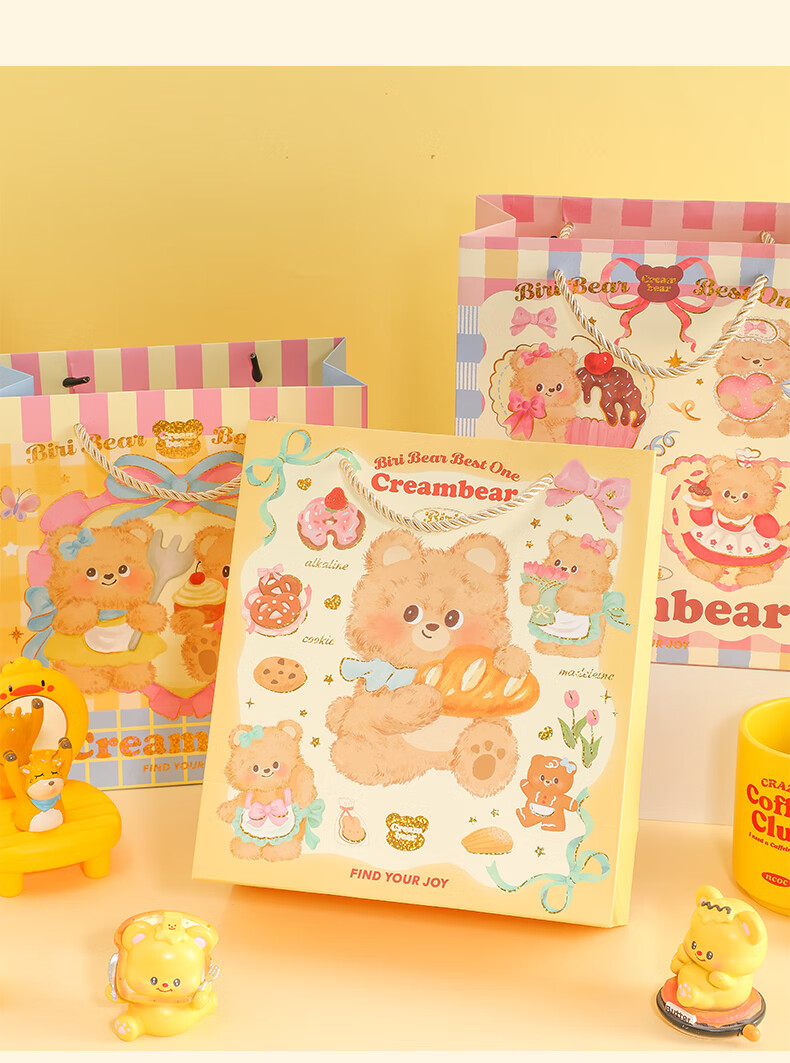 少年伴礼品袋 可爱卡通奶油小熊中号礼品袋手提纸袋高颜值生日礼物包装袋 全套四款随机1个