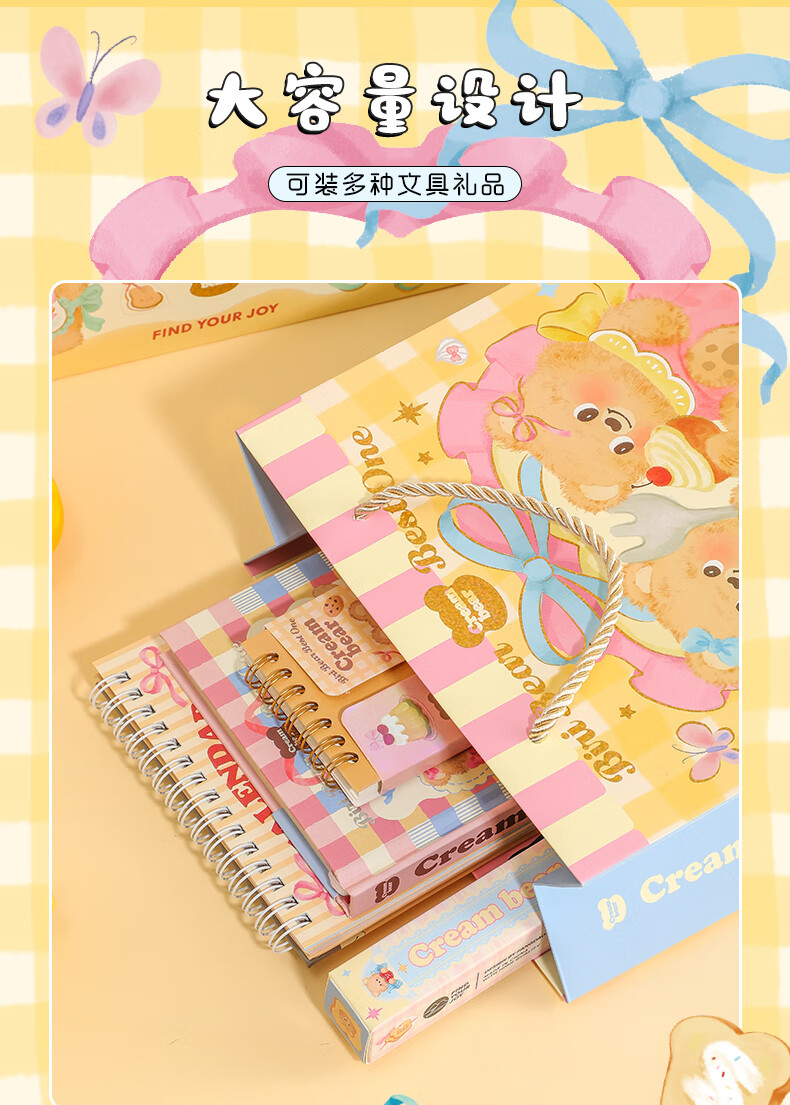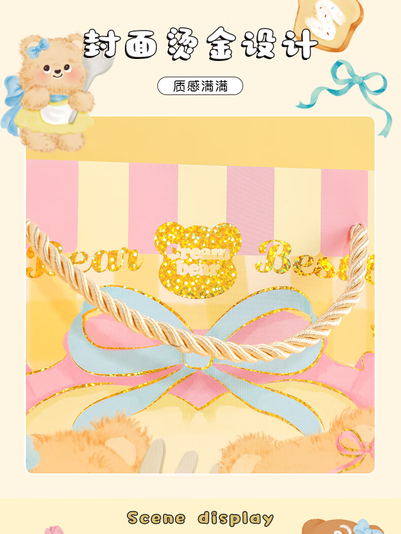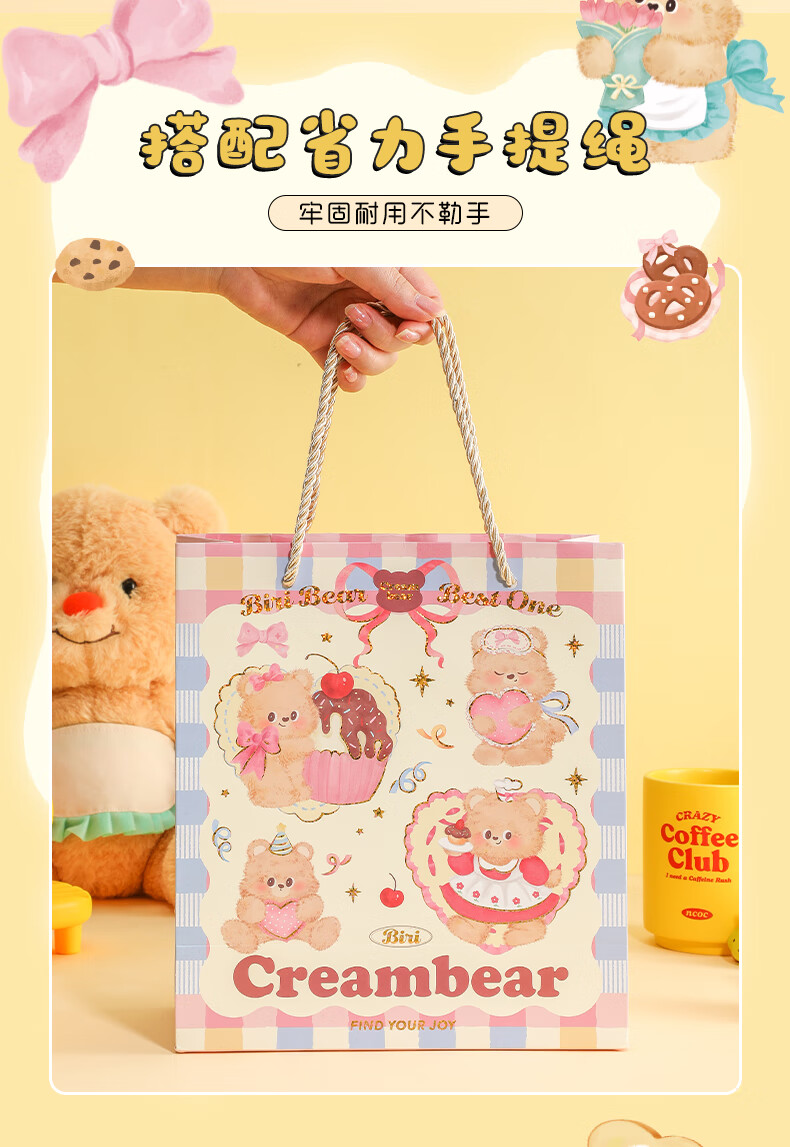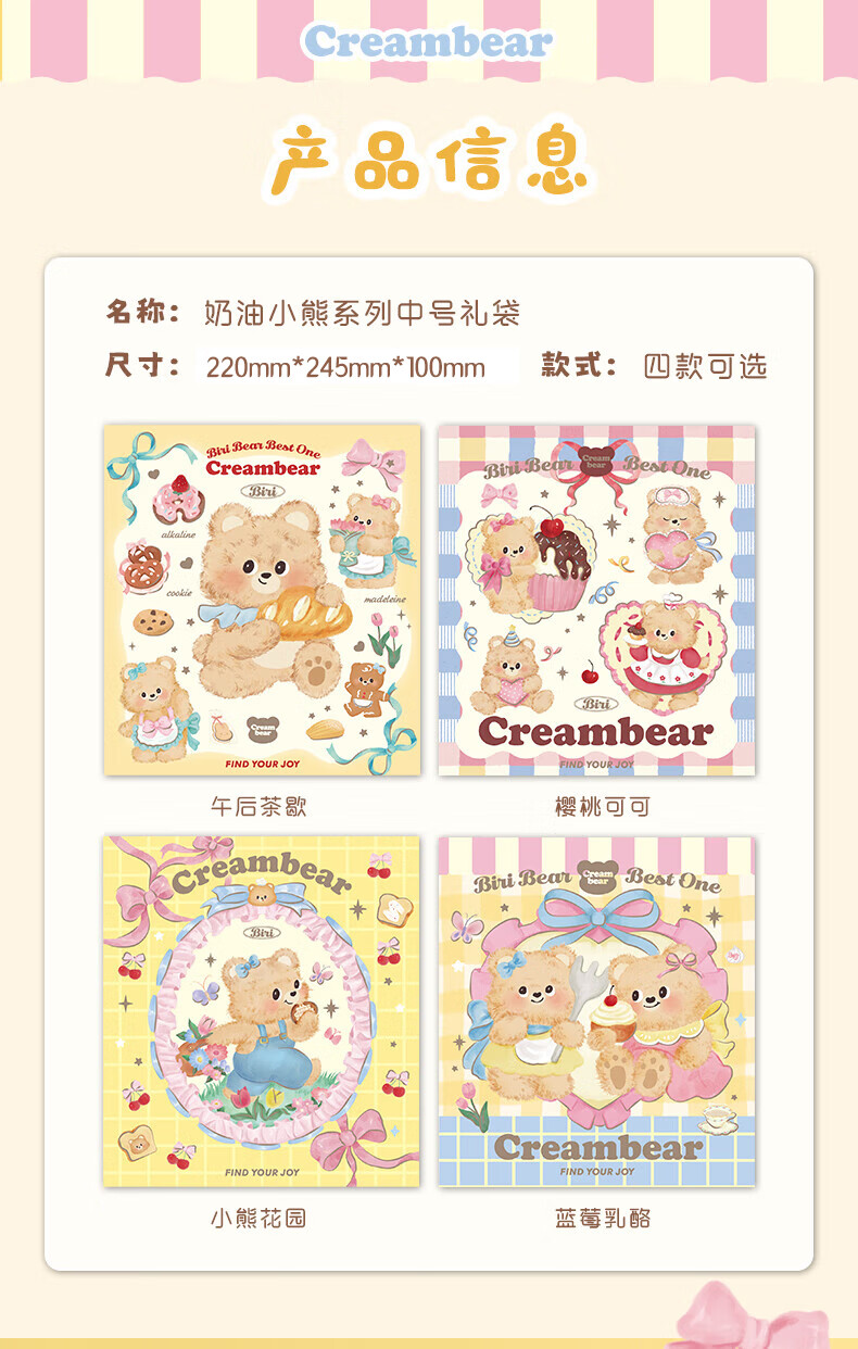 少年伴礼品袋 可爱卡通奶油小熊中号礼品袋手提纸袋高颜值生日礼物包装袋 全套四款随机1个