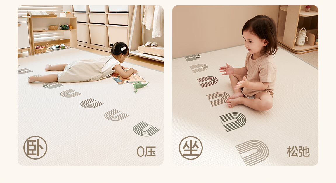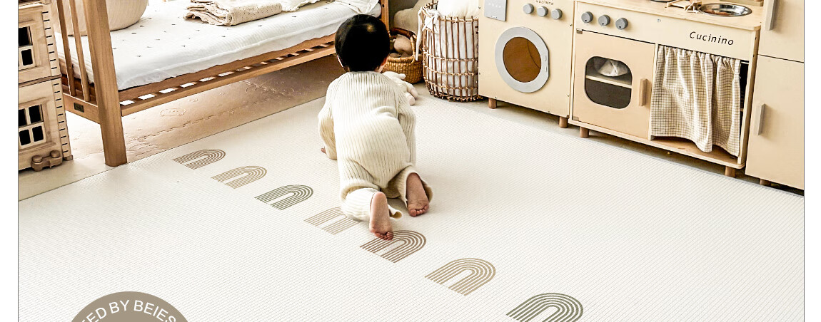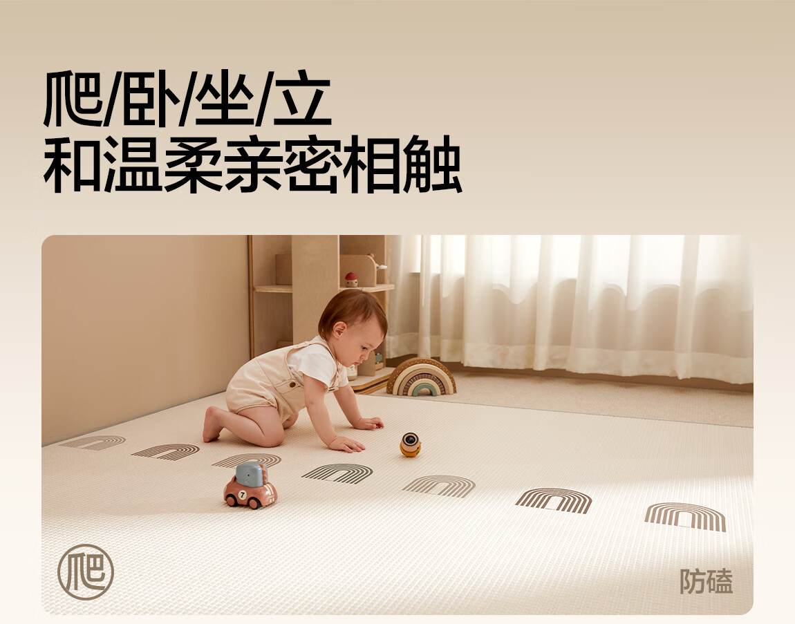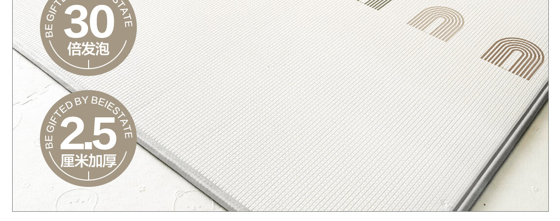 贝易(BEIE)宝宝PU爬爬垫加厚婴儿防摔可折叠爬行垫IXPE材质180*200*4cm