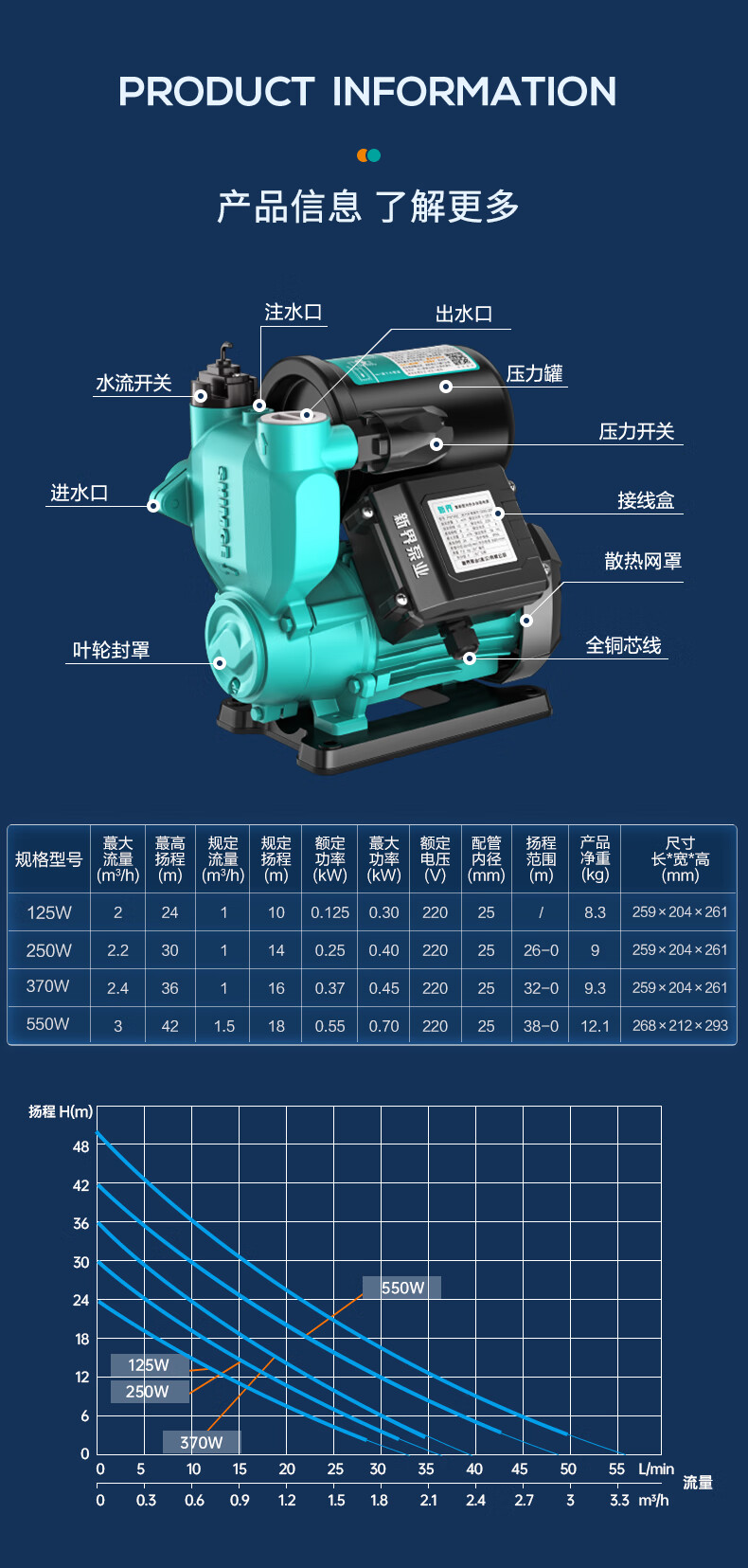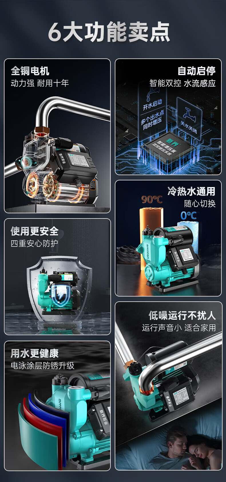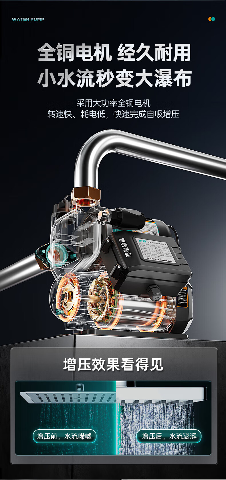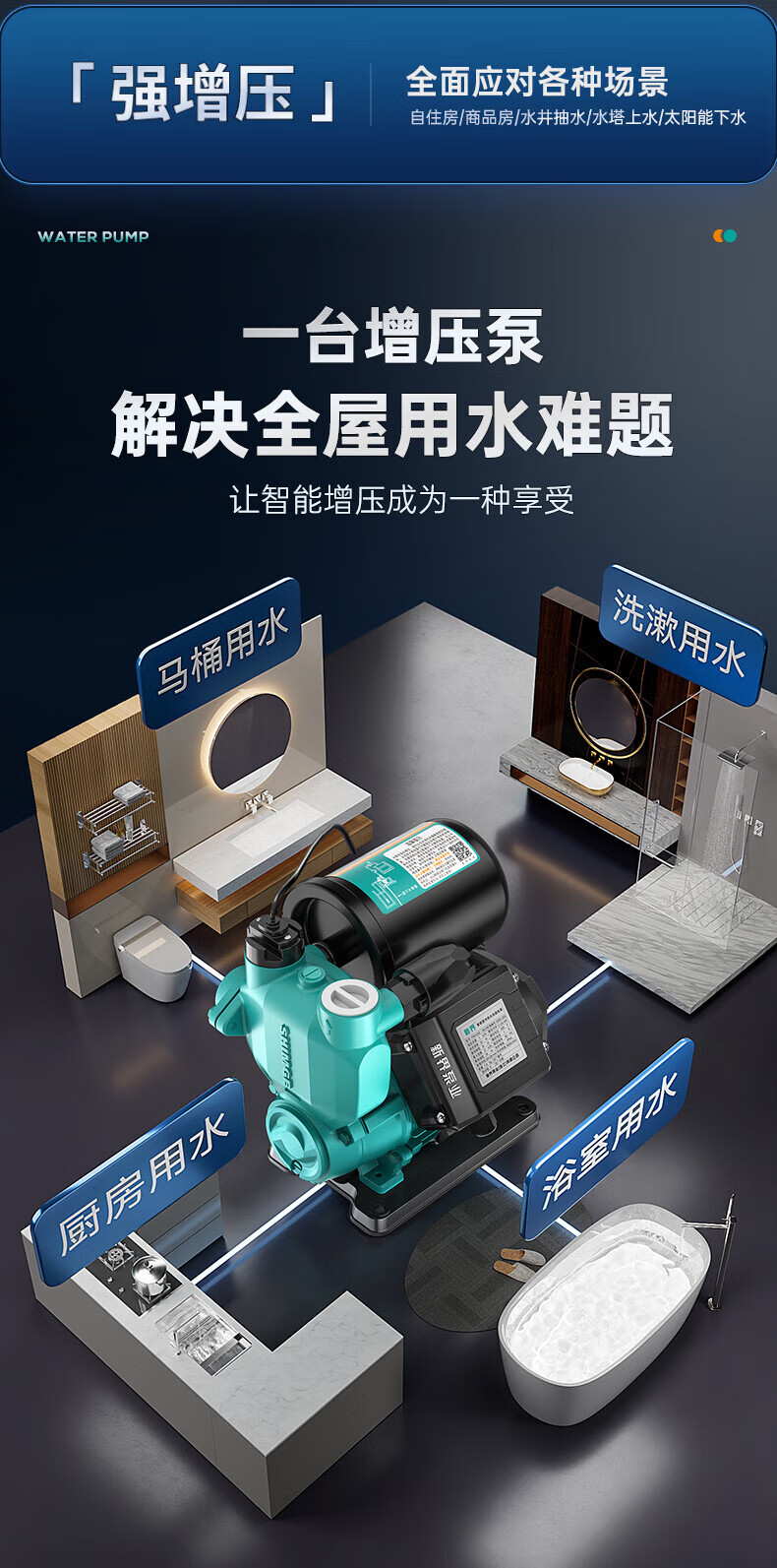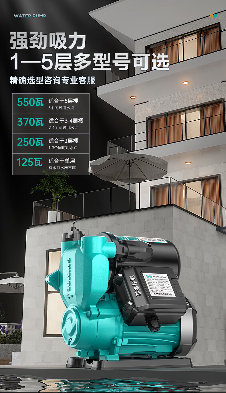 新界 增压泵家用全自动250w 低音自来水太阳能热水全屋增压