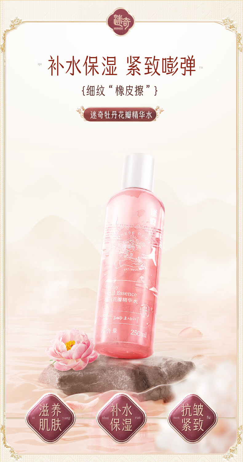 迷奇牡丹花瓣爽肤水补水保湿抗皱紧致控油提亮去黄男女士送礼物