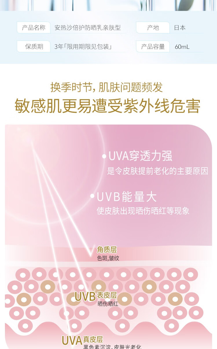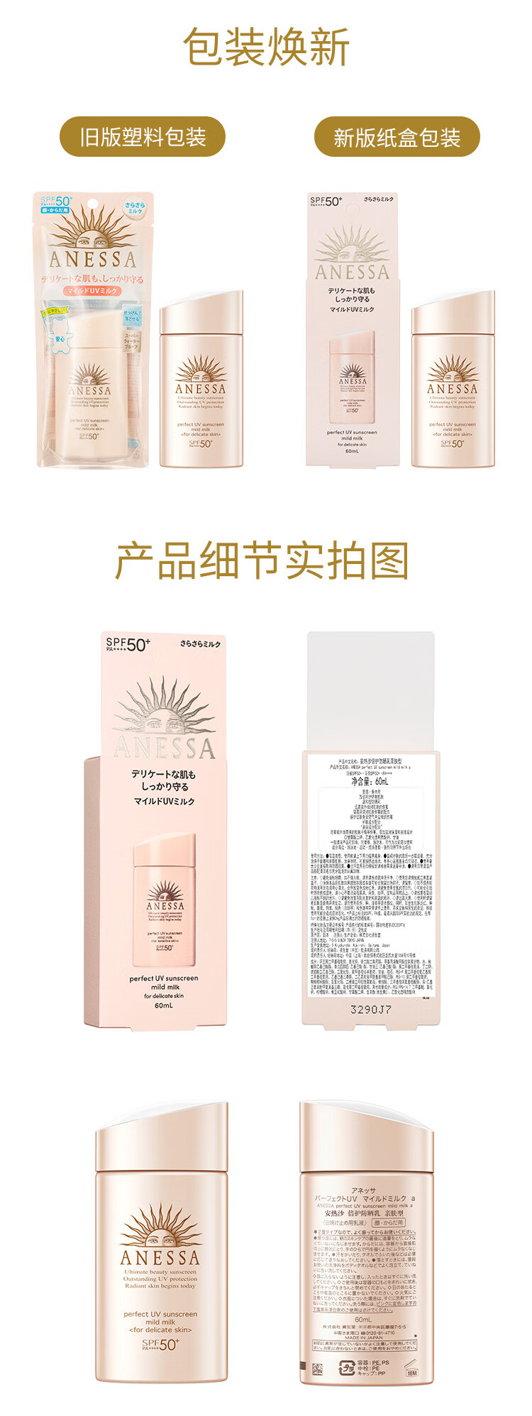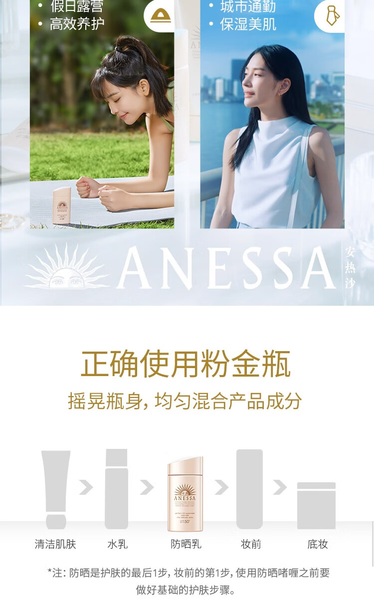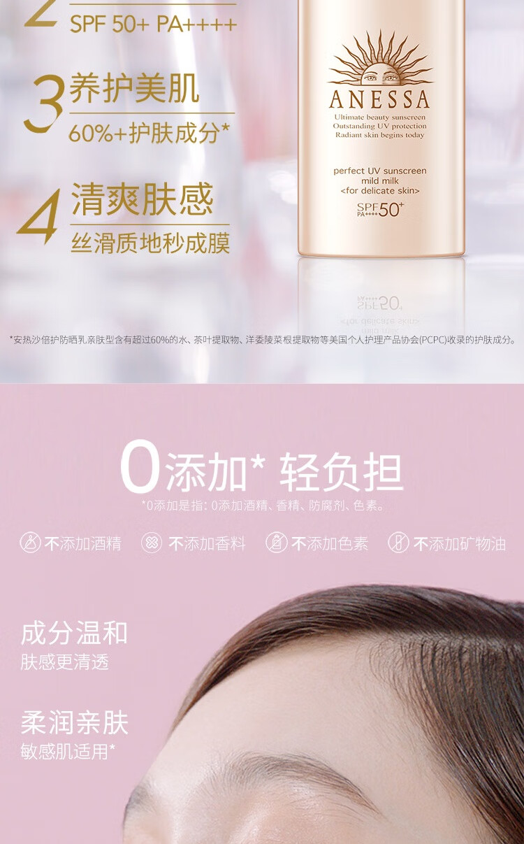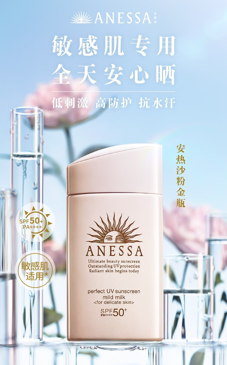 安热沙(Anessa)【采销直播间】倍护防晒乳亲肤型60mL粉金瓶高倍防晒学生军训