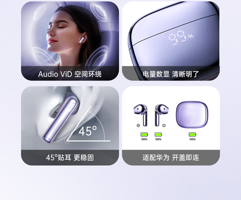 DEATKN德国高端之声蓝牙耳机2025新款超长续航耳挂式不入耳 夜黑 暗[高配版]杜比ACS全景音效/