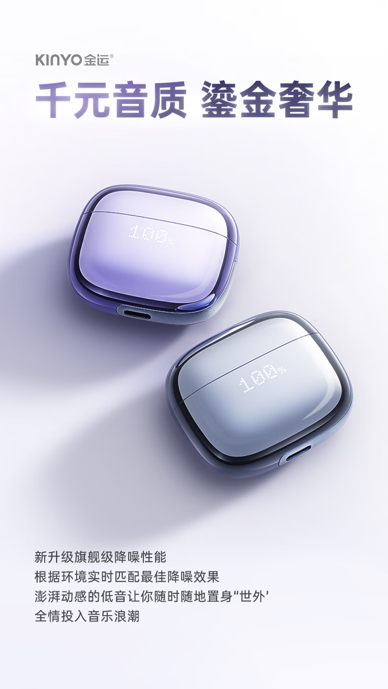 金运【升级款丨鎏金电镀】蓝牙耳机半入耳式无线高端适用于苹果降噪重低音超长续航 暮影黑