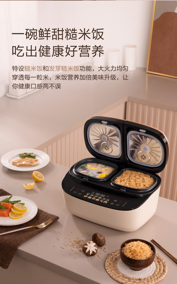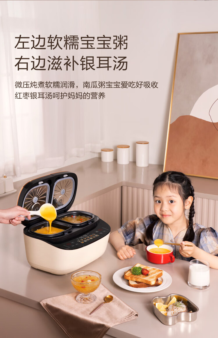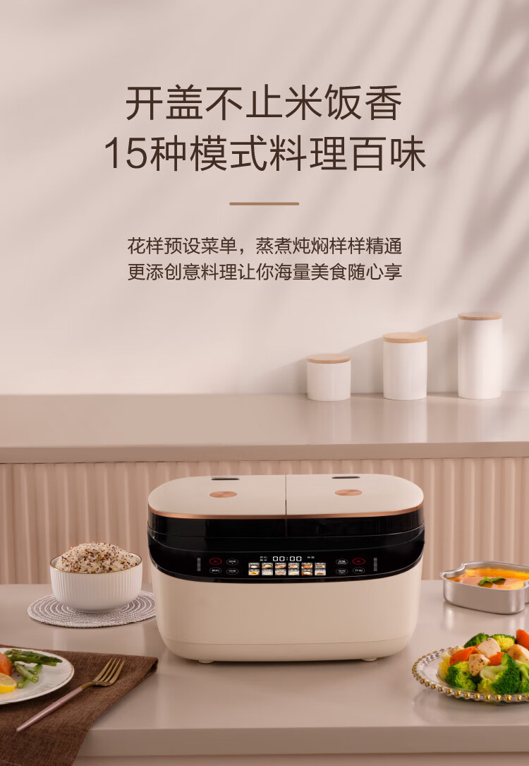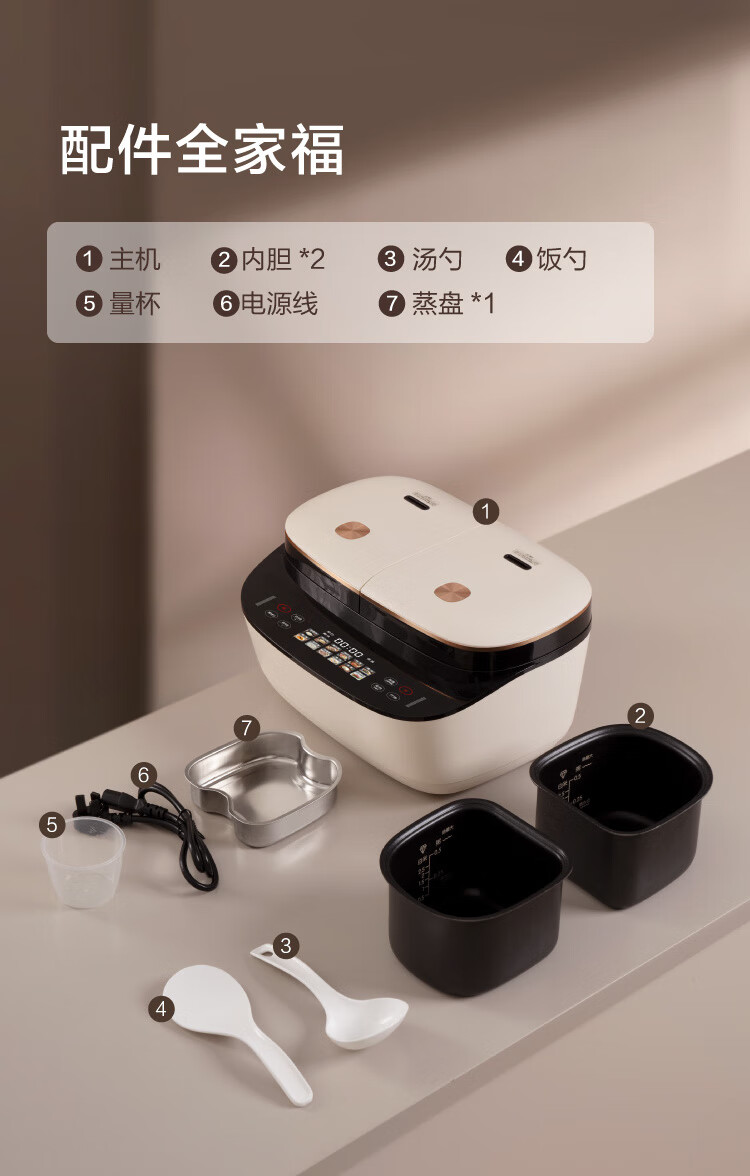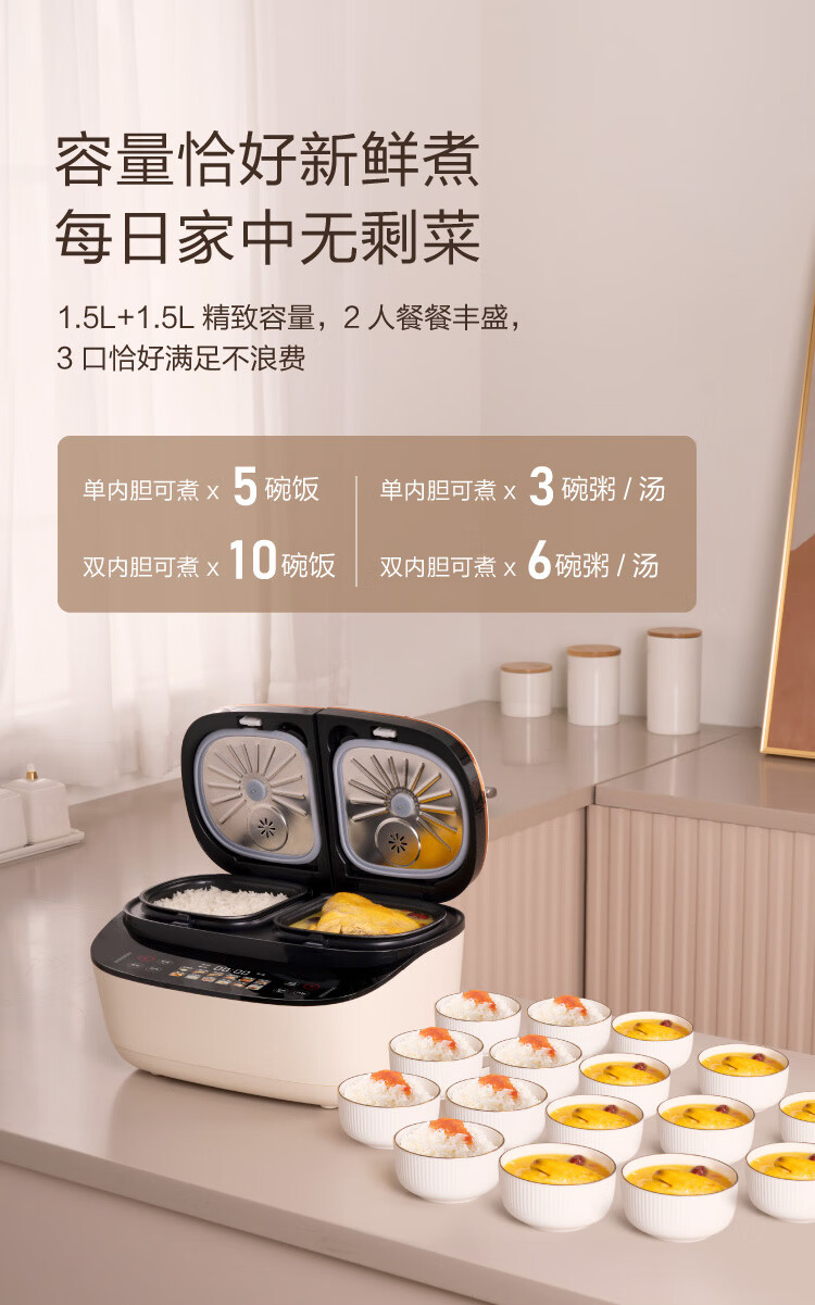 莱小厨(Lexcook) 微压双胆电饭煲家用小型3L电饭锅智能预约蒸煮煲汤一体多功能电饭煲2-4人 奶白色 3L
