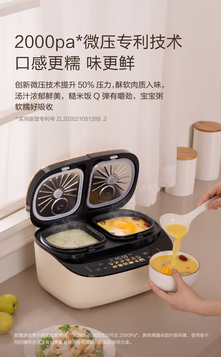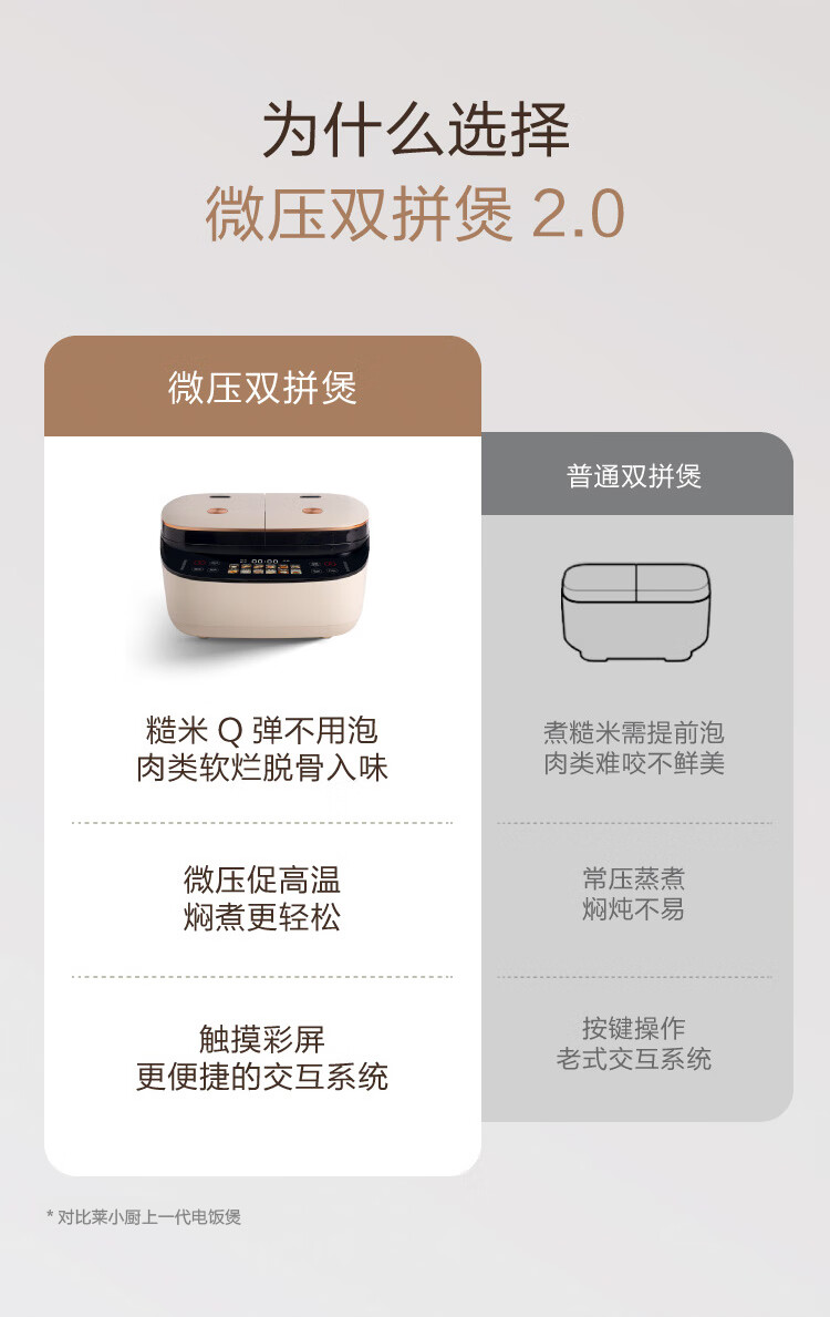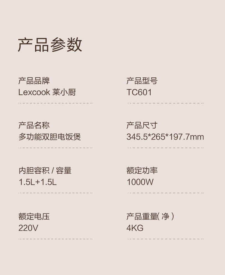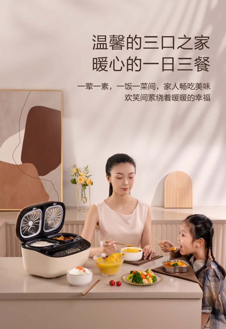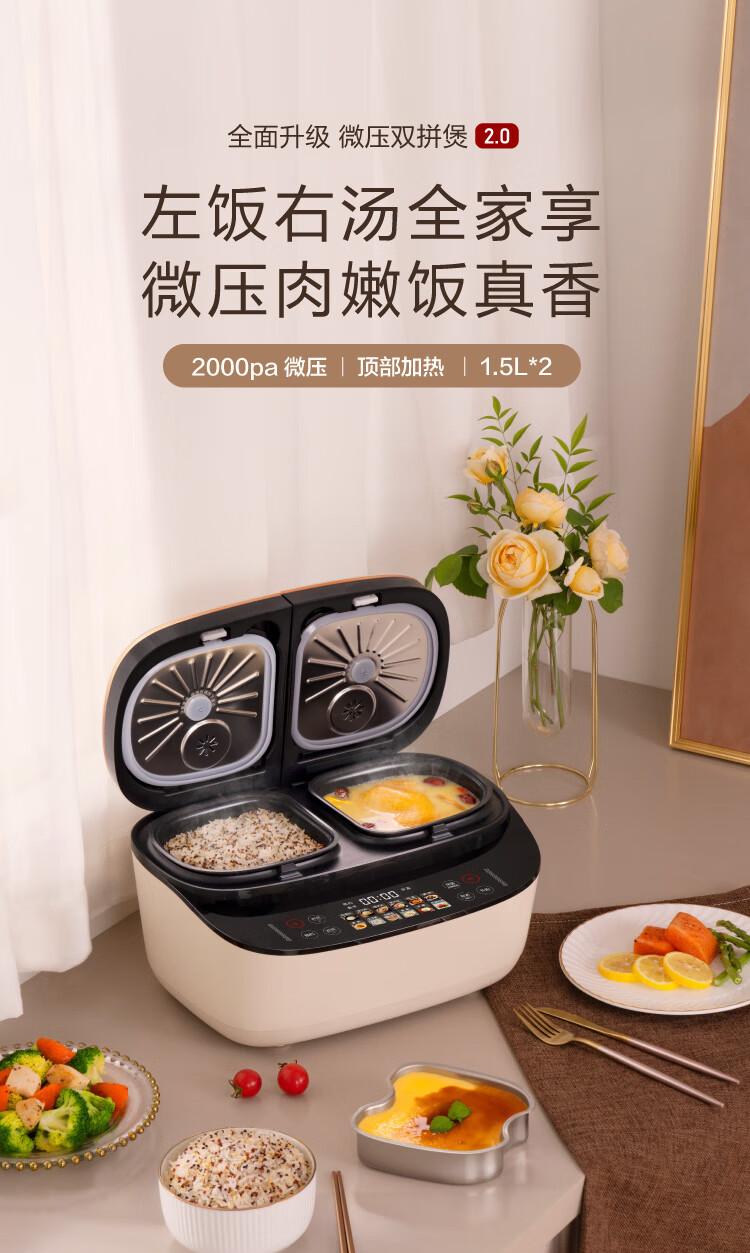 莱小厨(Lexcook) 微压双胆电饭煲家用小型3L电饭锅智能预约蒸煮煲汤一体多功能电饭煲2-4人 奶白色 3L