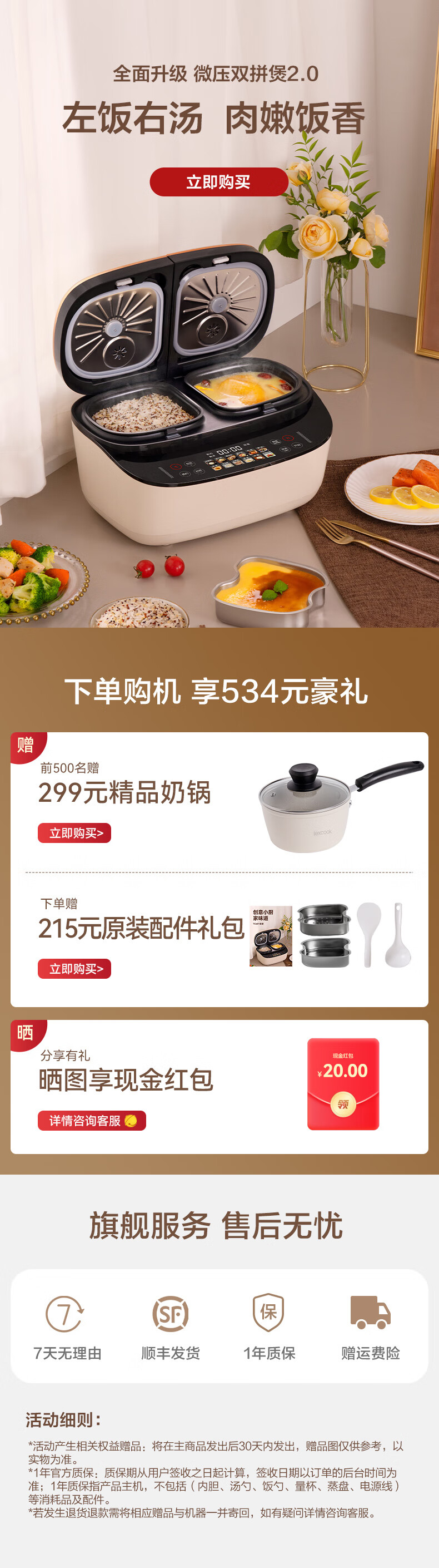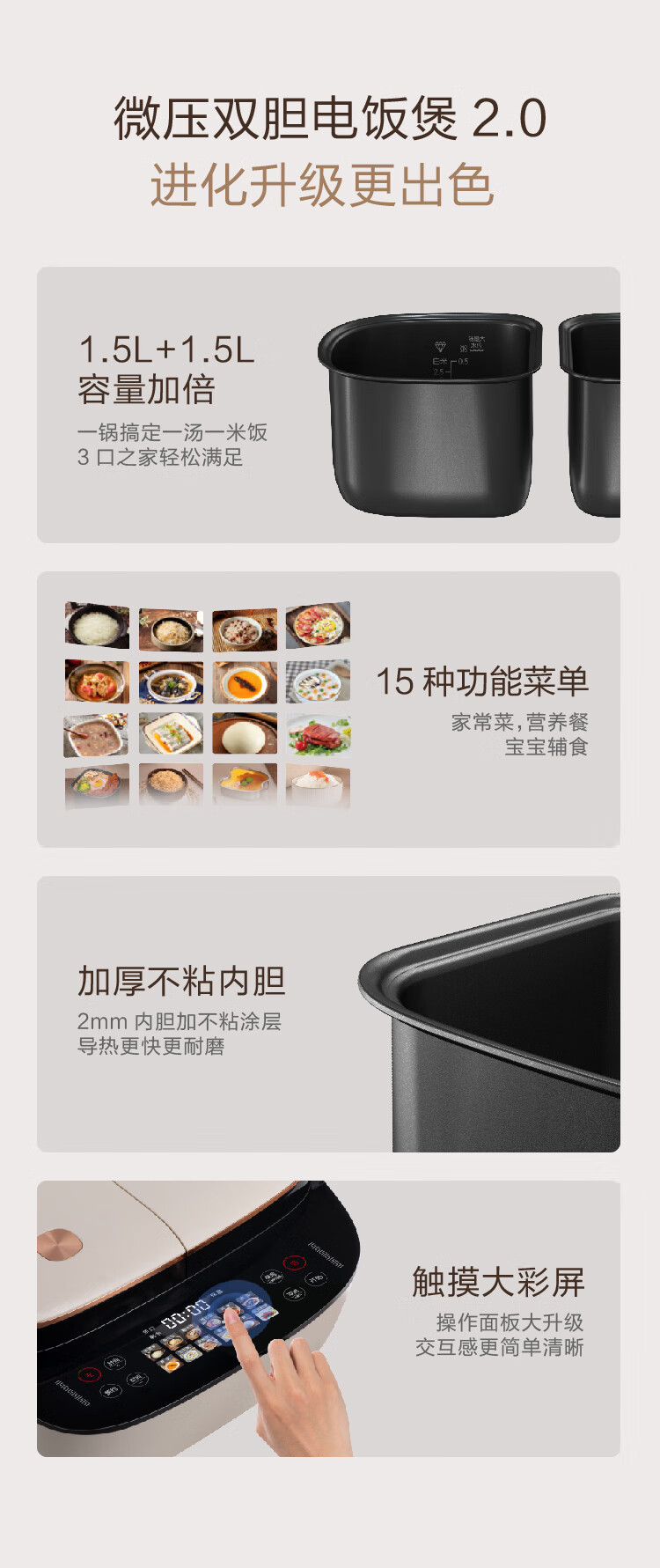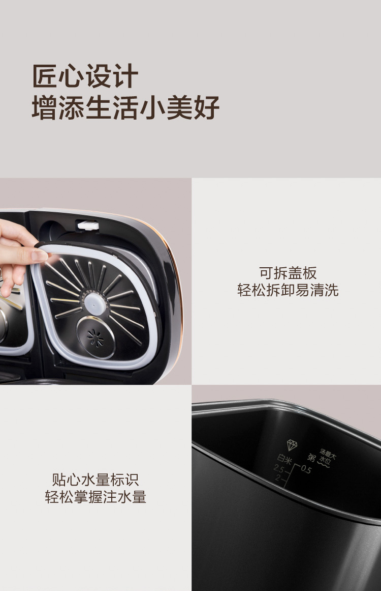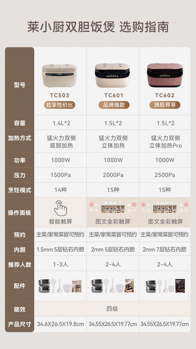 莱小厨(Lexcook) 微压双胆电饭煲家用小型3L电饭锅智能预约蒸煮煲汤一体多功能电饭煲2-4人 奶白色 3L